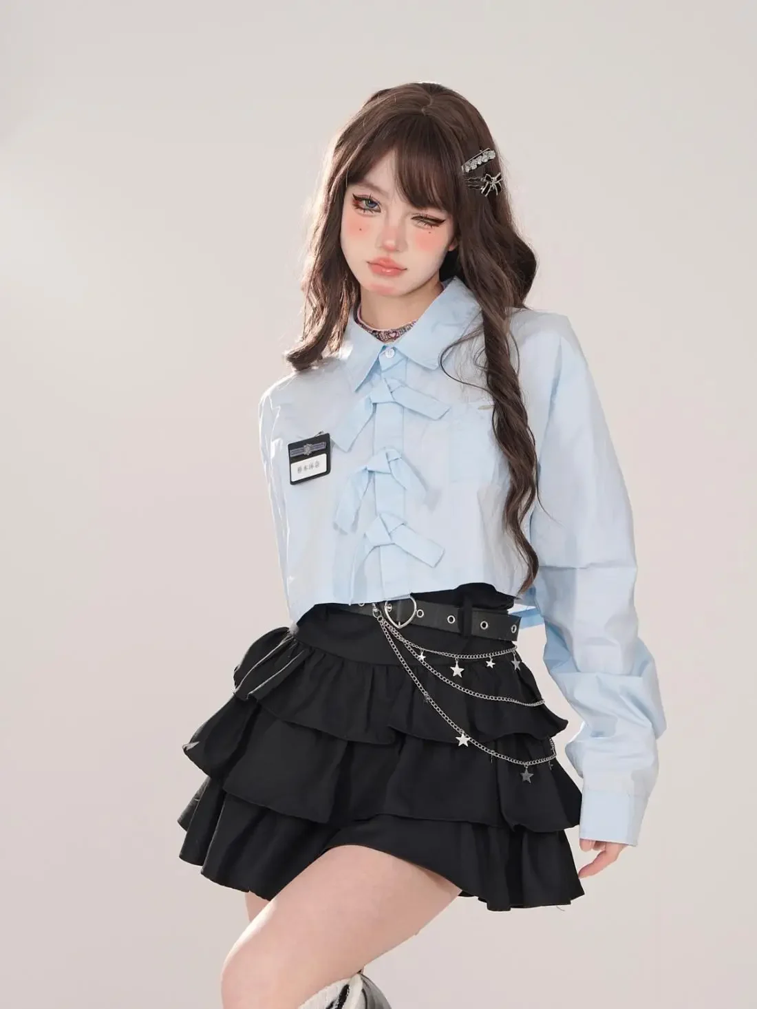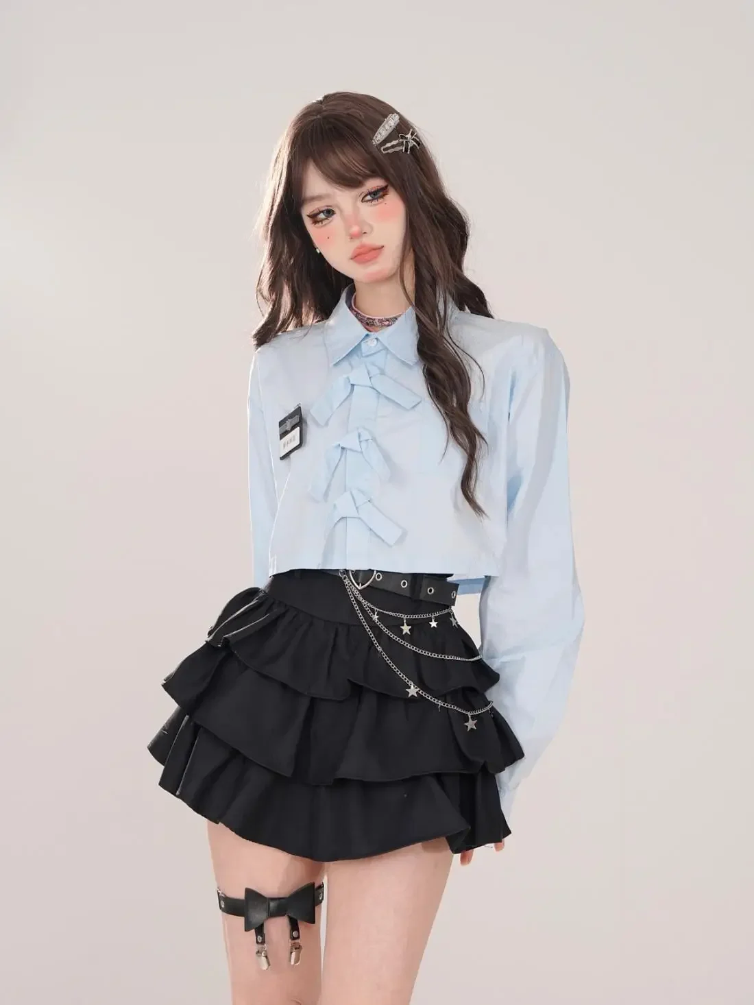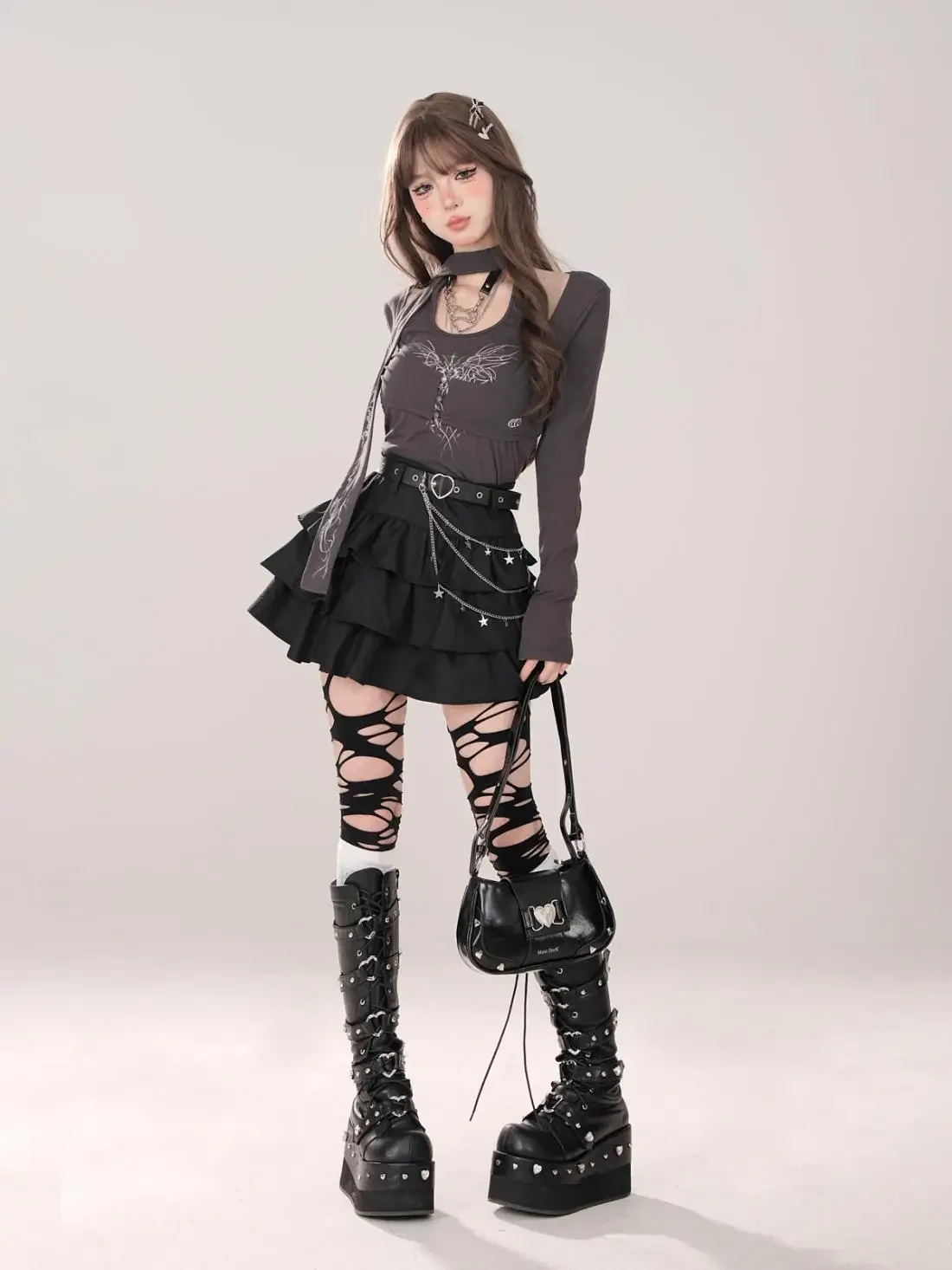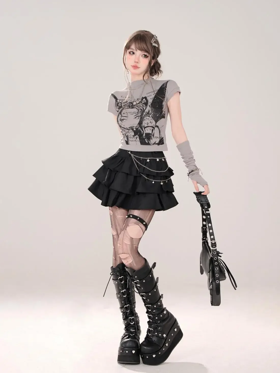 Advbridge Black Gothic Mini Skirts Women Punk Y2k Grunge Short Skirt Korean Harajuku Kawaii 2000s A-line Cake Skirts Aesthetic
