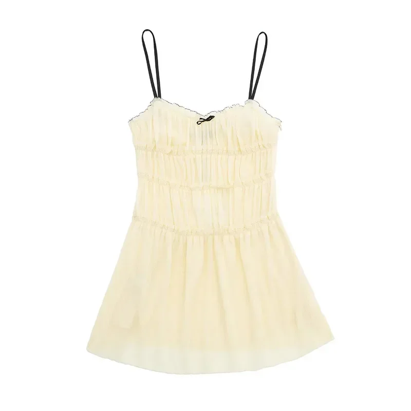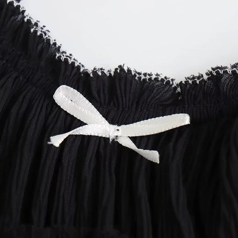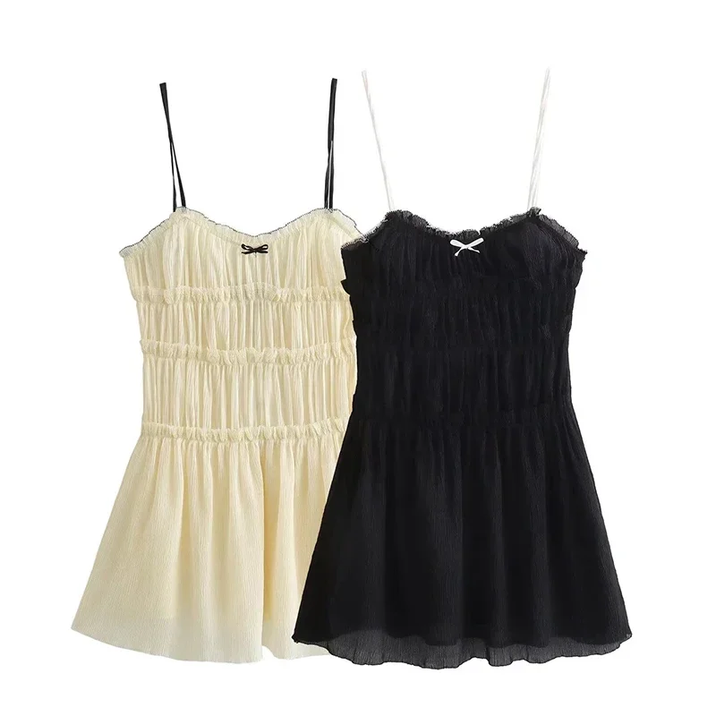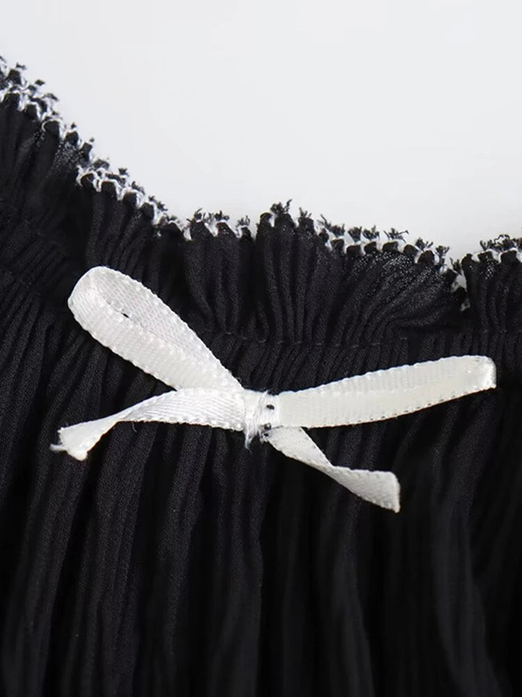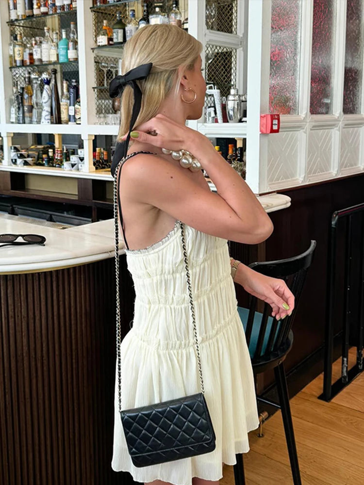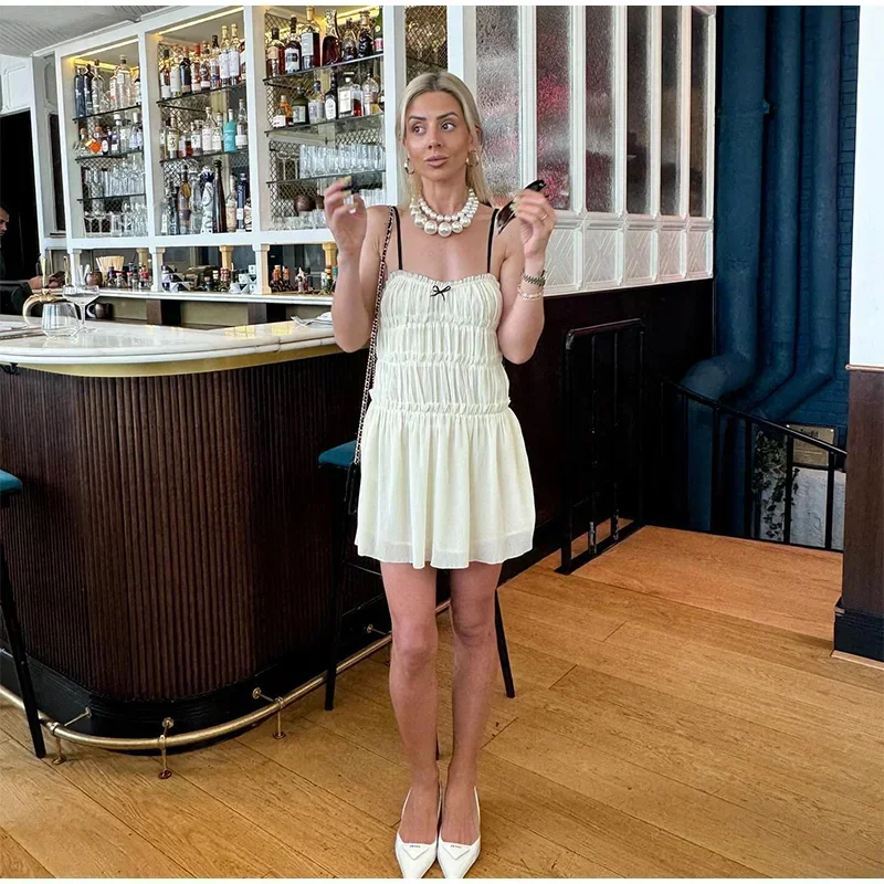 Advbridge Bow Slip Pleated Short Dress Women Sleeveless Backless Ruffles A-line Female Mini Dress 2024 Summer Backless Lady Club Partywear