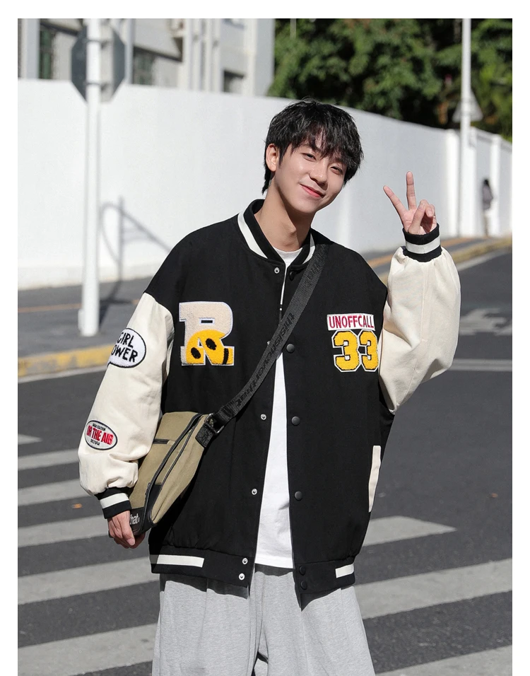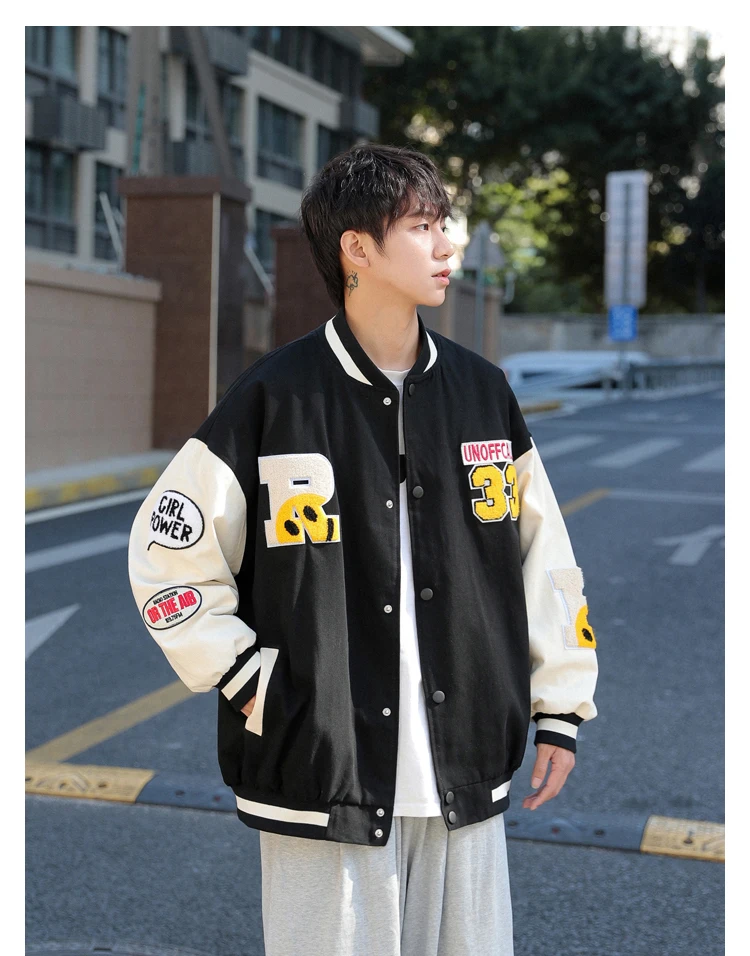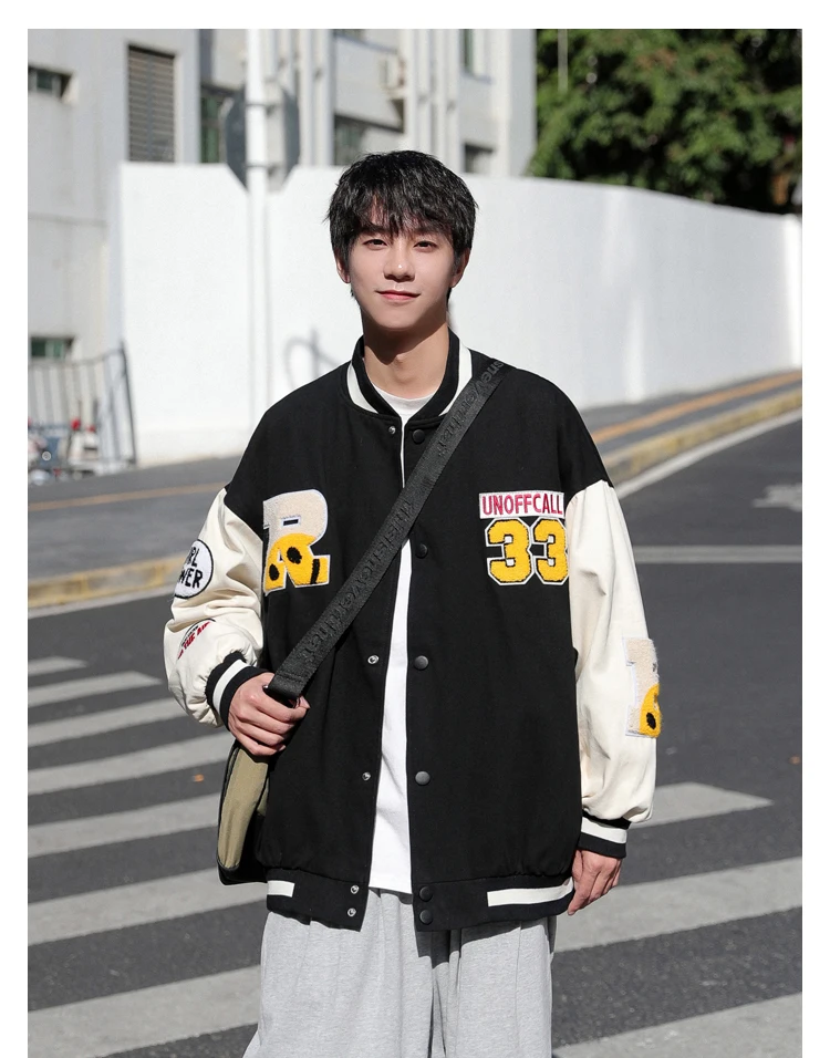 Advbridge College style Baseball Jackets Men Letters Embroidery Patchwork Harajuku Bomber Varsity Jacket Women Casual Fashion Coats Unisex