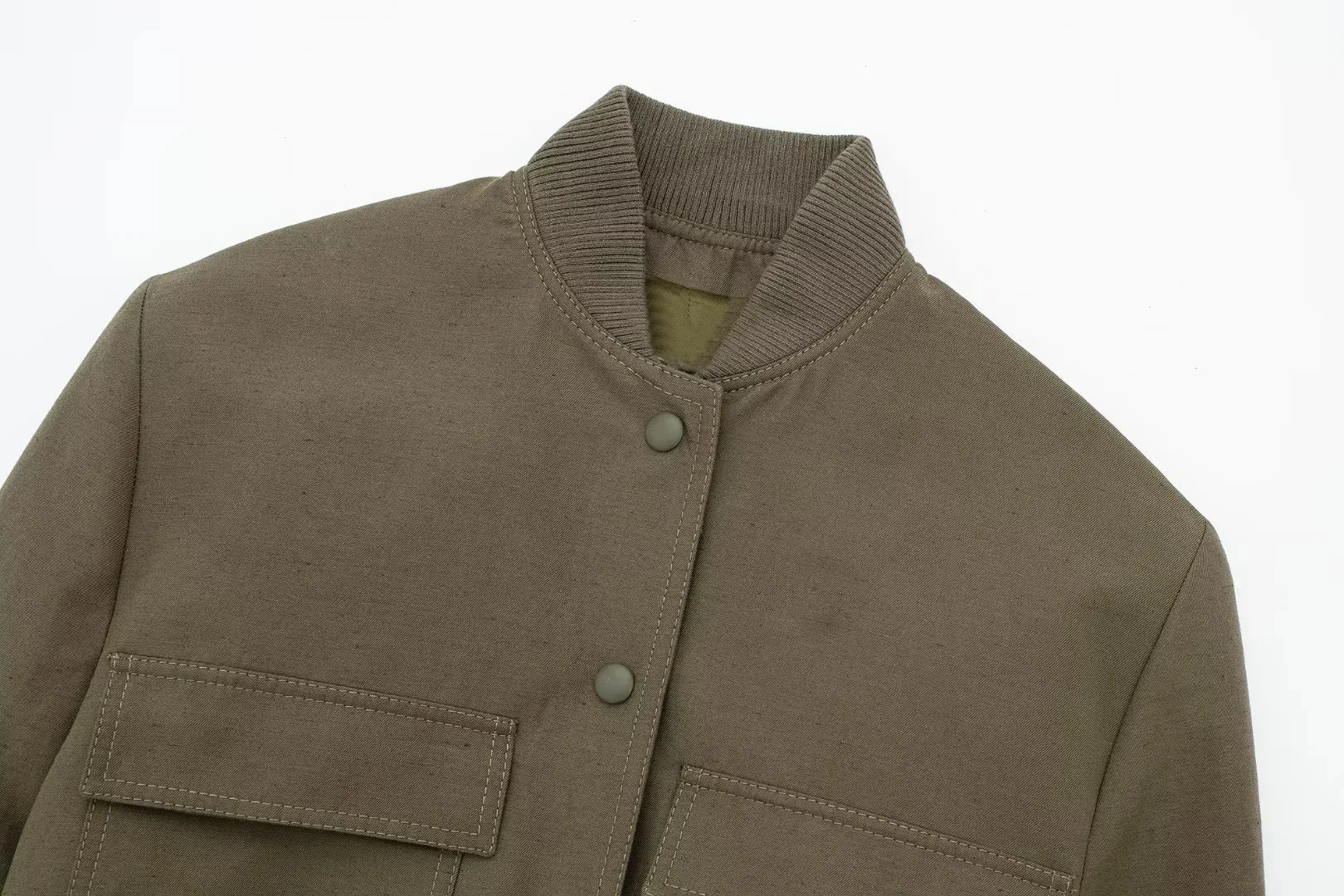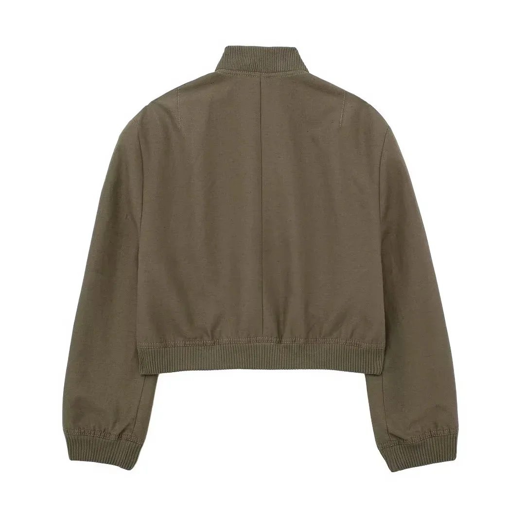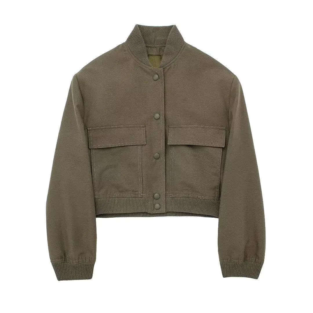 Advbridge Crop Jacket For Women Autumn New Big Pocket French Jacket Coat Women Solid Color Single-breasted Baseball Outerwear Tops