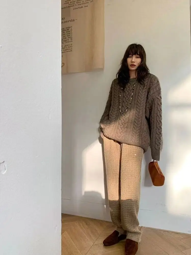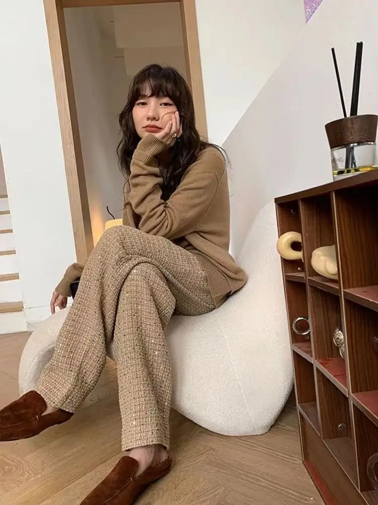 ADVBRIDGE Early Autumn New Hiphop Drape Narrow Version Khaki Tweed Casual Pants for Women Autumn and Winter techwear women