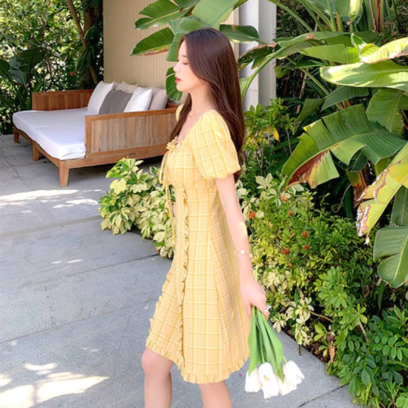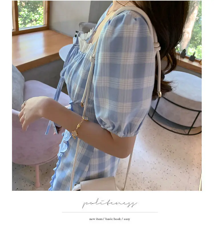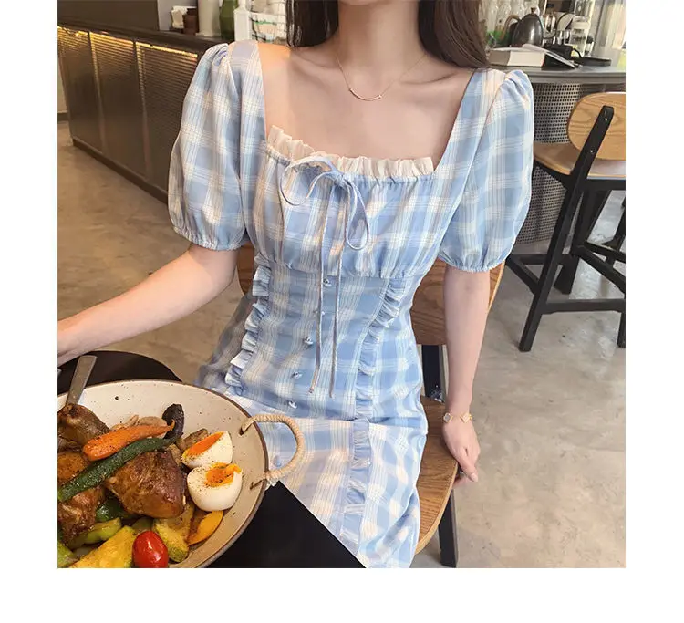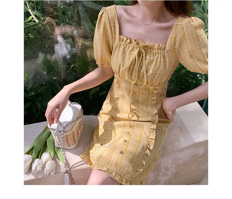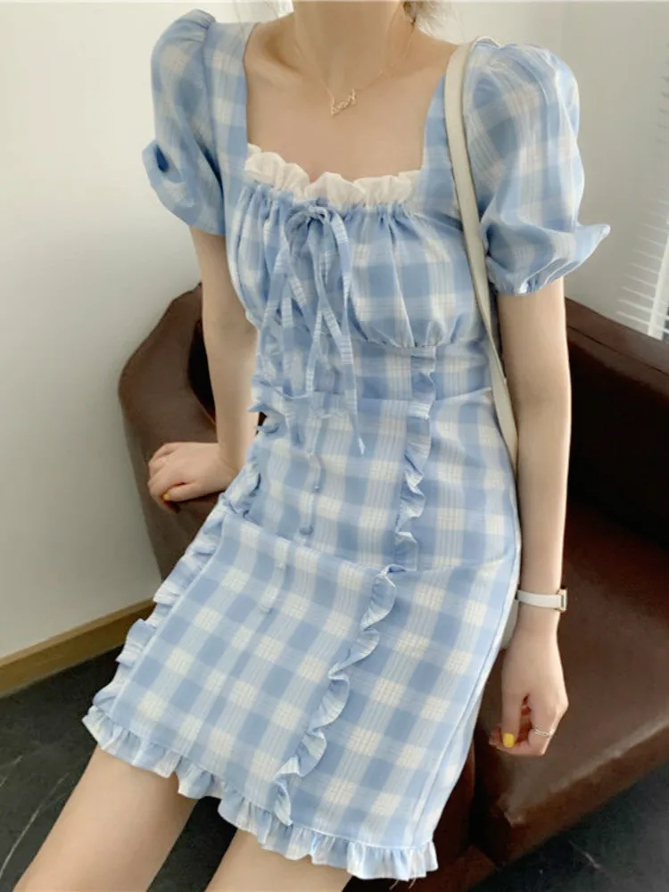 Advbridge Elegant Plaid Dress Women French Style Ruffle Chiffon Mini Dress Casual Korean Kawaii Sweet Chic Dress Women Summer Clothes