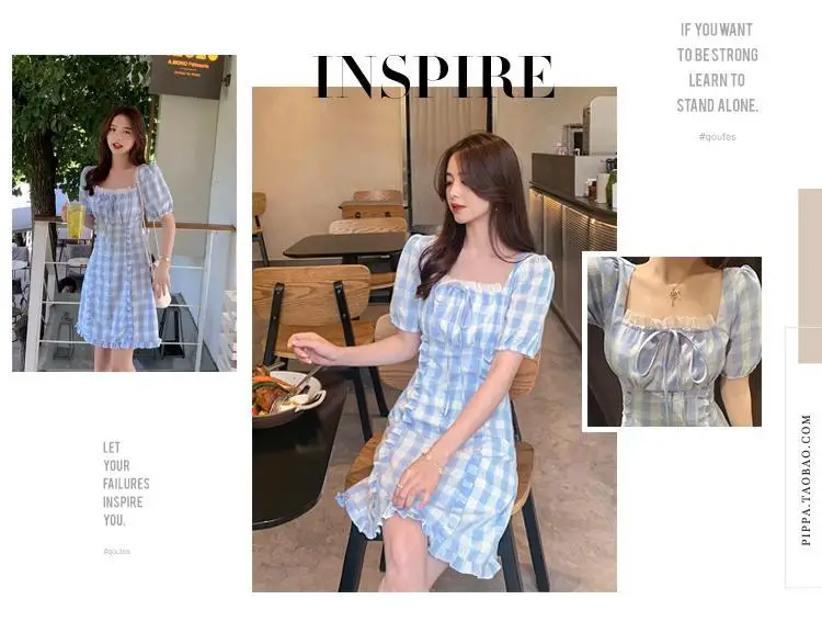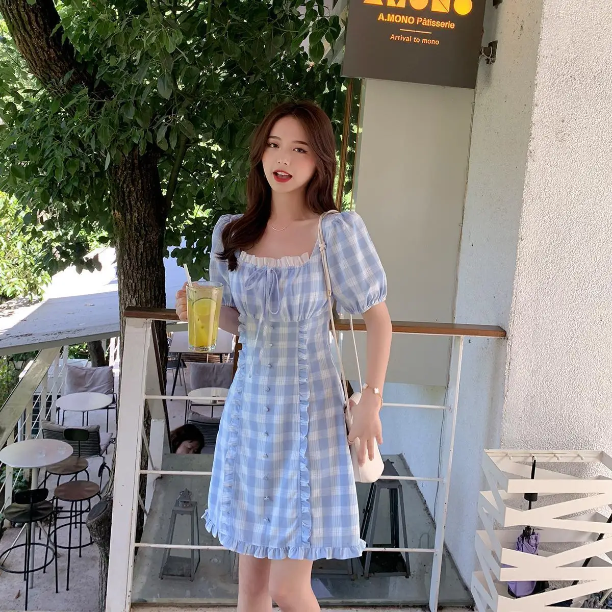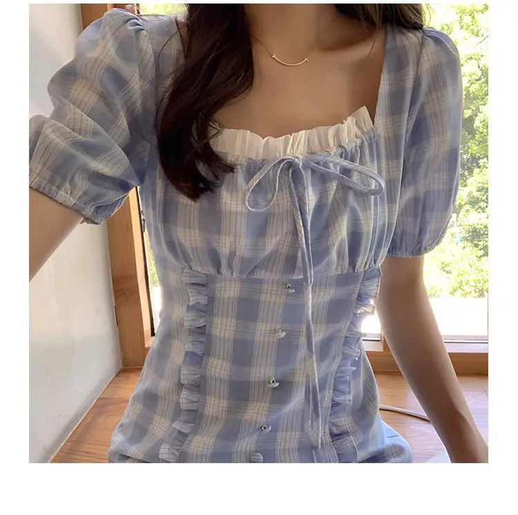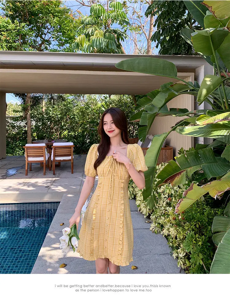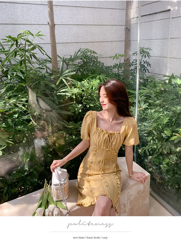 Advbridge Elegant Plaid Dress Women French Style Ruffle Chiffon Mini Dress Casual Korean Kawaii Sweet Chic Dress Women Summer Clothes