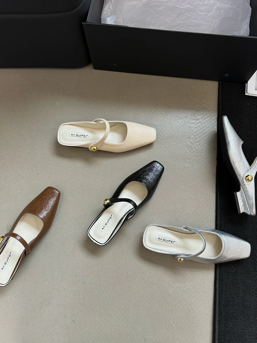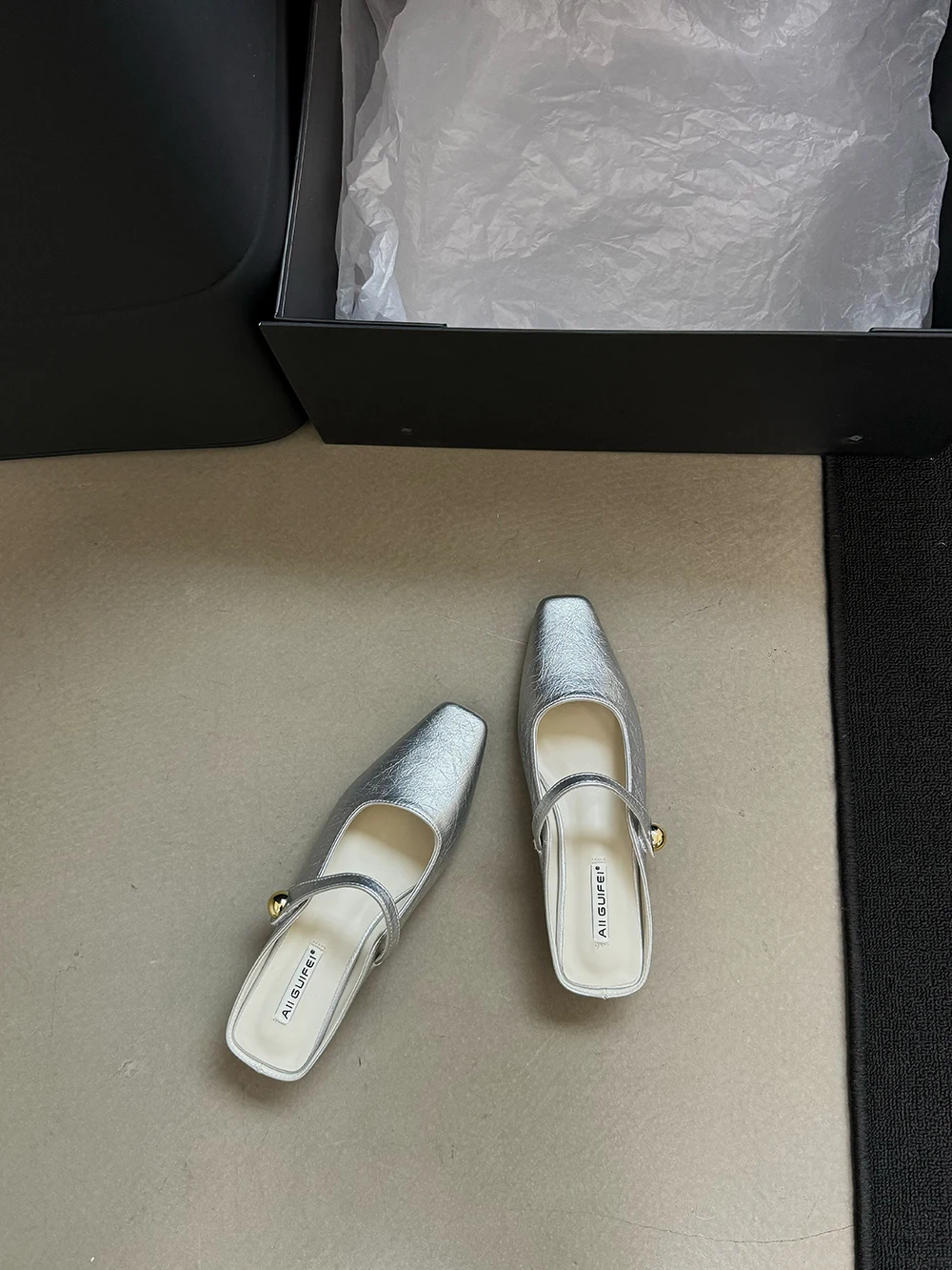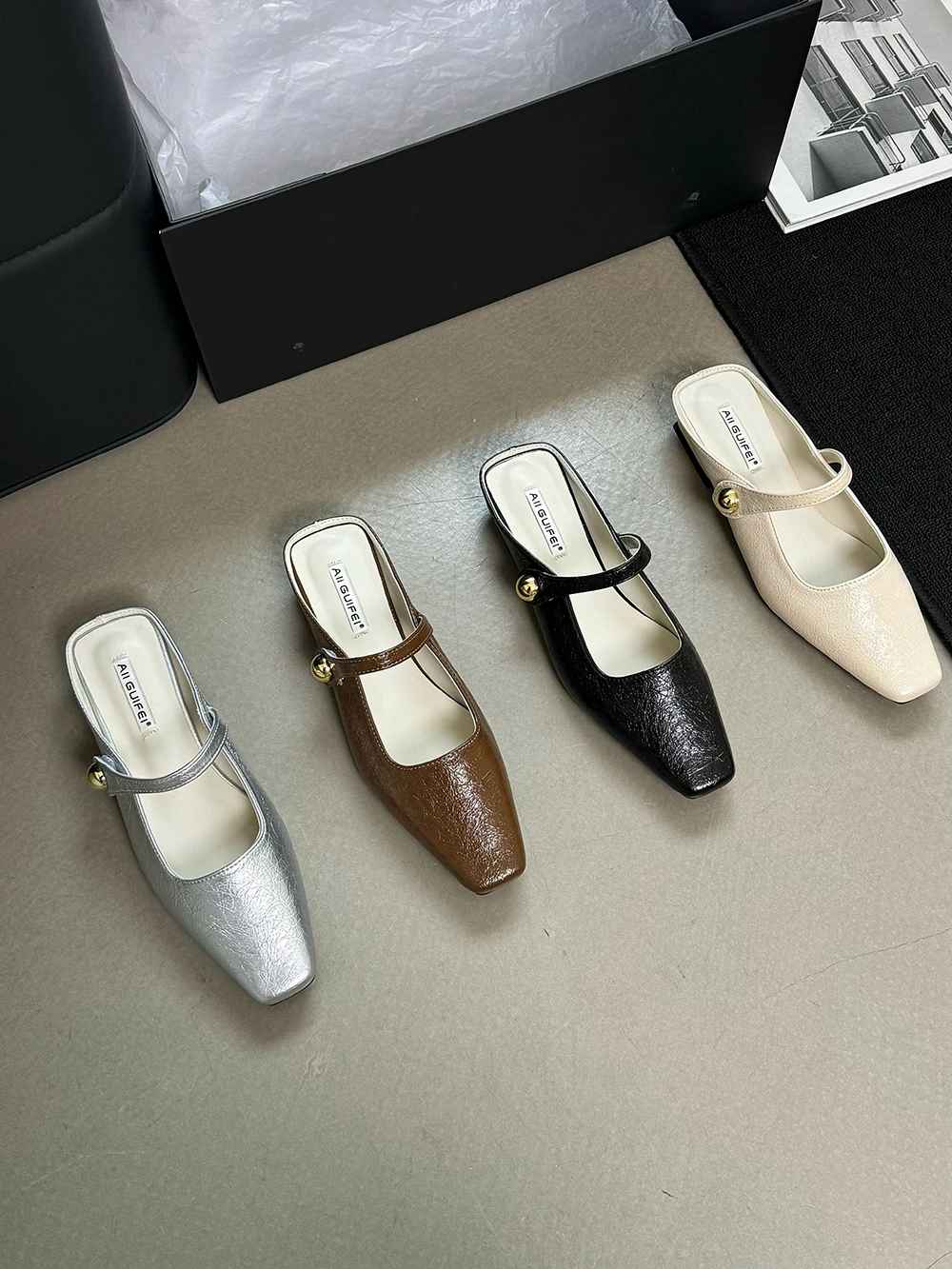 Advbridge Elegant Women Slides Slippers 2024 New Arrivals Casual Mules Flat Heeled Button Design Slip On Black Brown Beige Silver Slippers