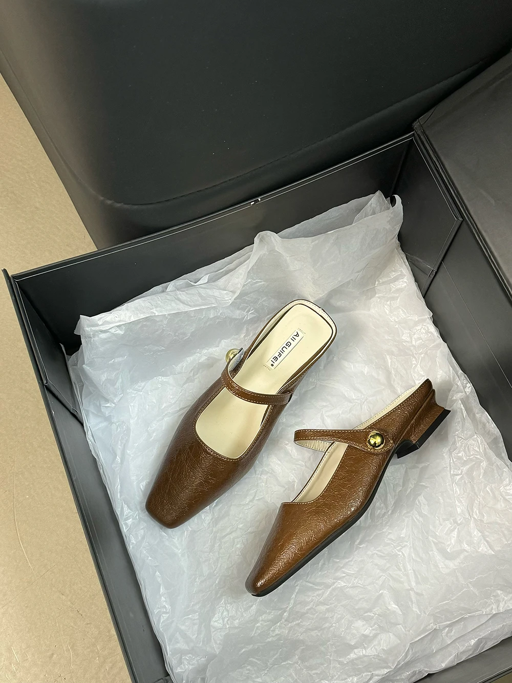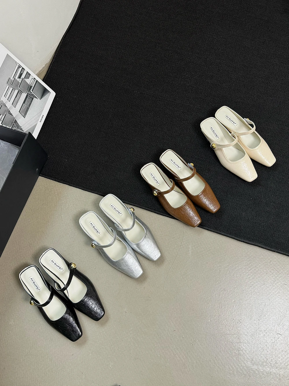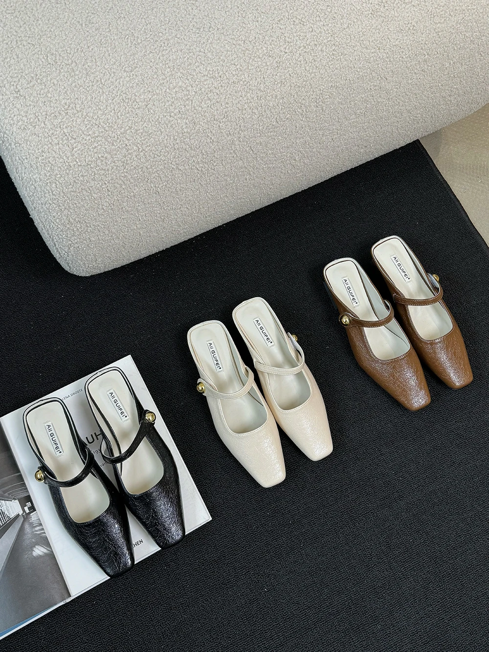 Advbridge Elegant Women Slides Slippers 2024 New Arrivals Casual Mules Flat Heeled Button Design Slip On Black Brown Beige Silver Slippers