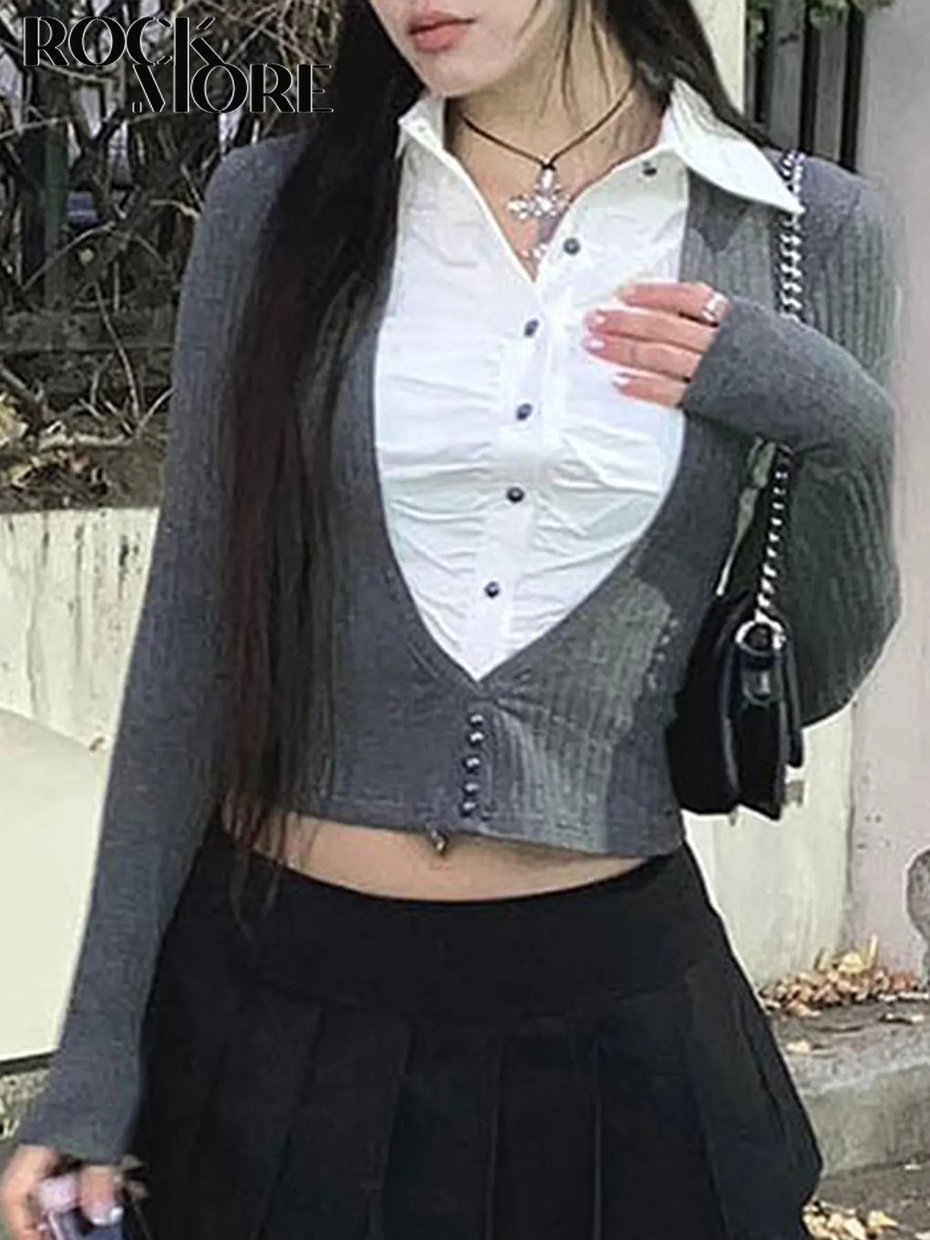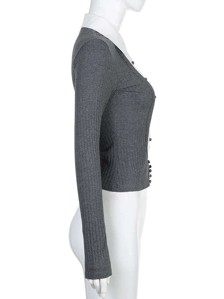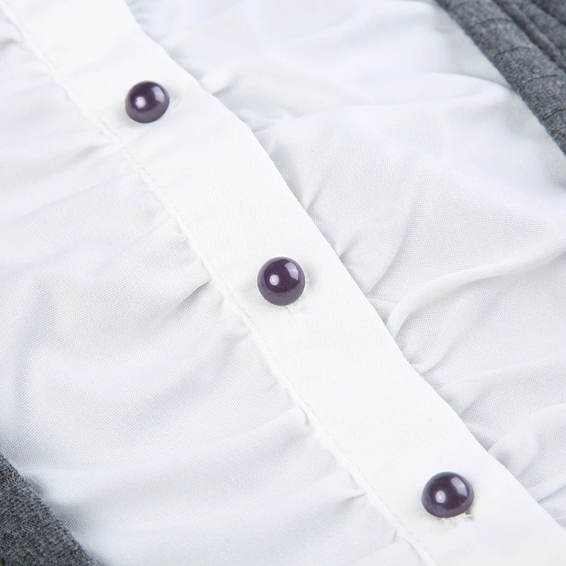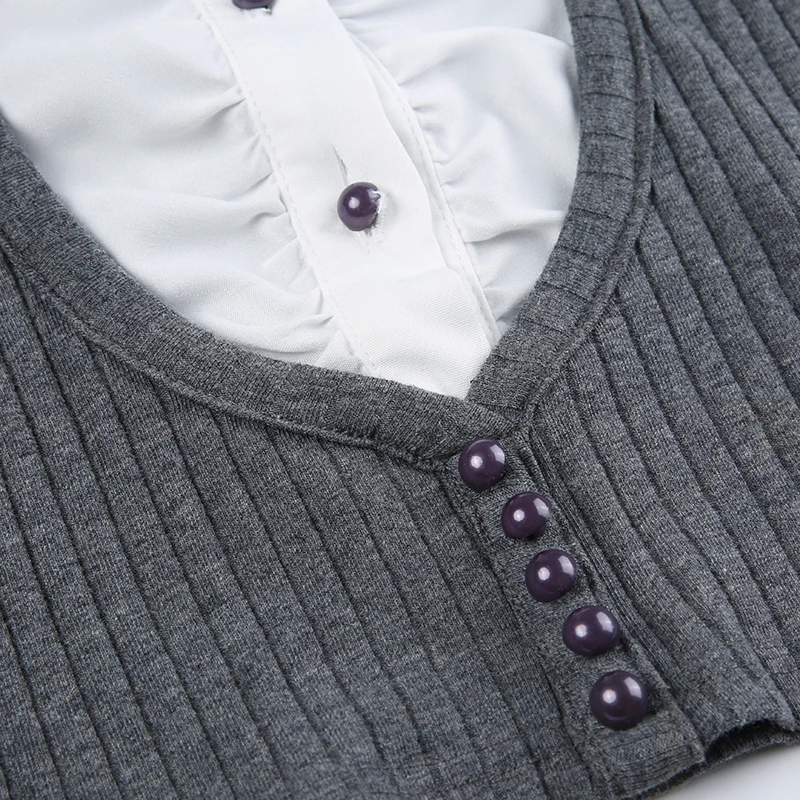 Advbridge Fake Two Piece Patchwork Ruffle Top Preppy Style Turn-down Collar Long Sleeve Shirt Y2k Streetwear Women Autumn Clothes