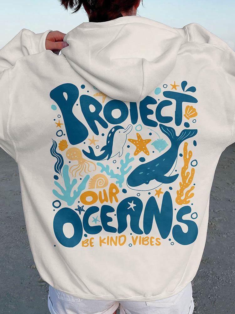 outfit ideas for school Protect Our Oceans Respect The Local Printed Hooded Women Ho
