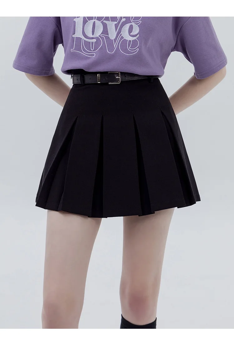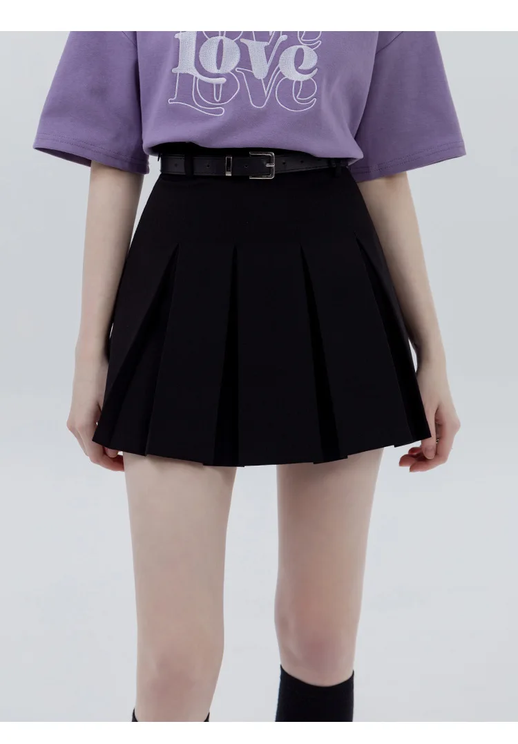 Advbridge Fashion Pleated Skirt with Belt for Women Streetwear Short Pleated Skirt Korean Fashion Clothing Summer Girl's Mini Solid Skirt