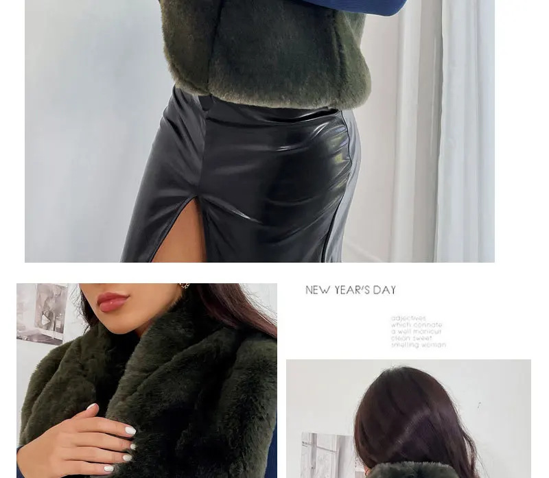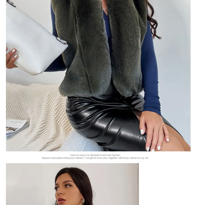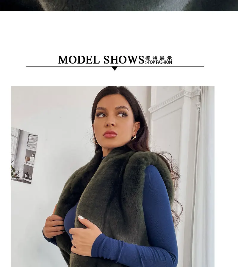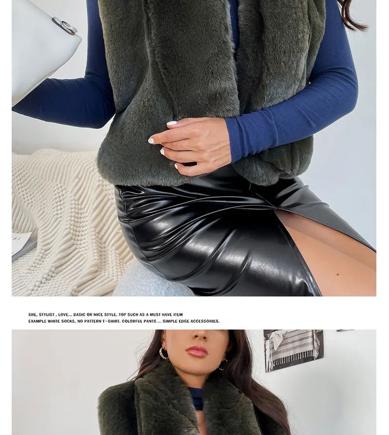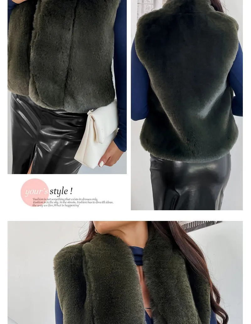 Advbridge Fur Coats Outwear Faux Fur Jacket Outwear Faux Fox Pocket Bead Sleeveless Women Vests Lapel Belt-Free Green Imitation