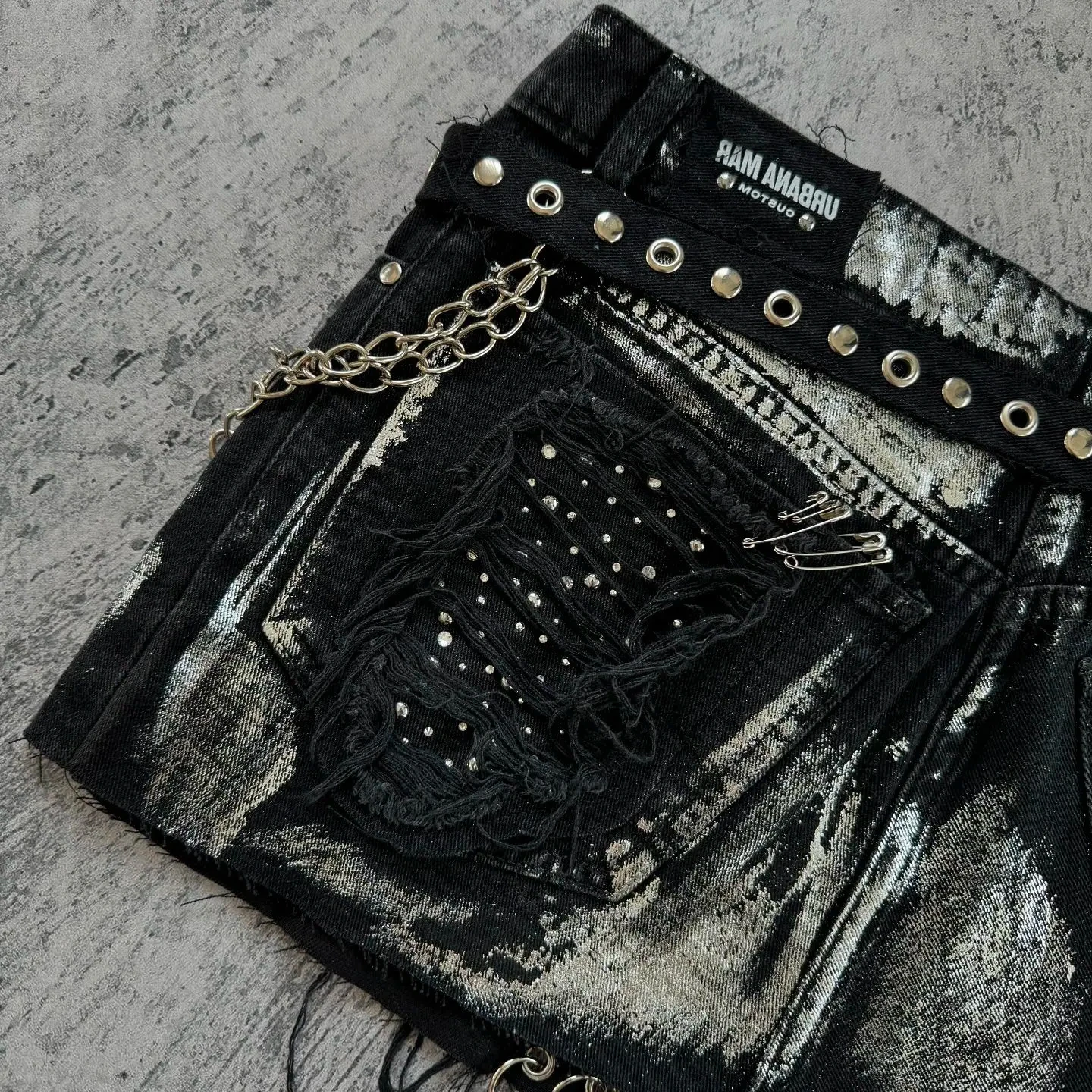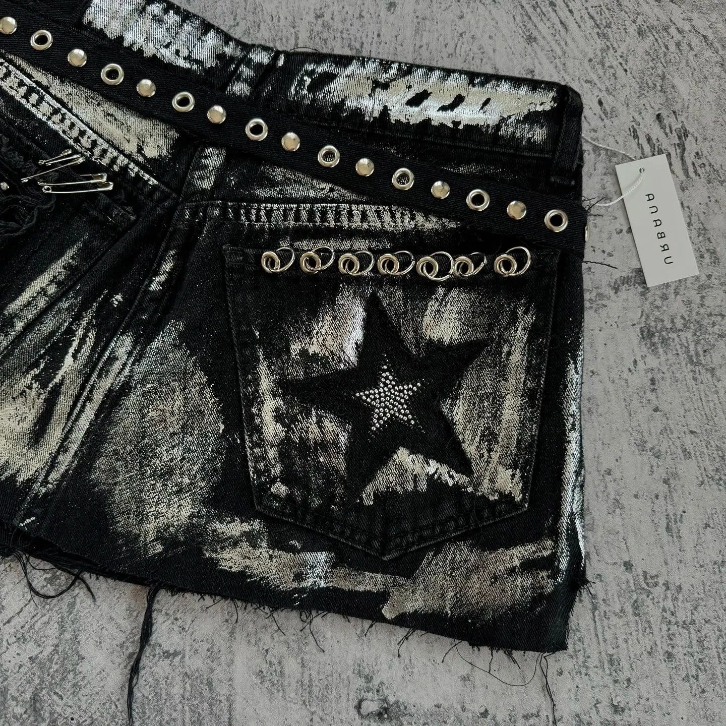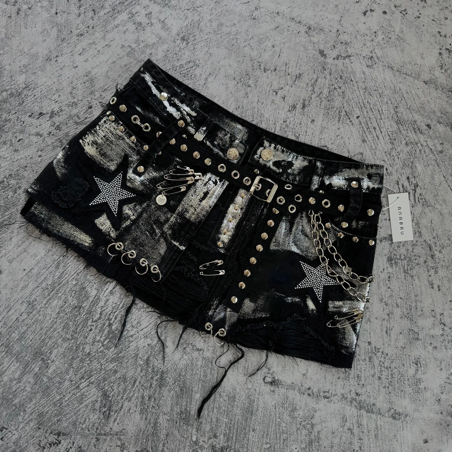 Advbridge Gothic Fashion Shorts Women Y2K Skirt Sweetheart Washed Rhinestone Sequin Baggy Denim Short High Waist Slim Mini Short Skirt