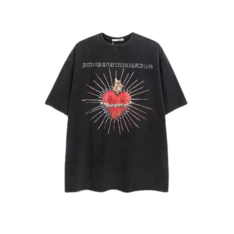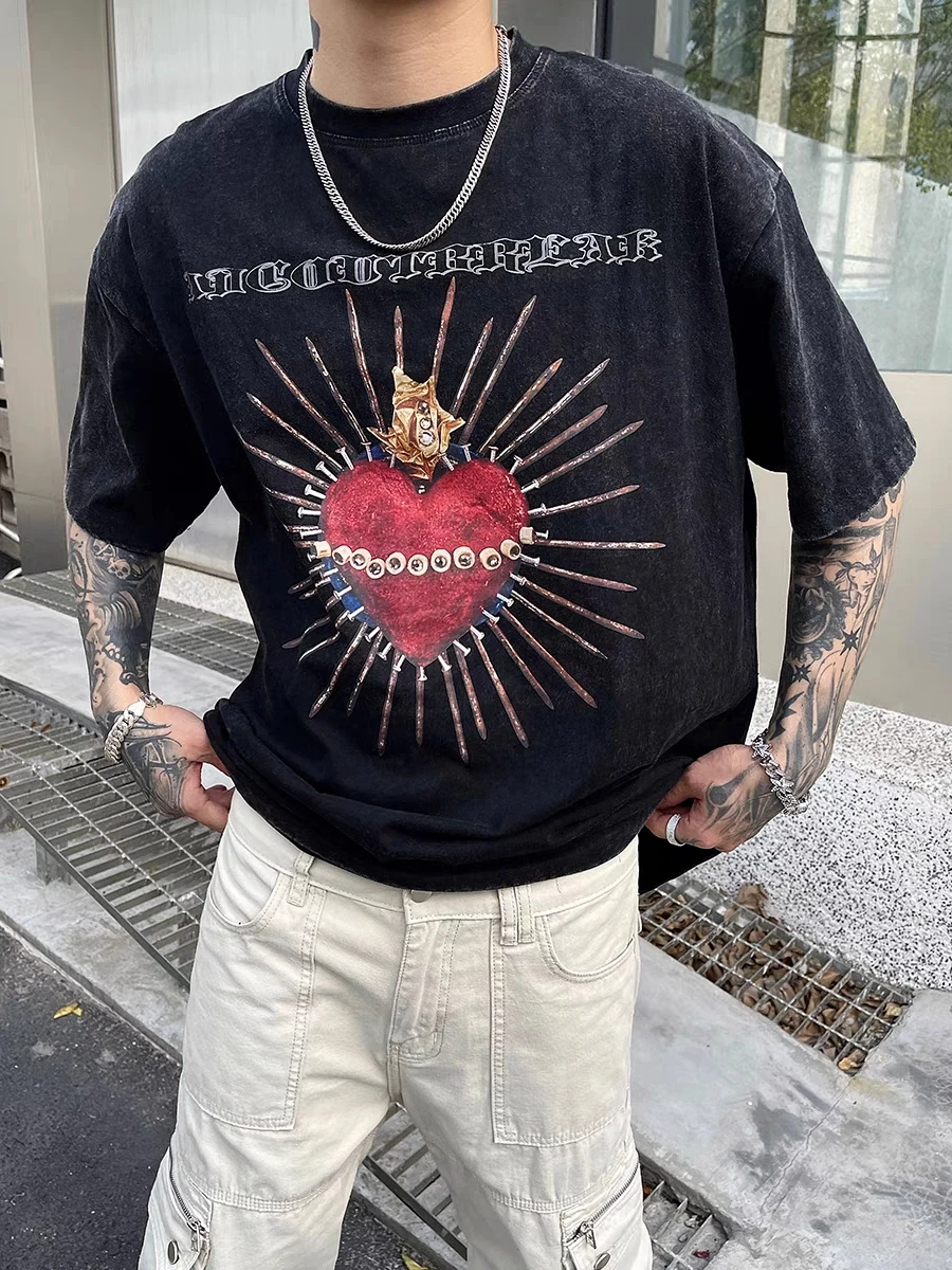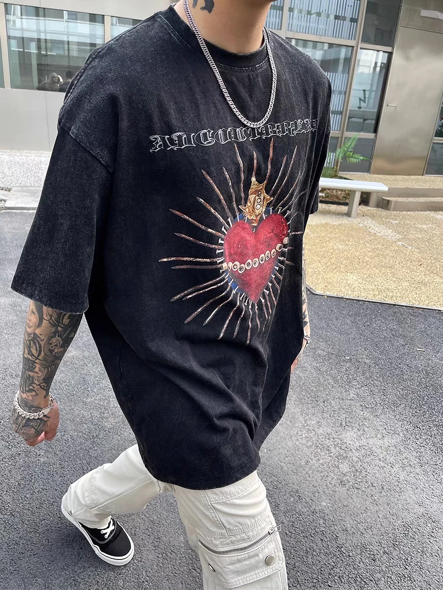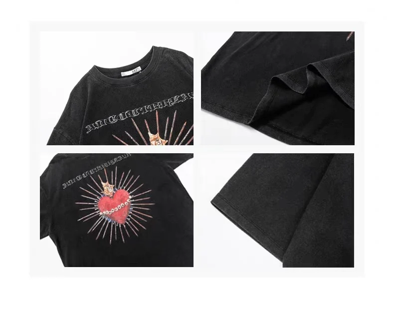 Advbridge Graphic Printed Washed Cotton Men T-shirt Off Shoulder Retro Shirts Harajuku Women Hip Hop Streetwear Oversized Loose Top Tees