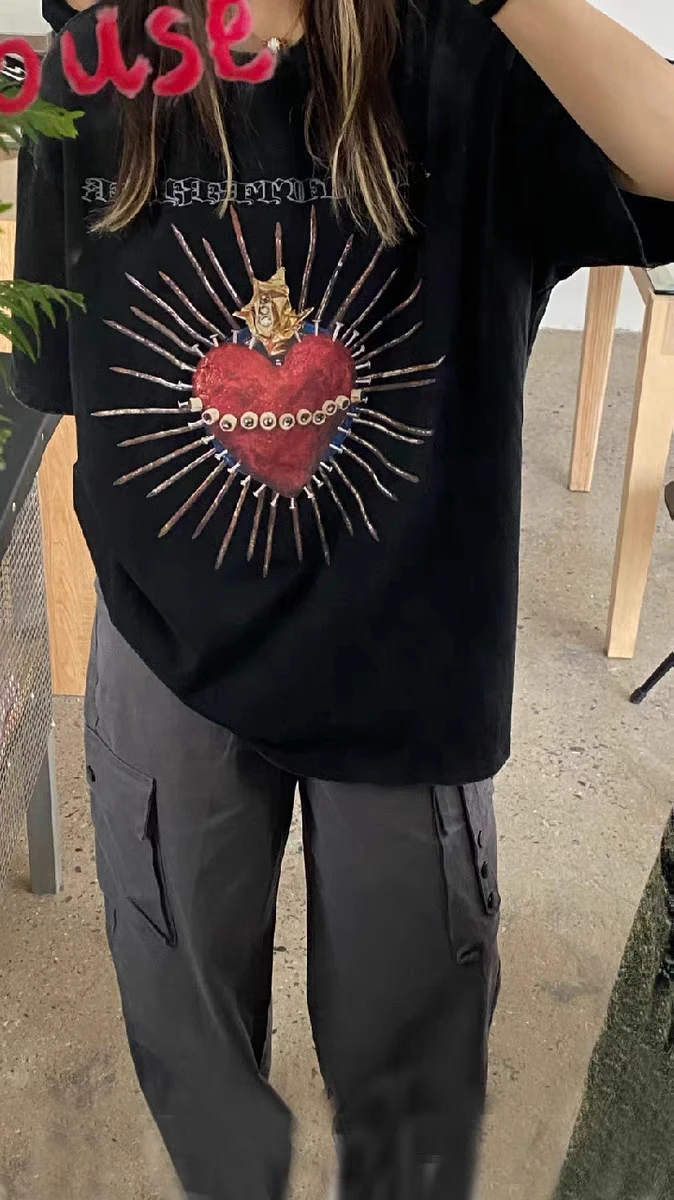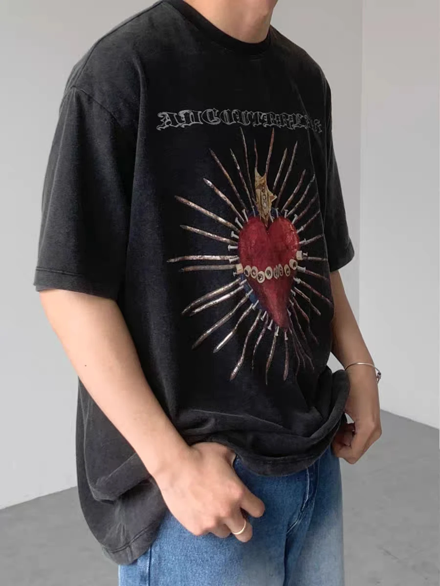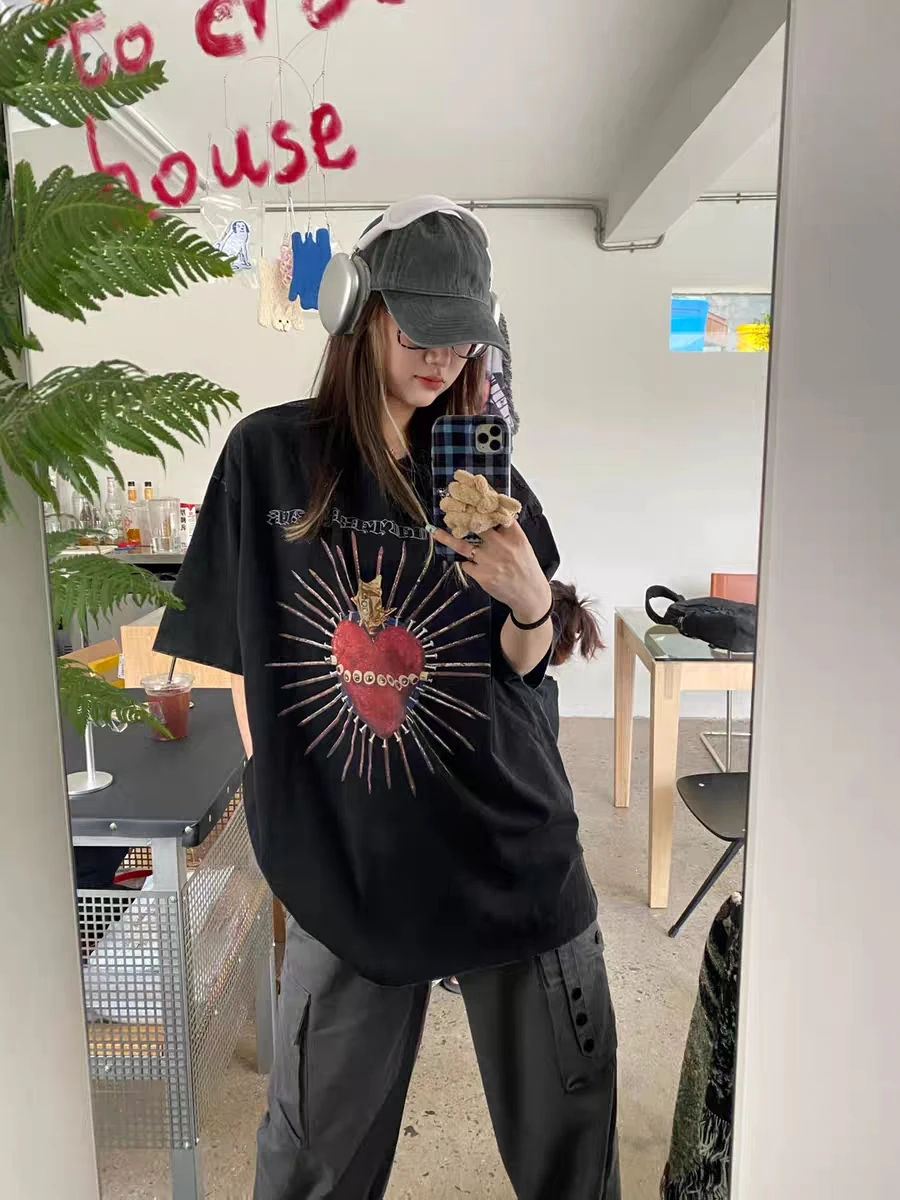 Advbridge Graphic Printed Washed Cotton Men T-shirt Off Shoulder Retro Shirts Harajuku Women Hip Hop Streetwear Oversized Loose Top Tees