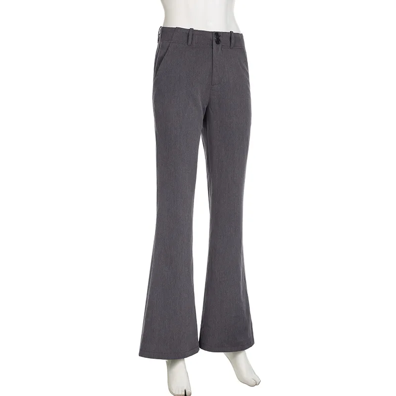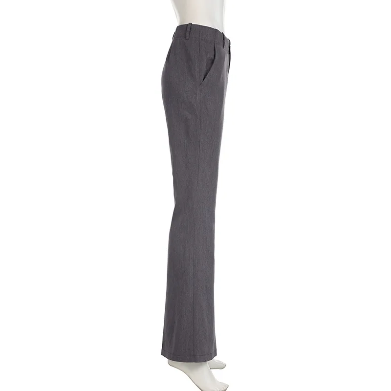 Advbridge Gray Vintage Suit Pants Women Low Waist Streetwear Wide Leg Pants Y2K Office Lady Elegant Slim Casual Flare Trousers