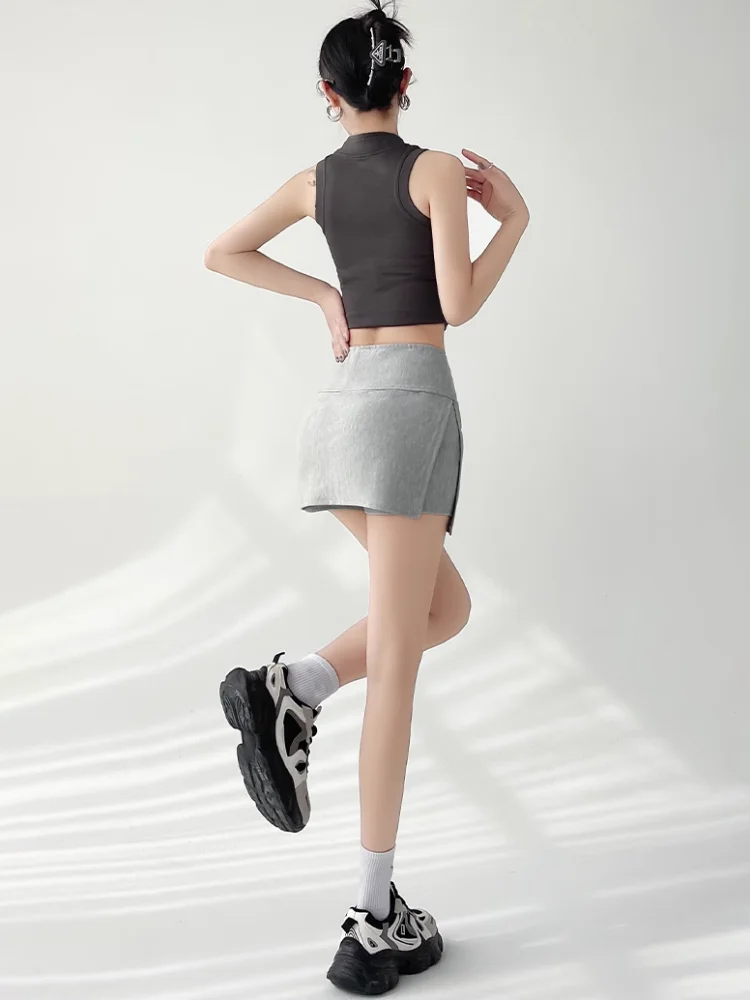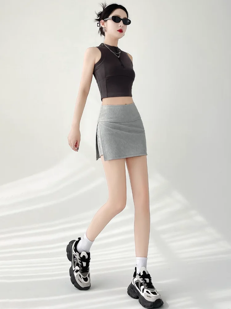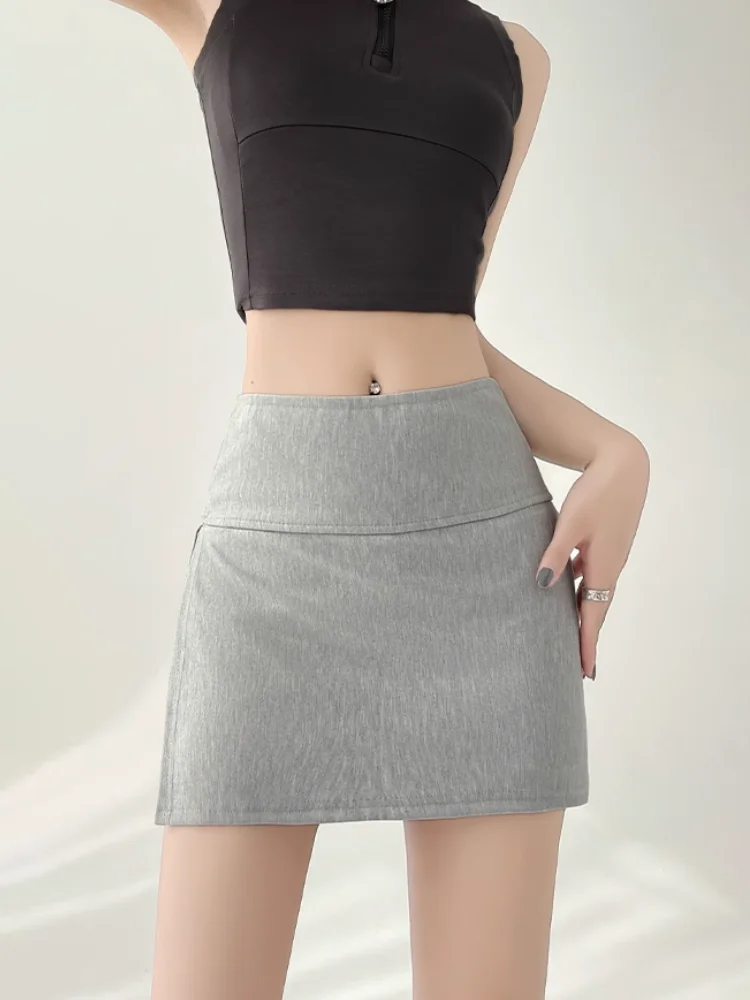 Advbridge Grey Skirts Women Spring Summer Korean Style Side-slit Sexy Lined To Prevent Light Leakage High Waist Slim Hip-covering Casual