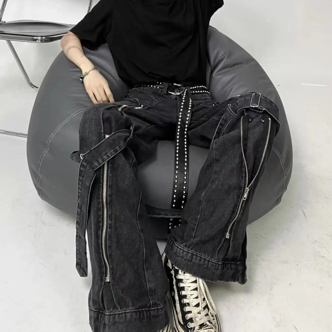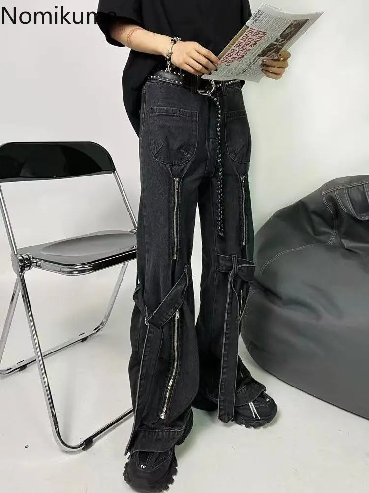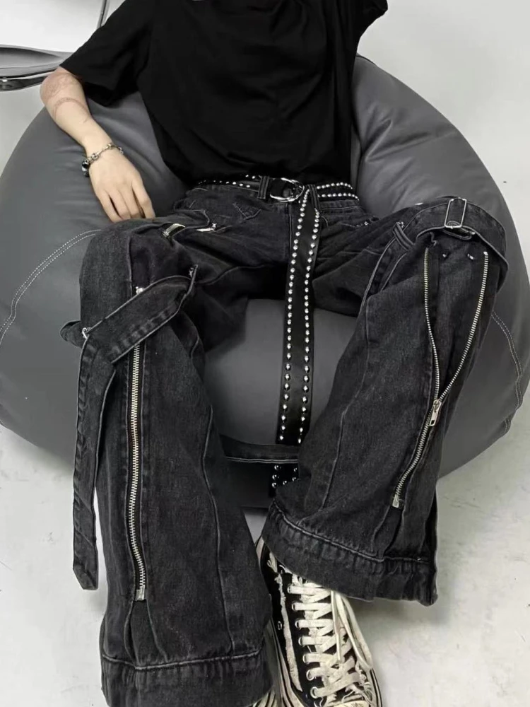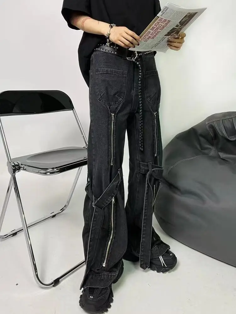 Advbridge Harajuku Jeans Streetwear BF Fashion Wide Leg Pants Women High Waist Straight Hip-hop Zipper Trousers Casual Y2k Pantalon Femme