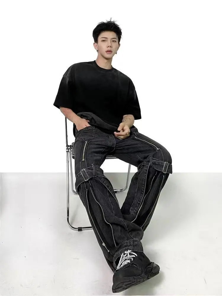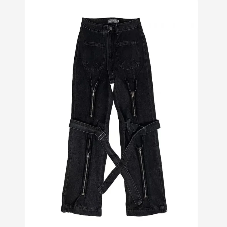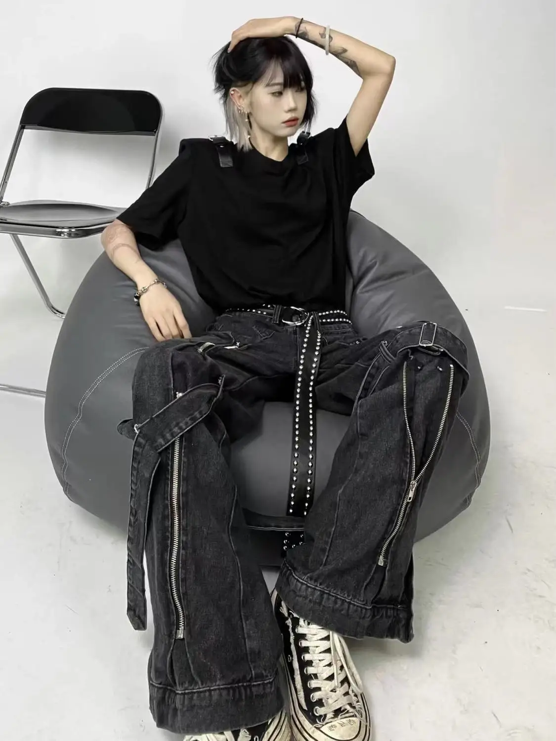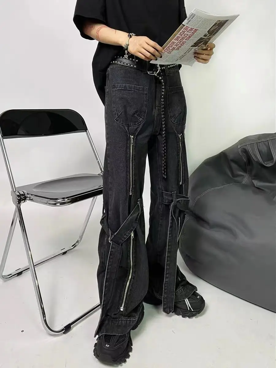 Advbridge Harajuku Jeans Streetwear BF Fashion Wide Leg Pants Women High Waist Straight Hip-hop Zipper Trousers Casual Y2k Pantalon Femme