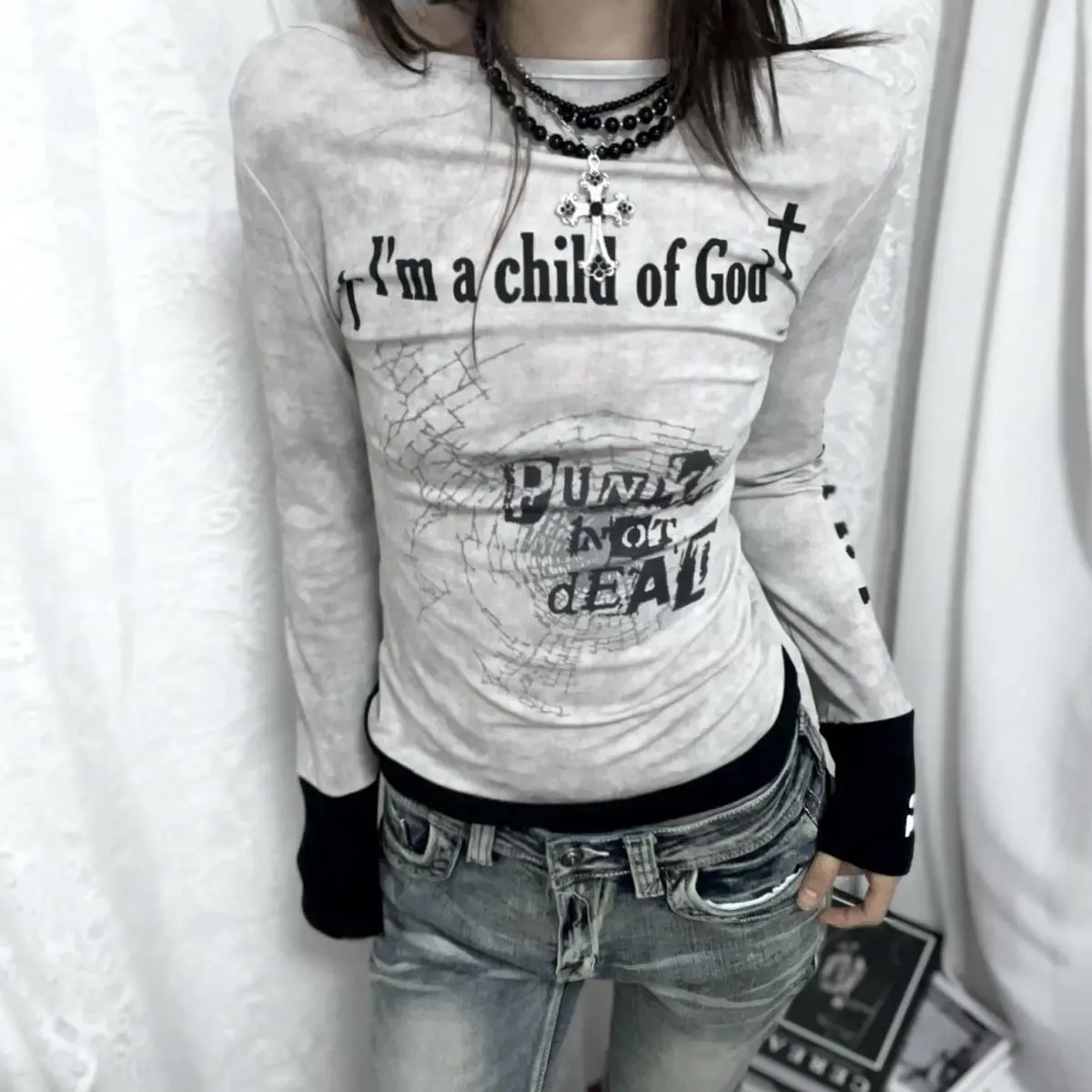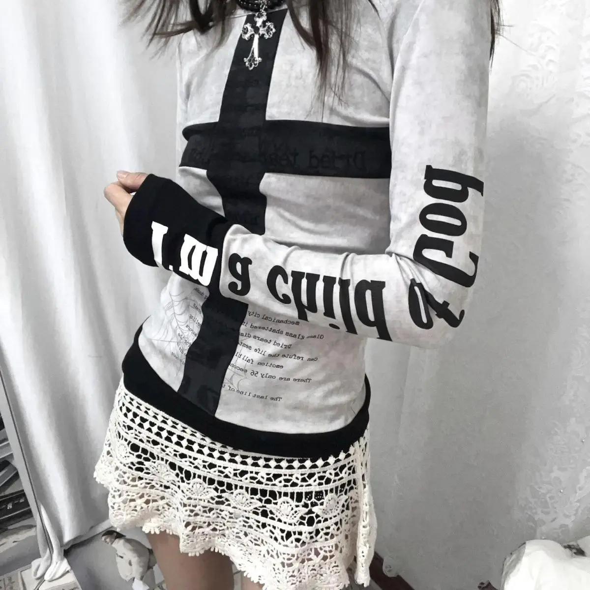 Advbridge Harajuku Punk Graphic T-shirt Women Vintage Gothic Y2k Long Sleeve Tee Grunge Sexy Retro 2000s Street T-shirts Aesthetic