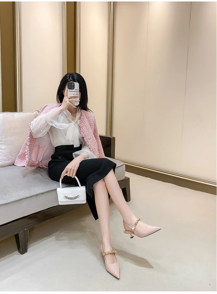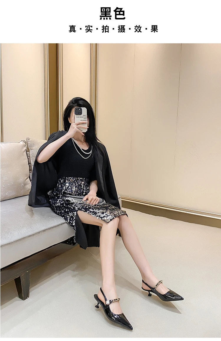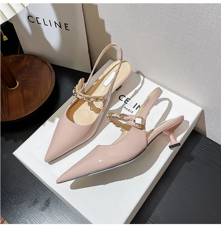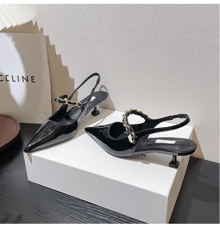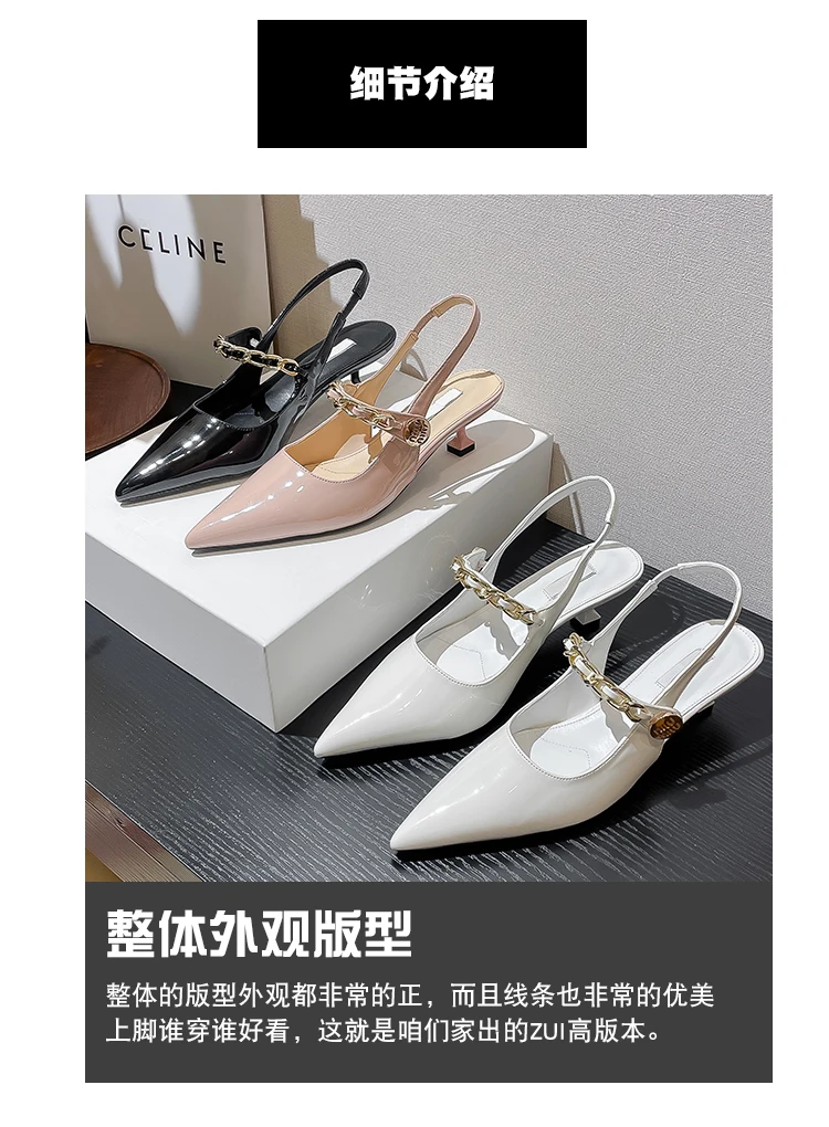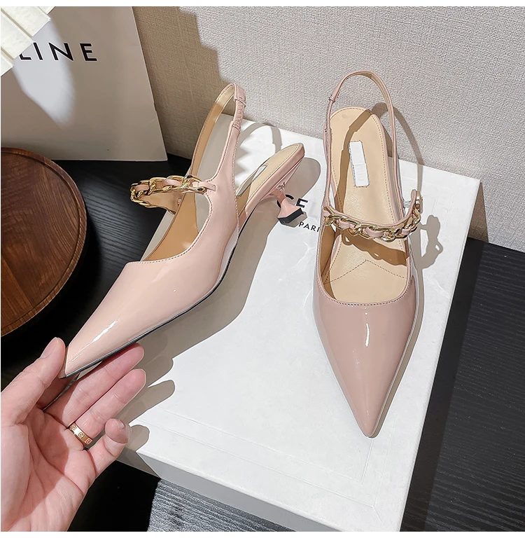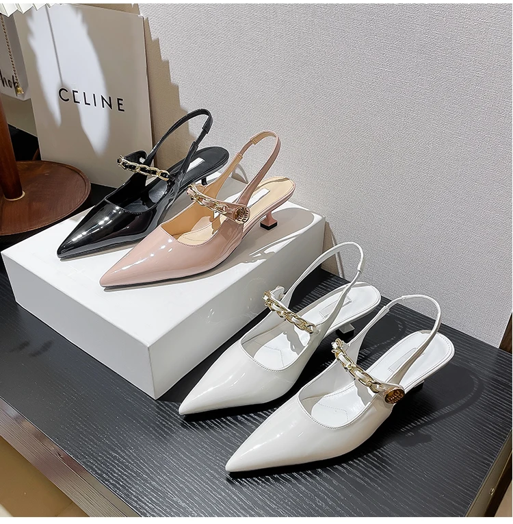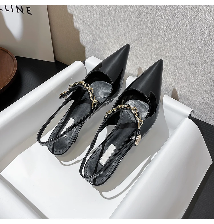 Advbridge High end women's sandals Spring/Summer New pointed shallow chain French slim heels Sexy versatile high heels