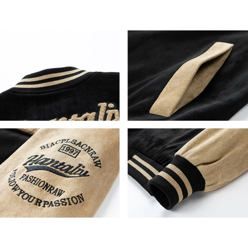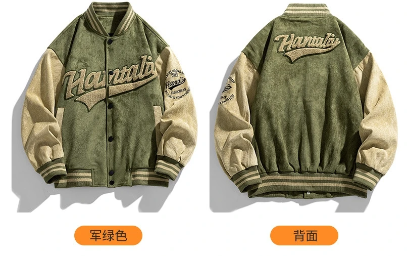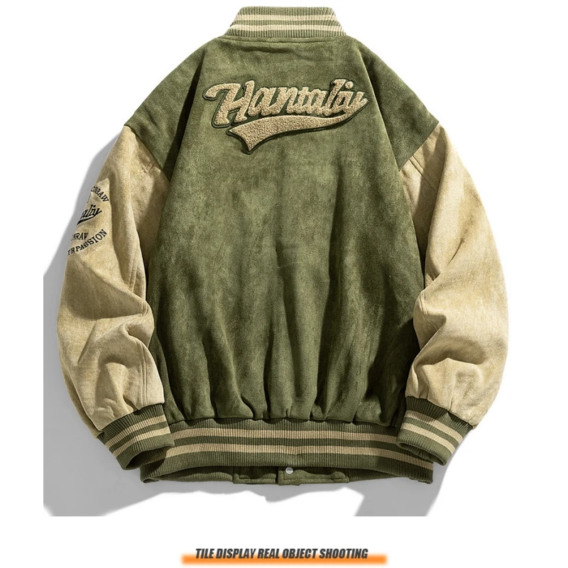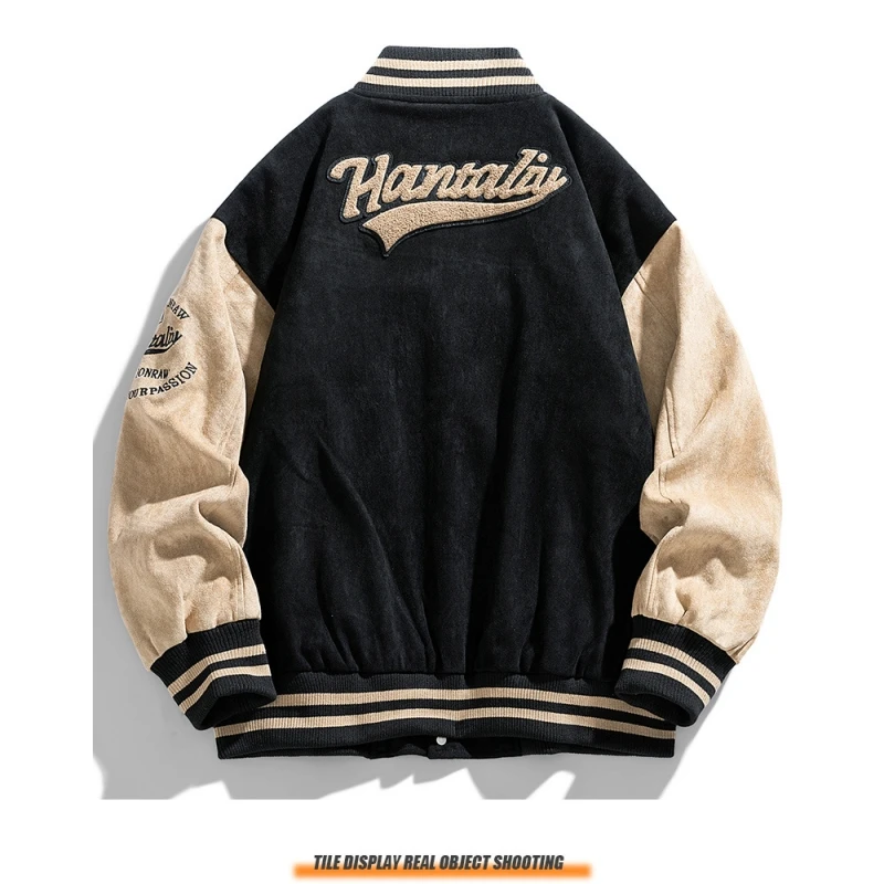 Advbridge High Quality Suede Bomber Jacket For Men Women American Retro Embroidery Coat Hip Hop Streetwear Couple Baseball Jersey Jacket