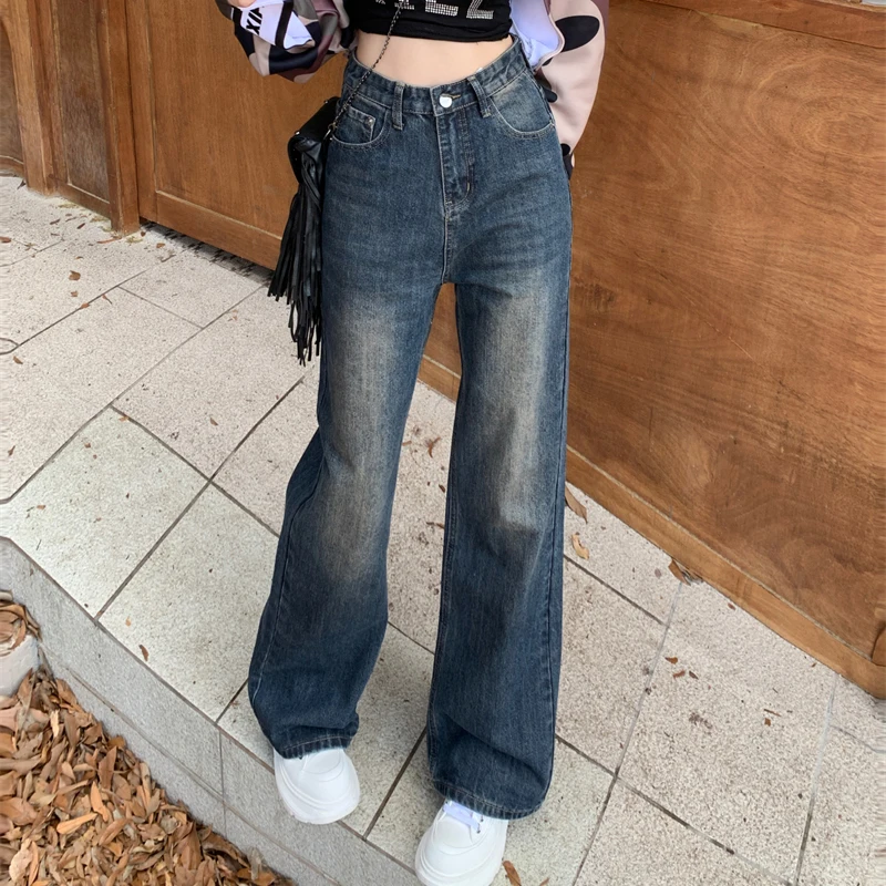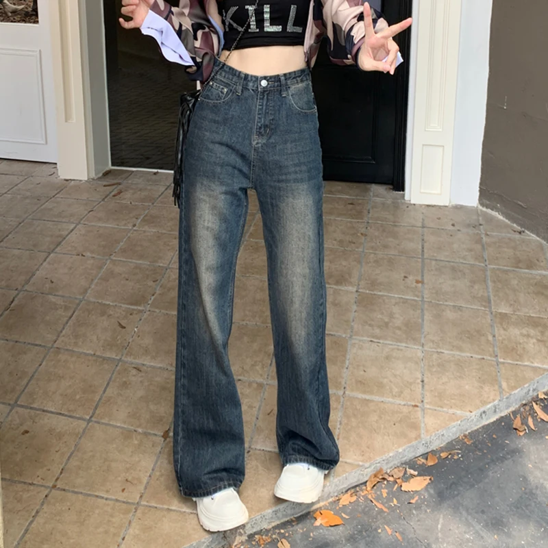 Advbridge - High Waist Baggy Jeans for Women New Fashion Wide Leg Cargo Trousers Woman Streetwear Denim Straight Pants Female