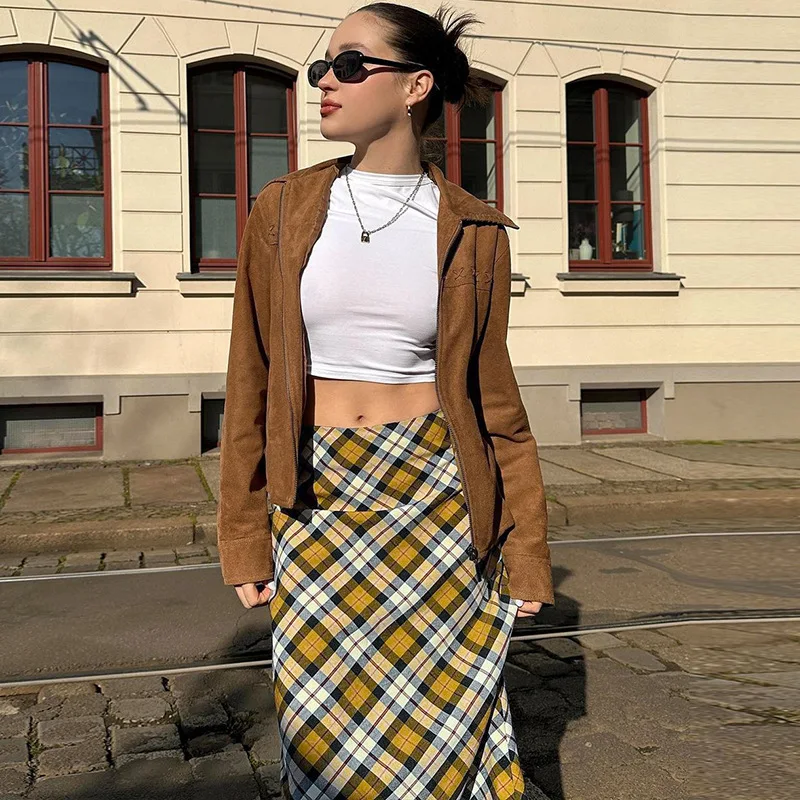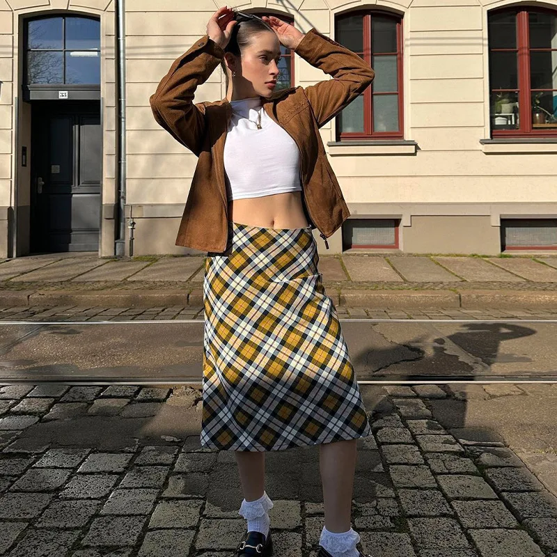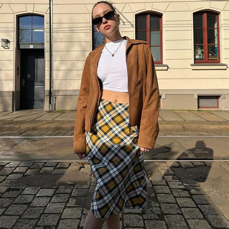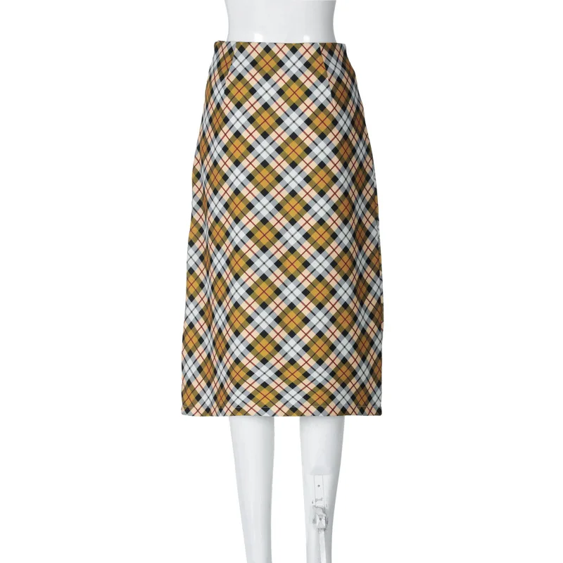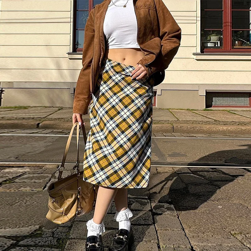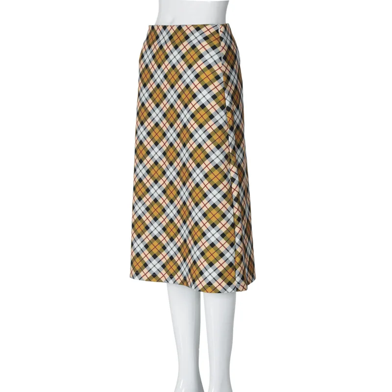 Advbridge - High Waist Plaid Skirt Women Autumn Fashion Loose Long Skirt Women's Street Casual Side Slits Retro Maxi Skirt Femme