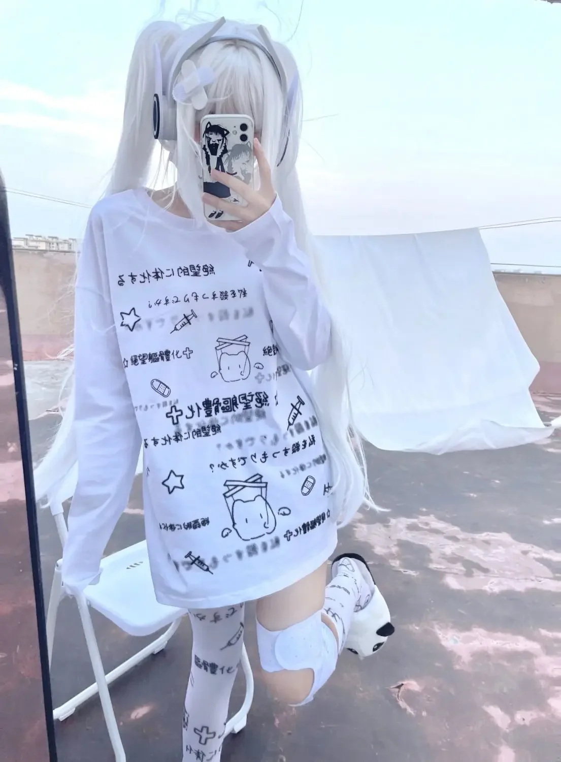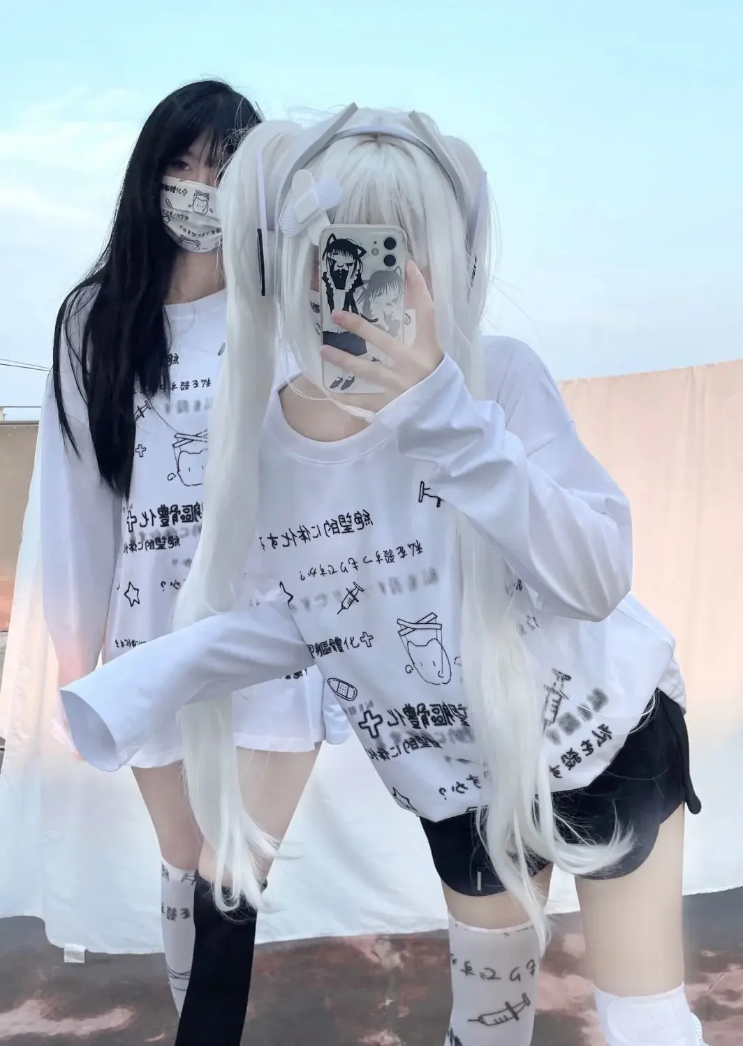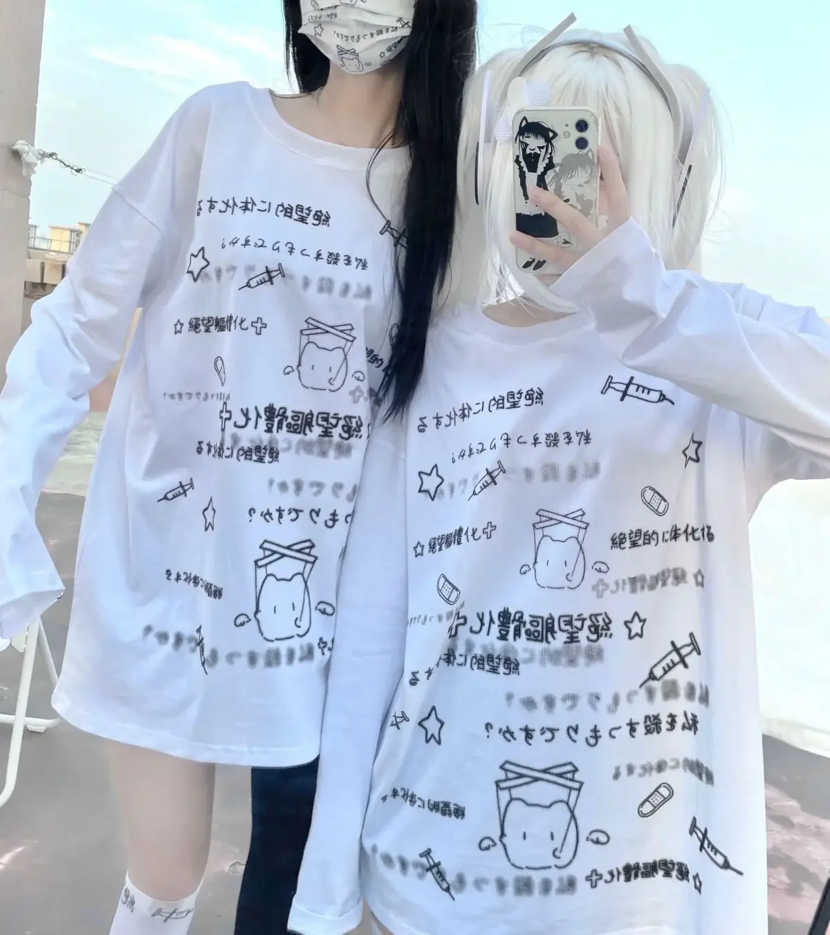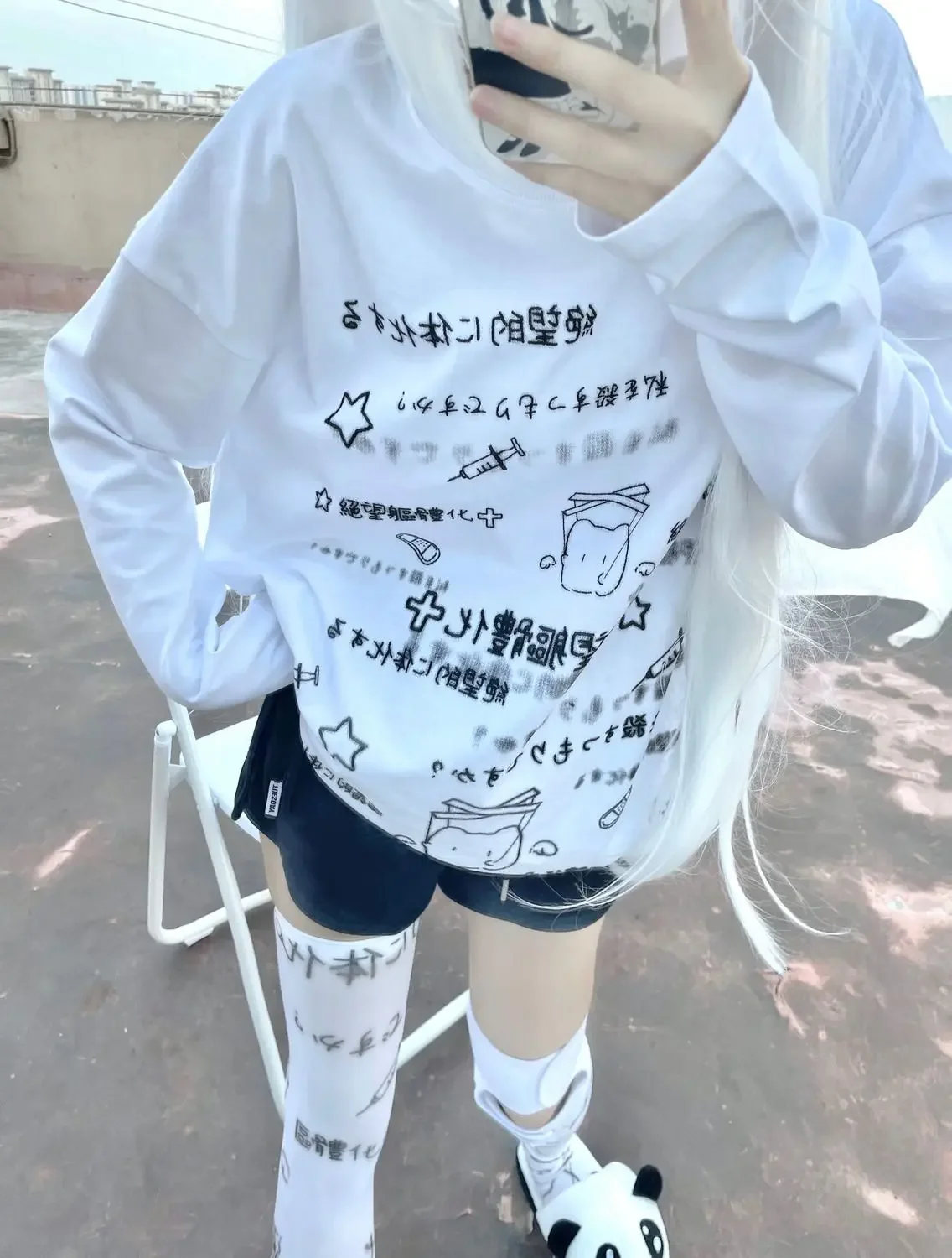 Advbridge Japanese Kawaii Tops Letter Print Women T-shirt Y2k Aesthetic Loose All Match Tshirts Streetwear Fairy Grunge Fashion Tee Shirts