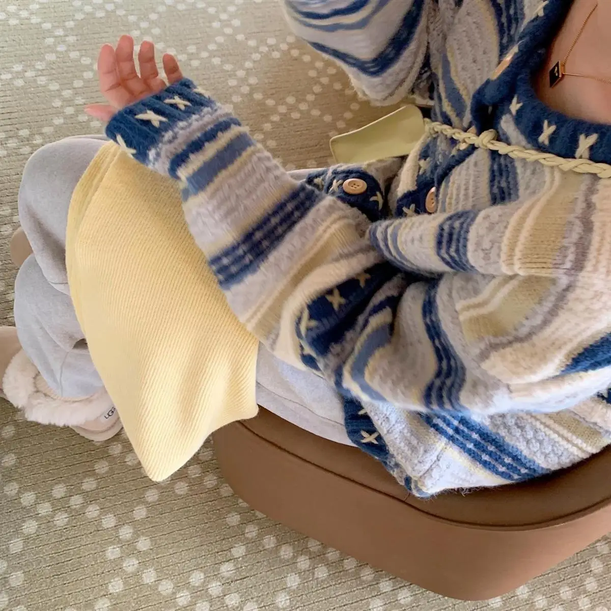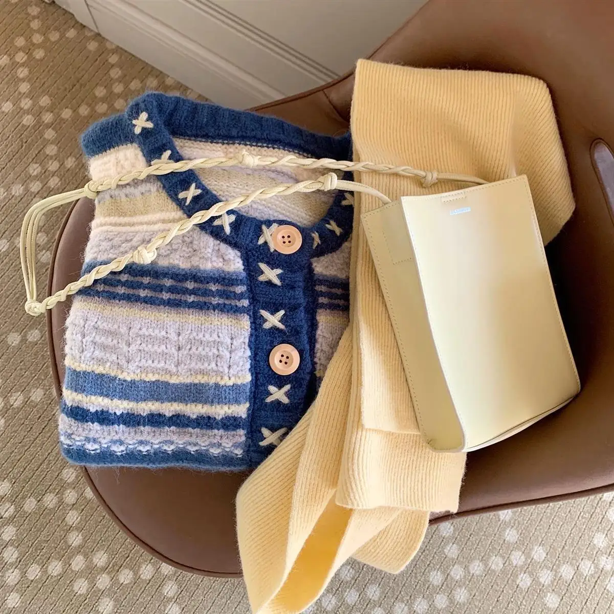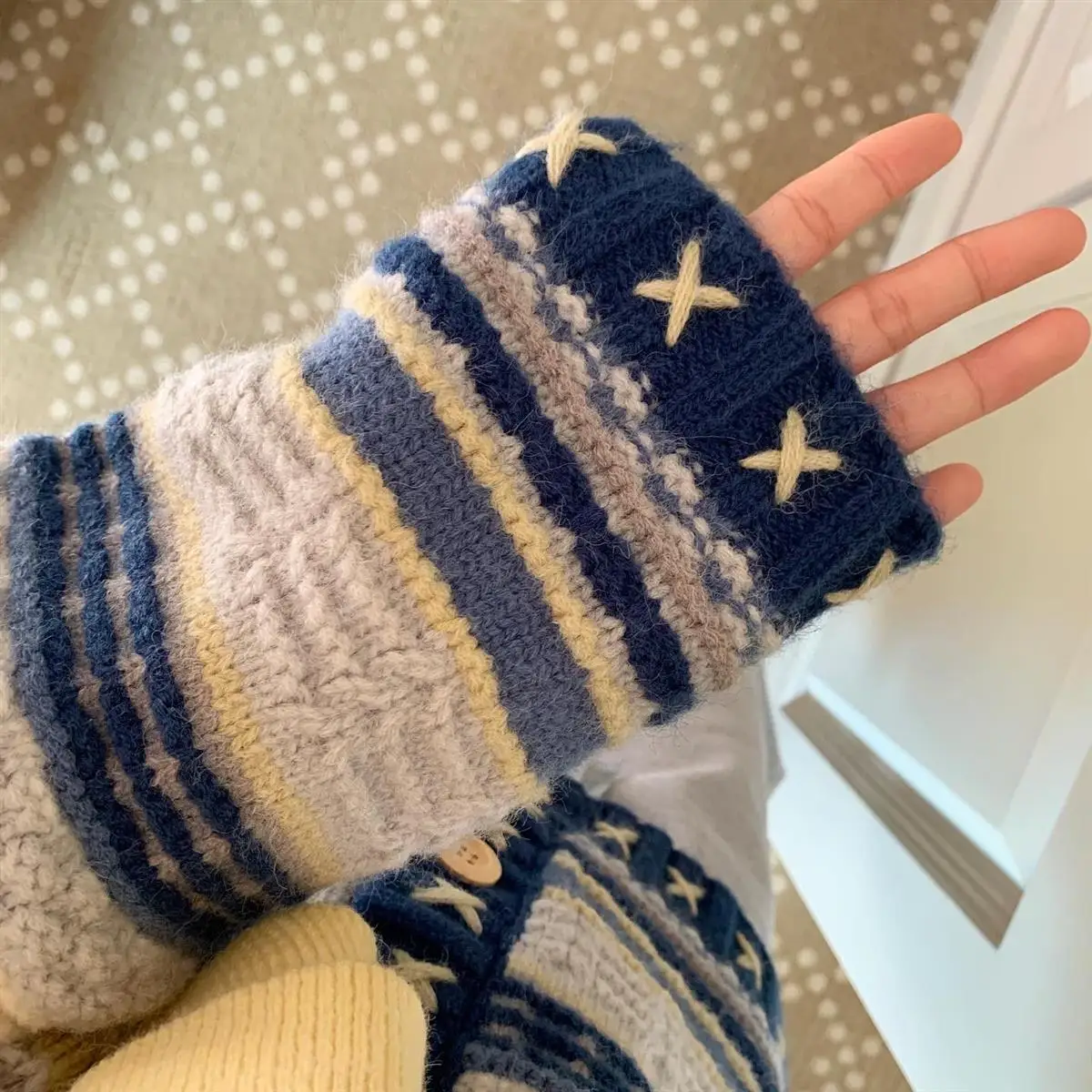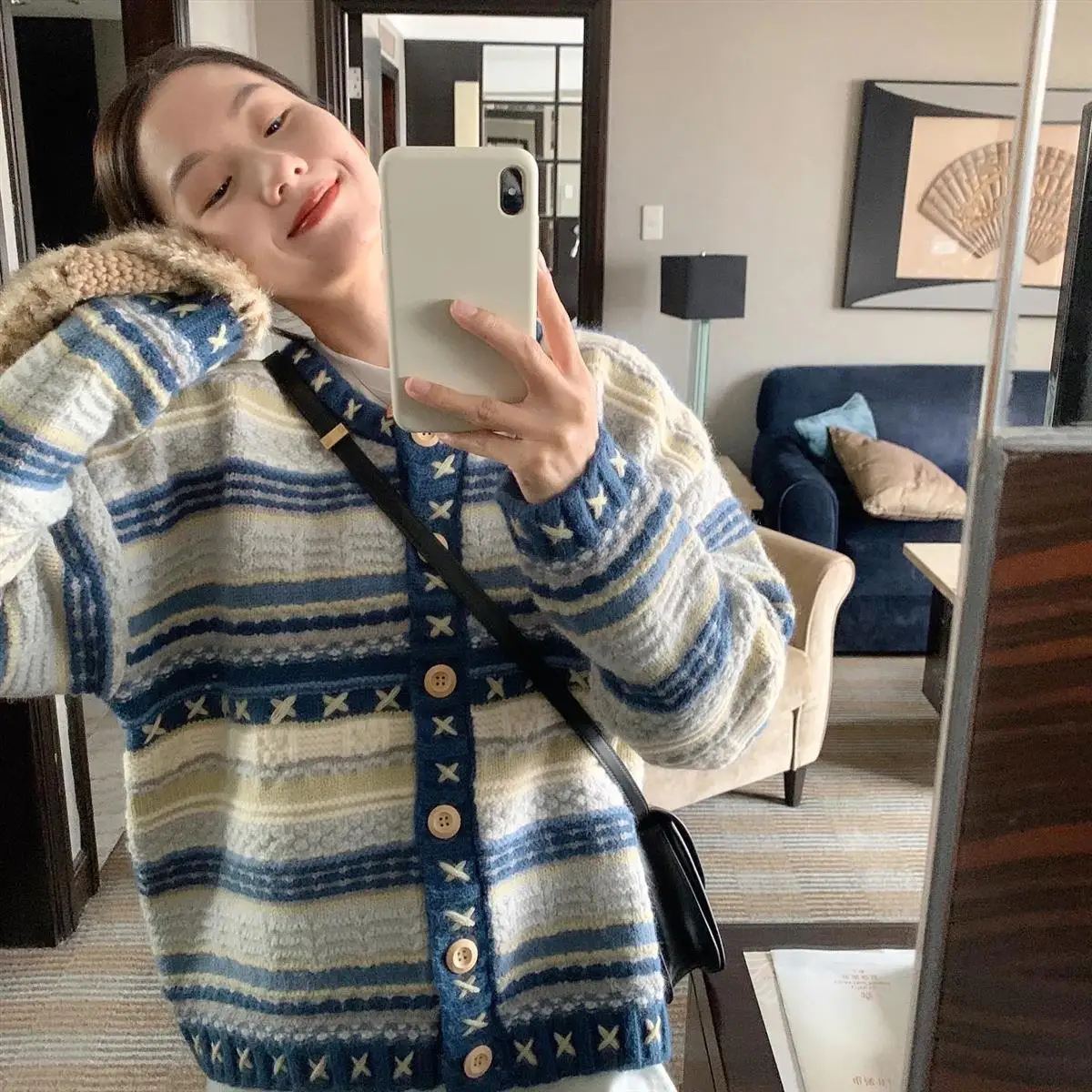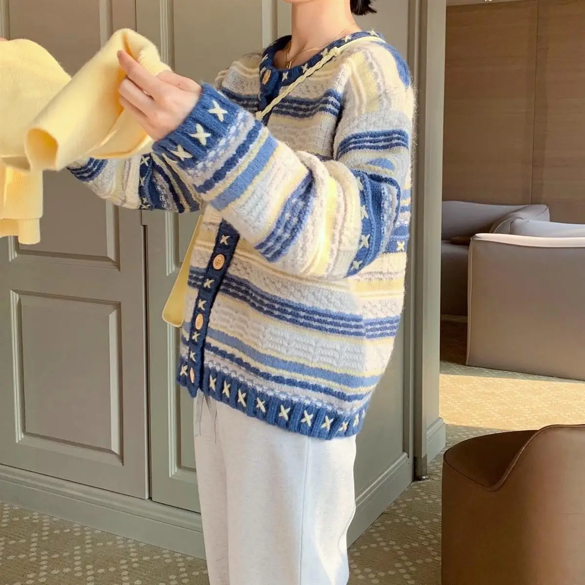 Advbridge Knitted Sweater Women's Heavy Industry Hook Flower Sweater Coat Striped Design Cardigan Women