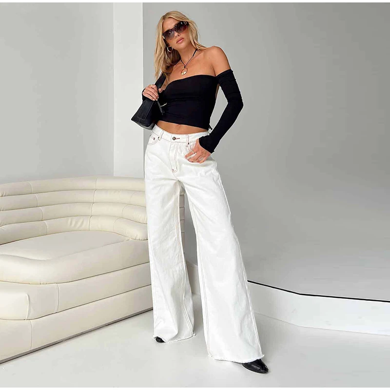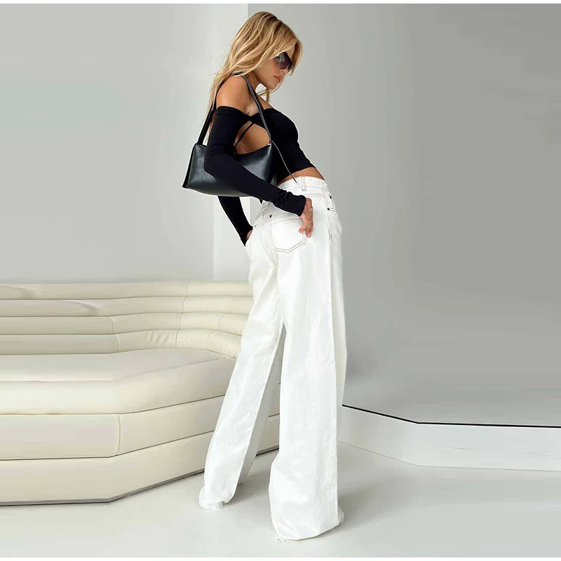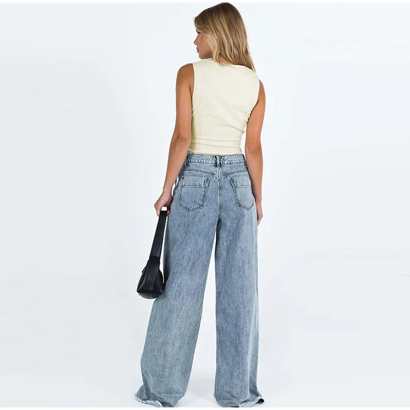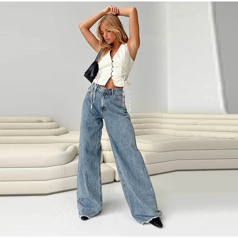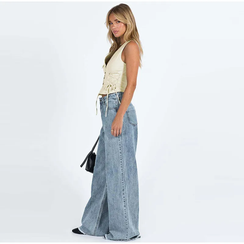 Advbridge Light Blue Fringes Jeans Women High Waist Zipper Pockets Wide Leg Long Denim Pants Female 2025 Spring Fashion Lady Streetwears