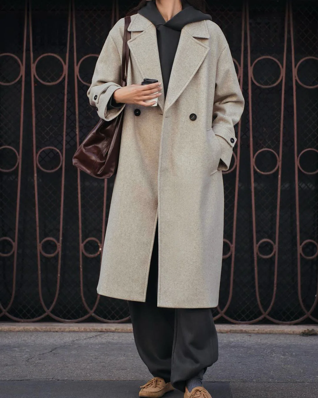 Advbridge Loose Fashion Women's Overcoat Pocket Lapel High Waist Long Sleeve Winter 2024 Ladies Jacket Coat Solid Patchwork Outwear