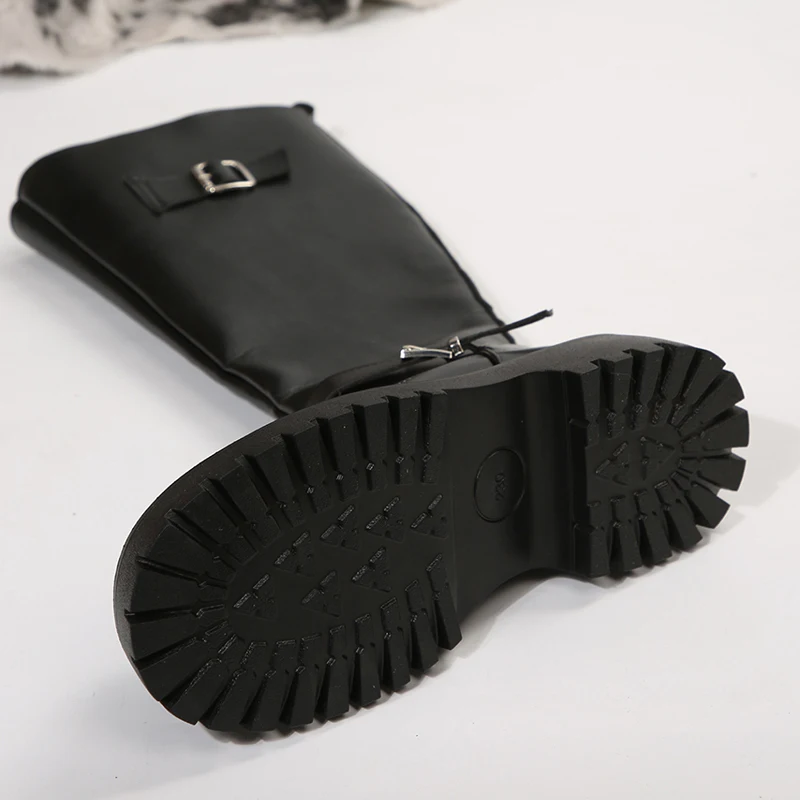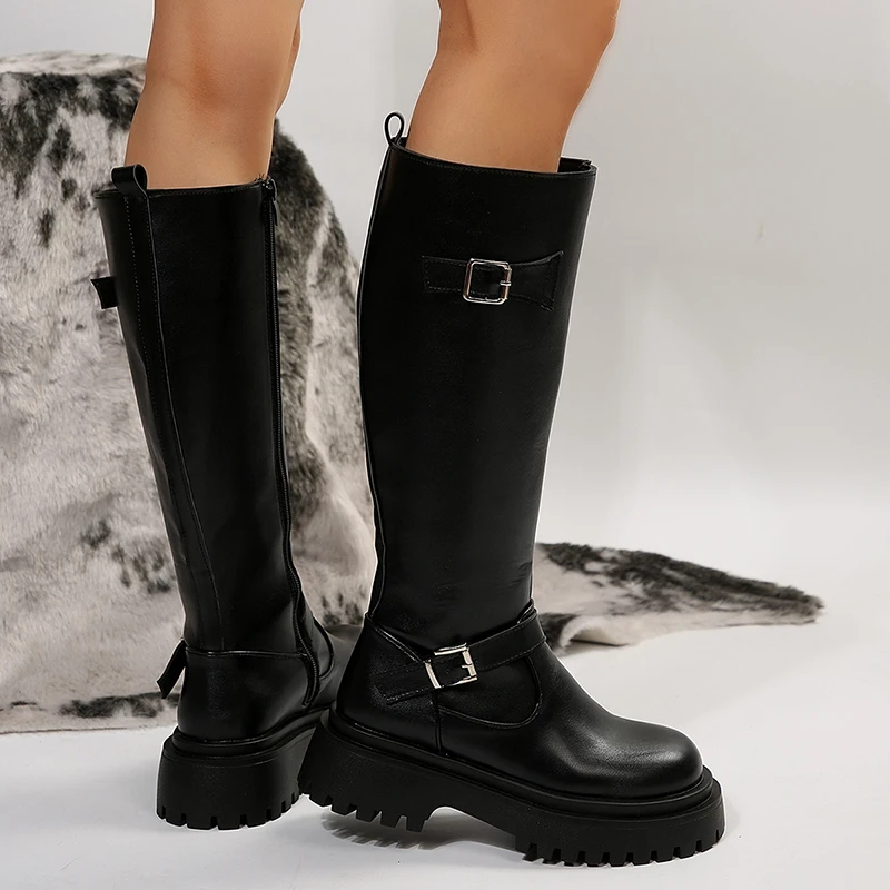 Advbridge Lucyever Fashion Buckle Knee High Boots Women Side Zipper Punk Knight Combat Boots Woman Pu Leather Thick Heels Long Botas