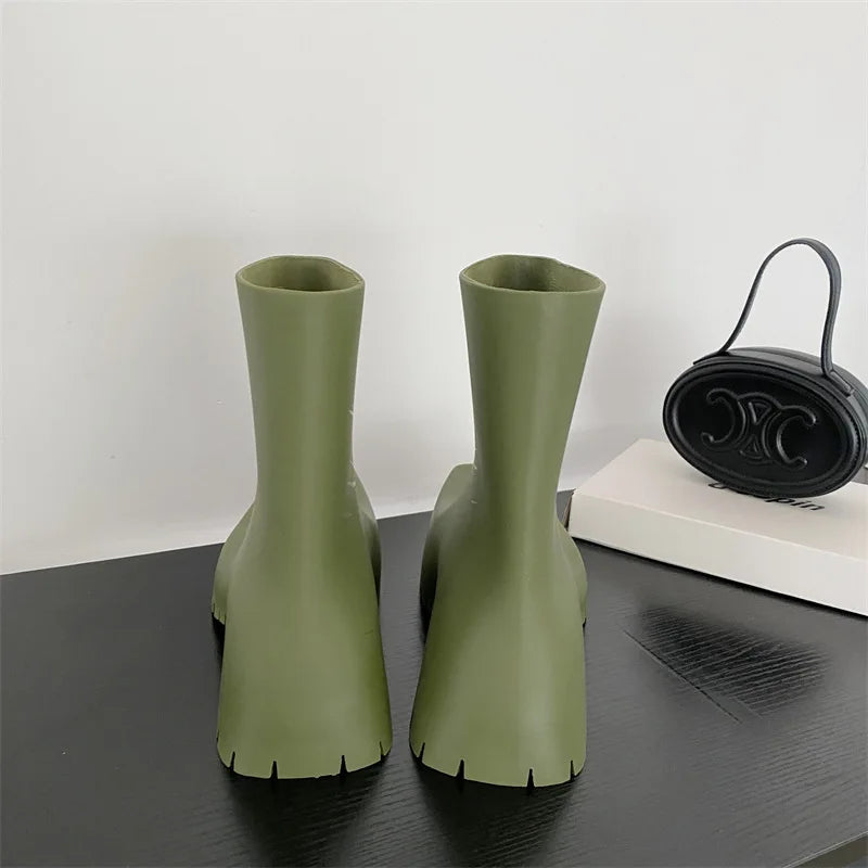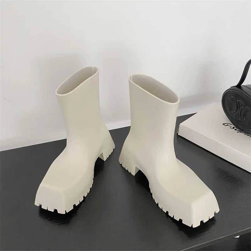 Advbridge Luxury Women Boots Fashion Designer Boots Waterproof Non-slip Short Boot Square Toe Soft Leather Comfy Women Platform Rain Boots