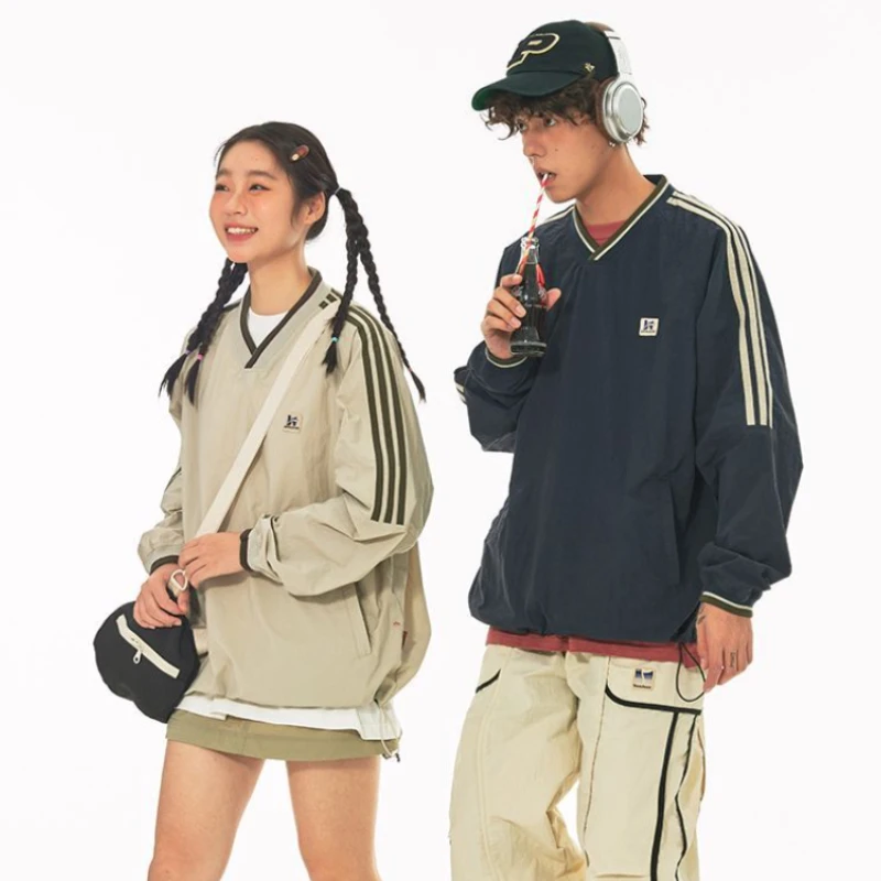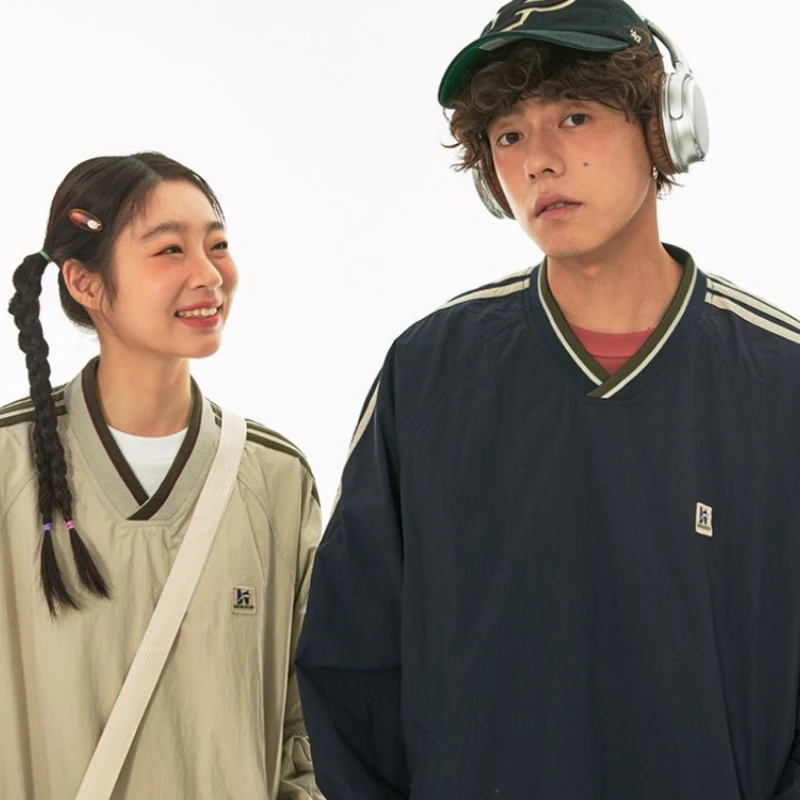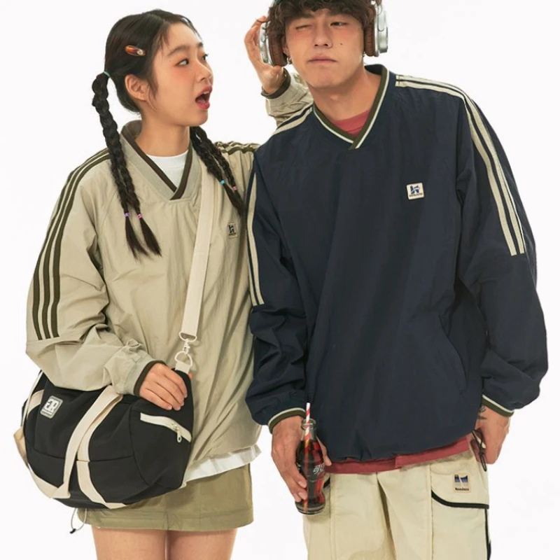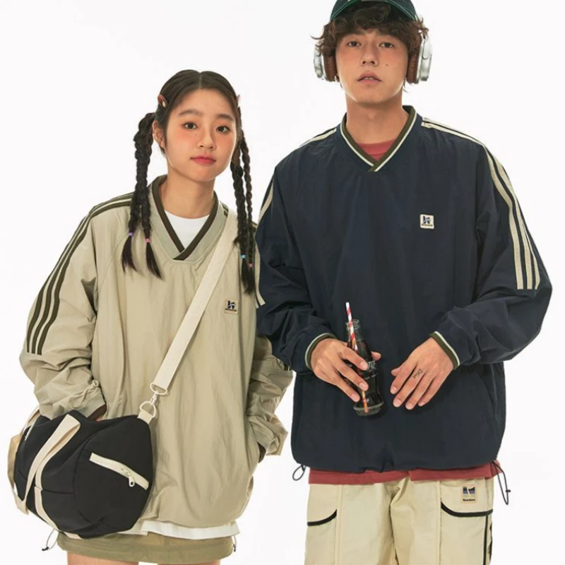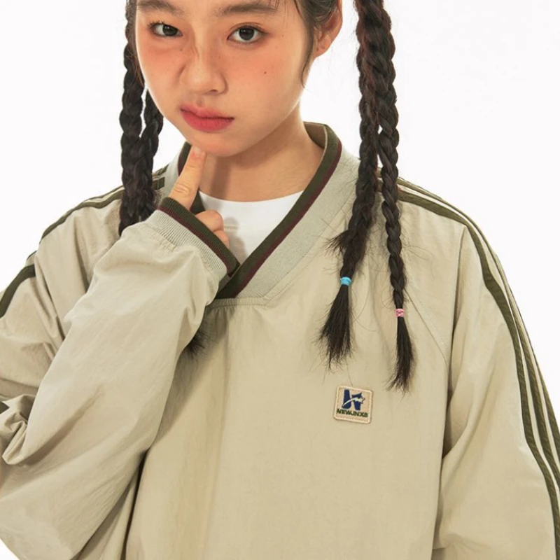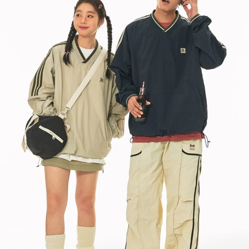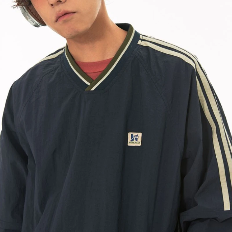 Advbridge Men‘s Wintern outfits American Retro V-neck Sweatshirt Webbing Raglan Sleeves Couple Long Sleeve Shirt for Men Women Autumn Sports Wear Jacket Tops