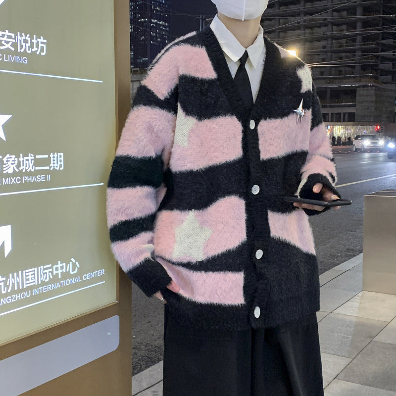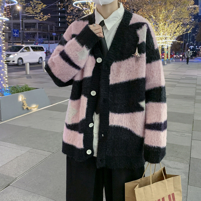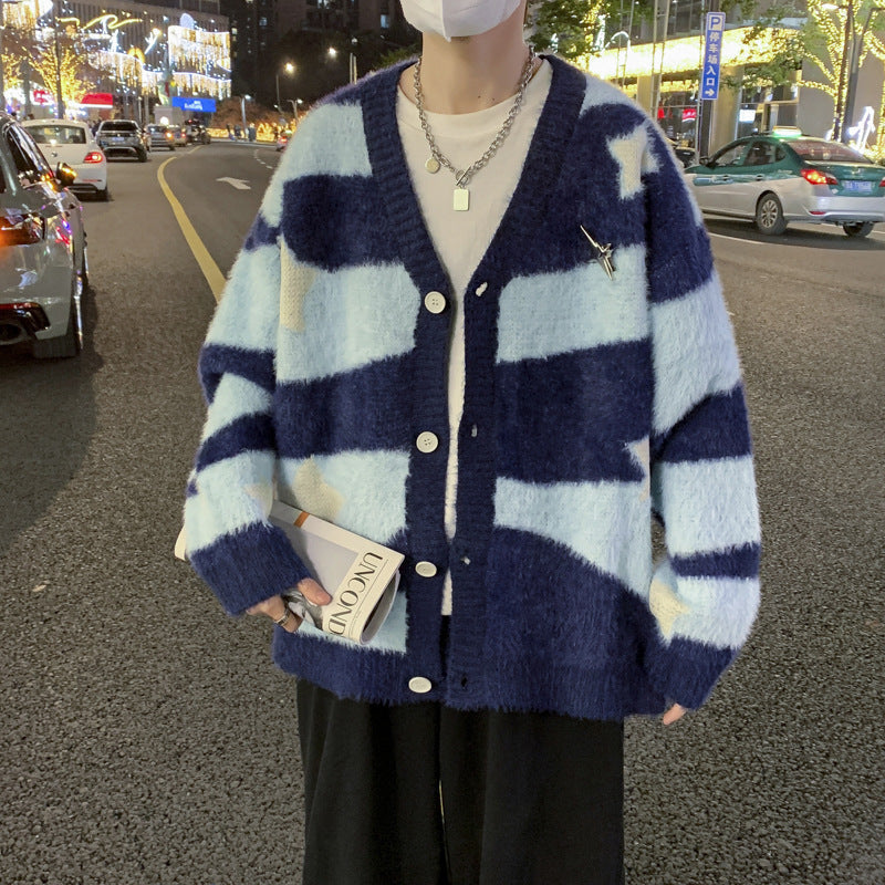 streetwear men outfits Autumn and Winter V-neck Cardigan Star Sweater Men's and Women's Long-Sleeved Slim-Fit Trendy Couple Warm Button Knitted Sweater