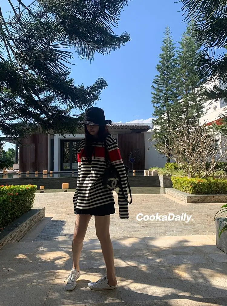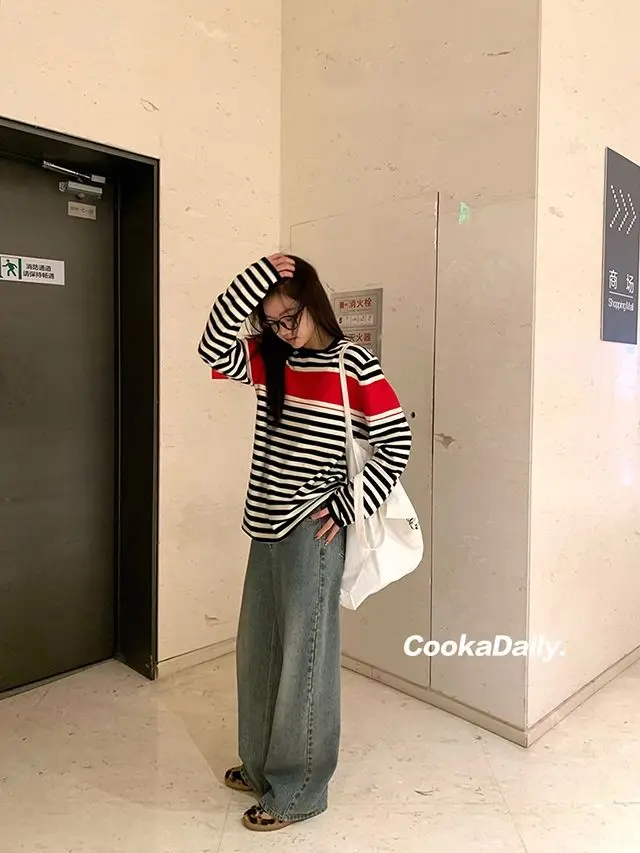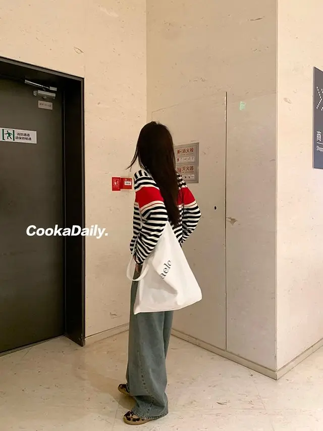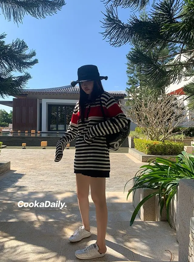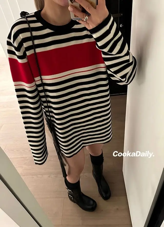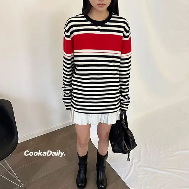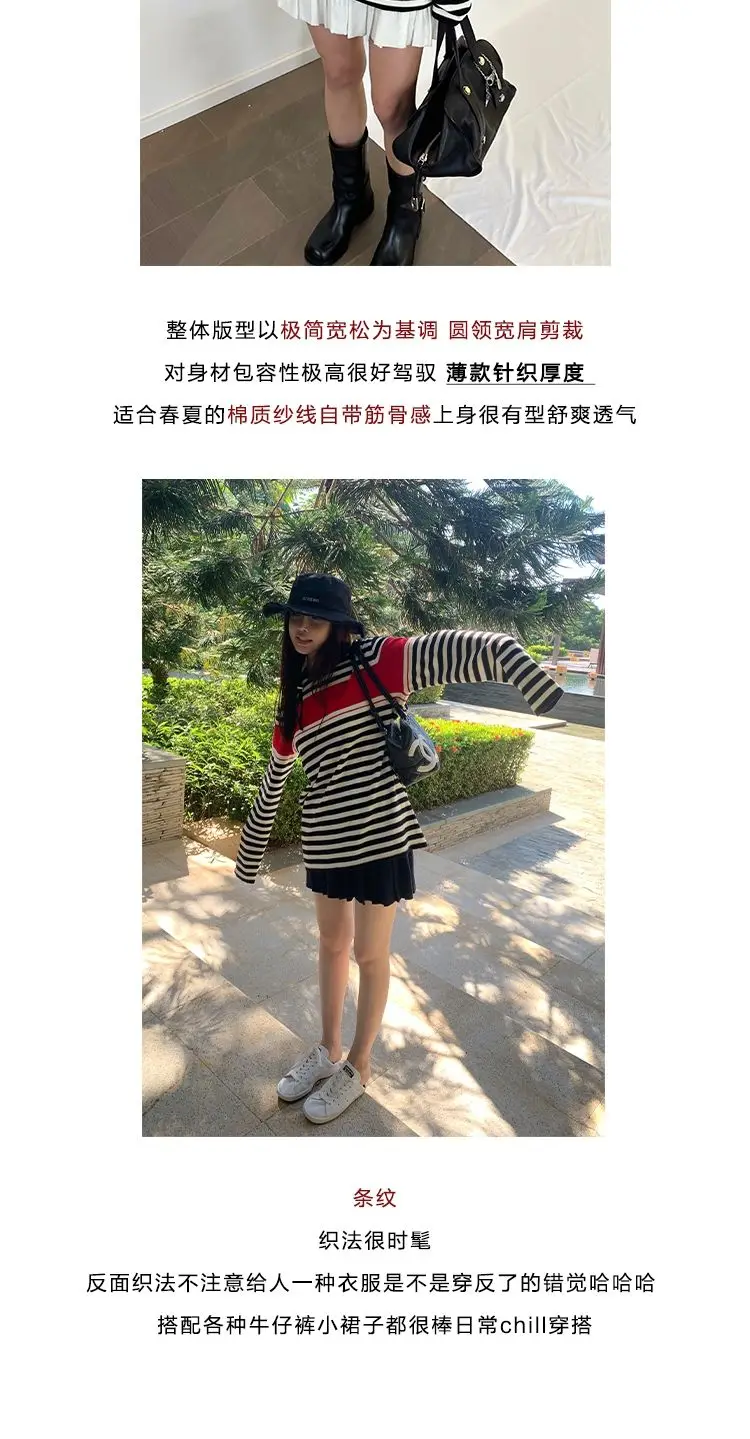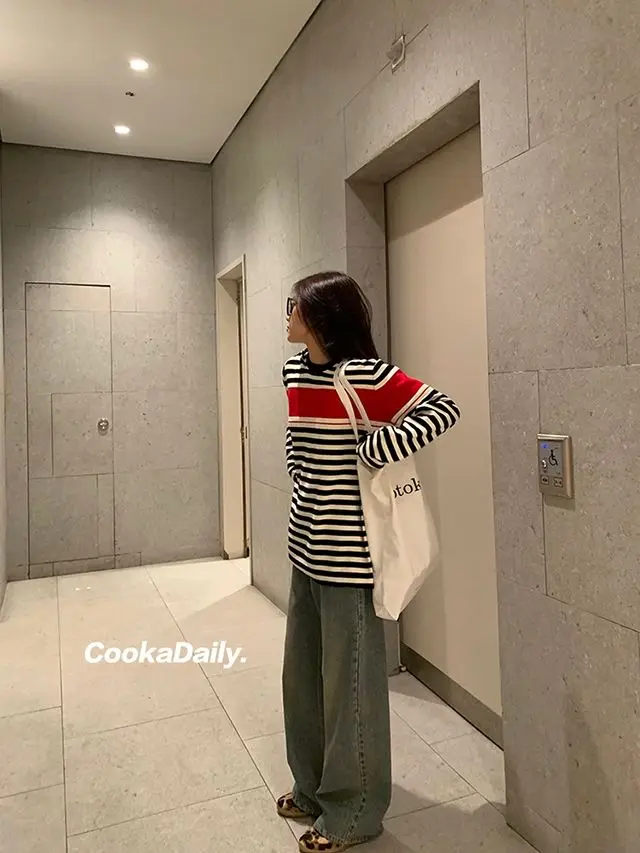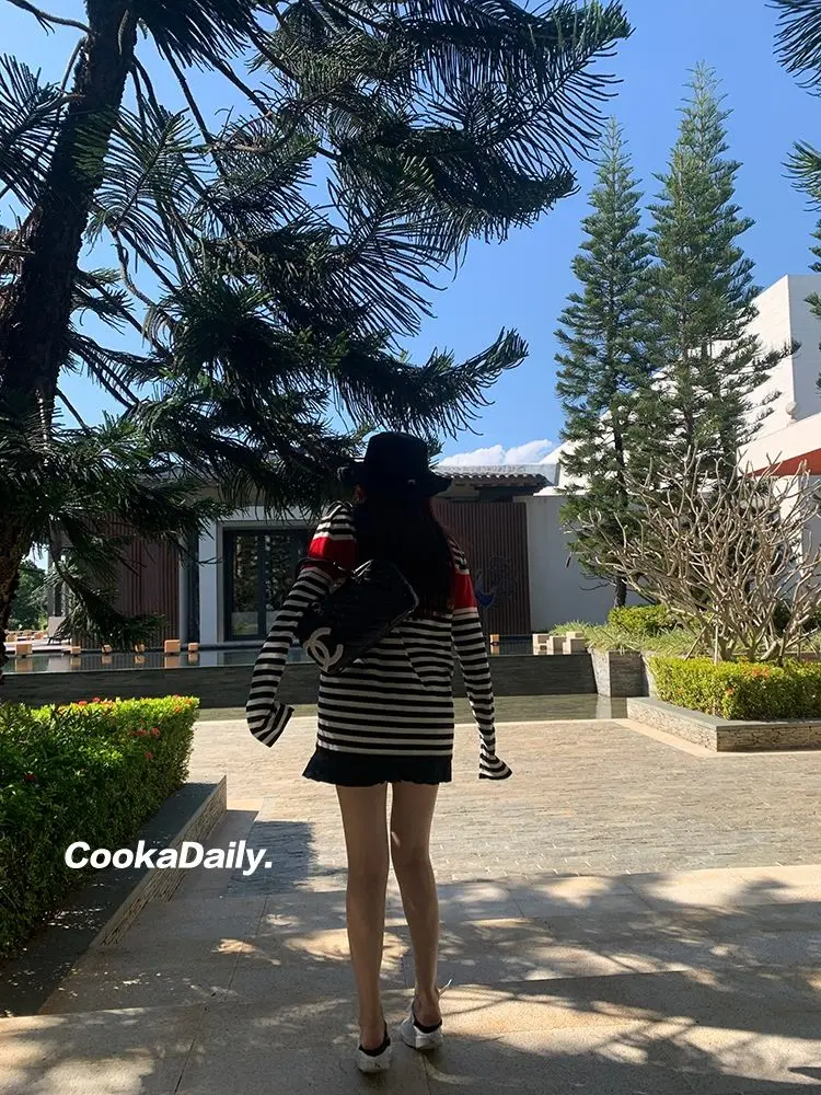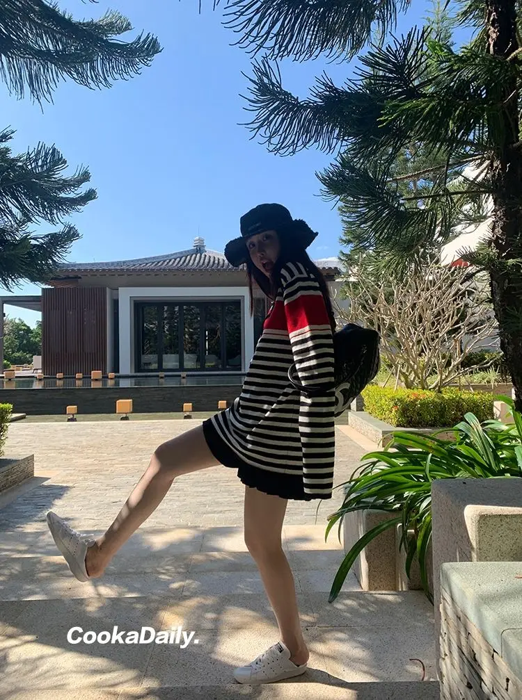 Advbridge Mermaid American wear Color clashing striped knit sweater for women Early fall Loose new top Lazy style Fashionable and unique.