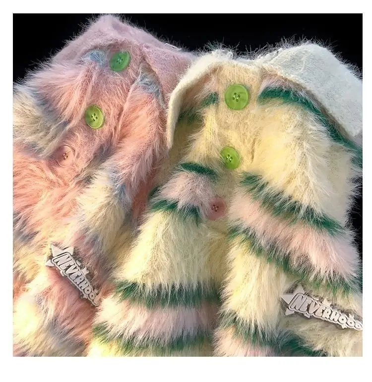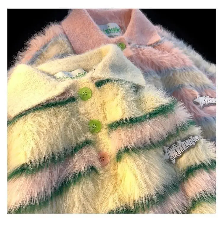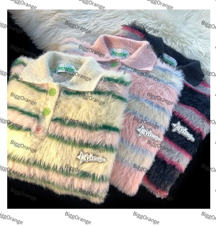 Advbridge New Autumn and Winter Mohair Loose Women Sweater Y2k Tops Gothic Pullover Retro Couple Sweater Striped Sweater Women Tops