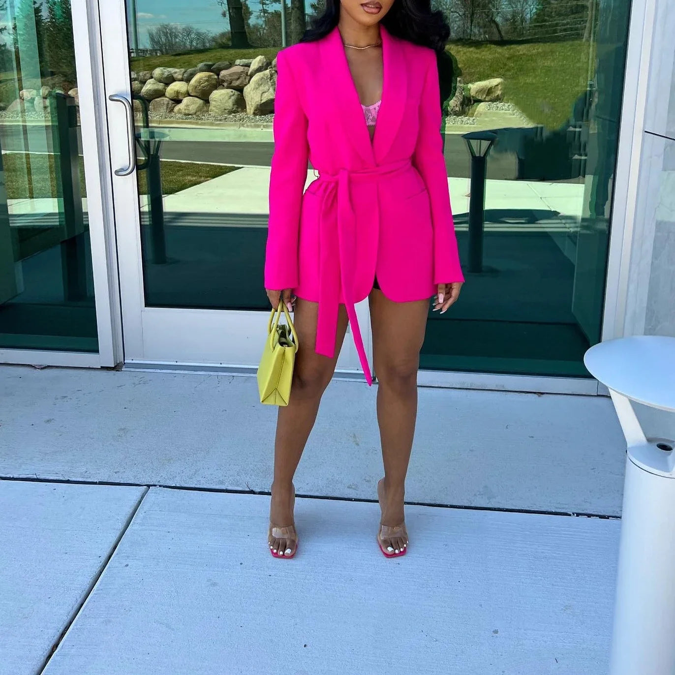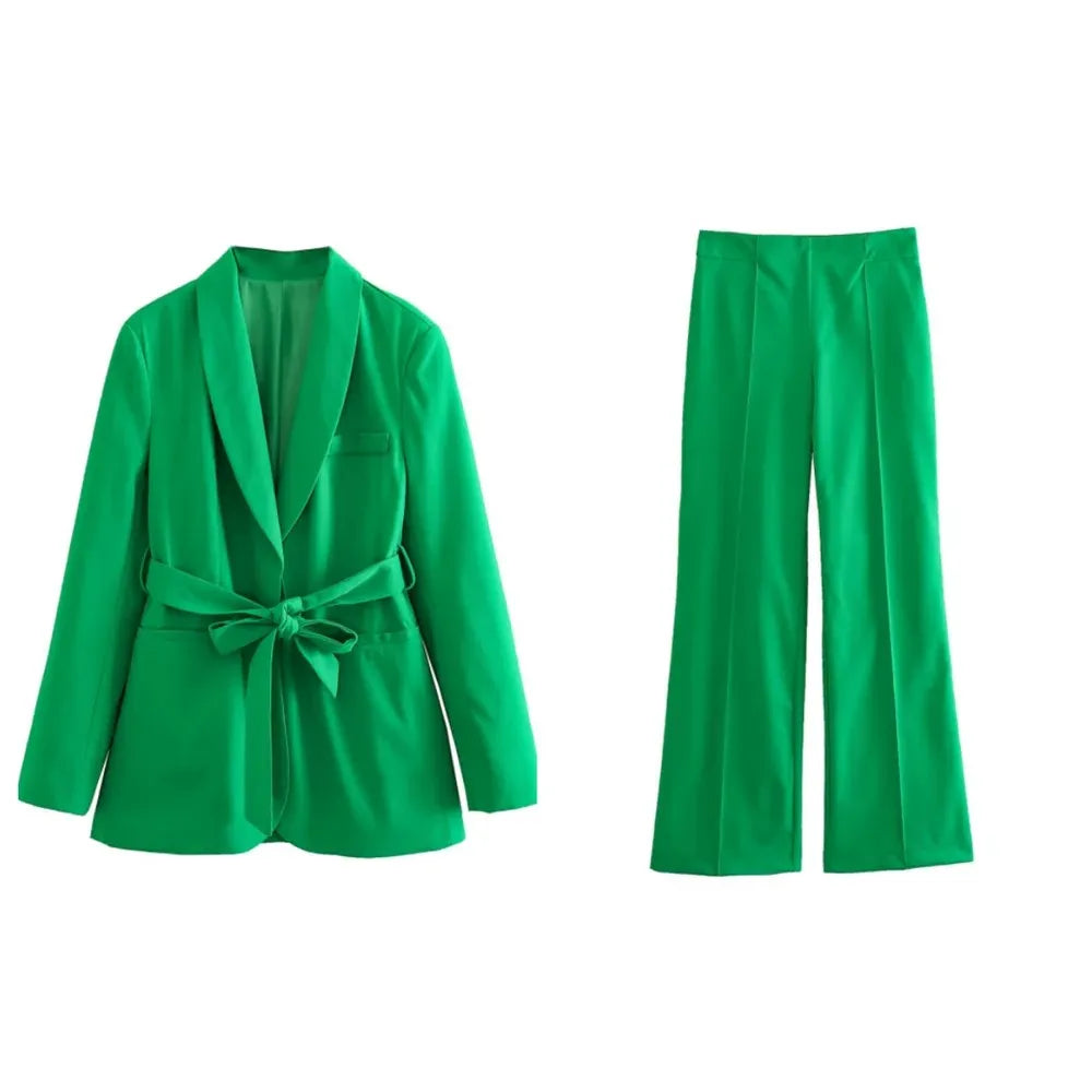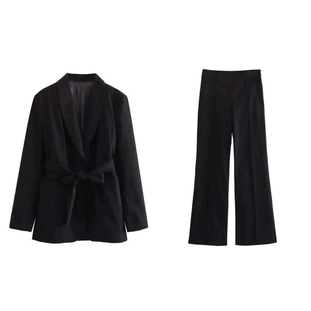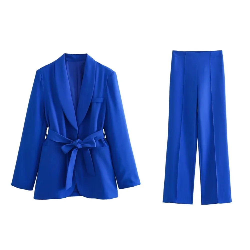 Advbridge New Fashion Blazer Loose Temperament Women's Sets High Waist Casual Solid Color Pants Set Lace Up Sets of Women 2 Pieces Elegant
