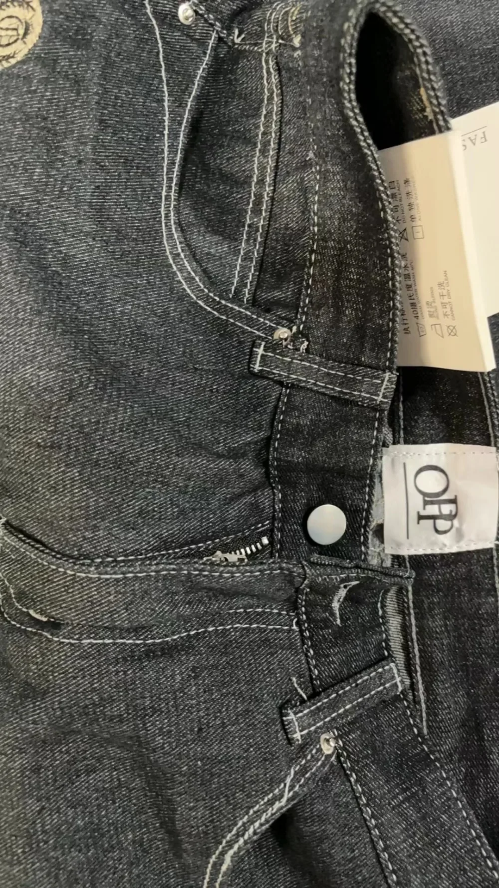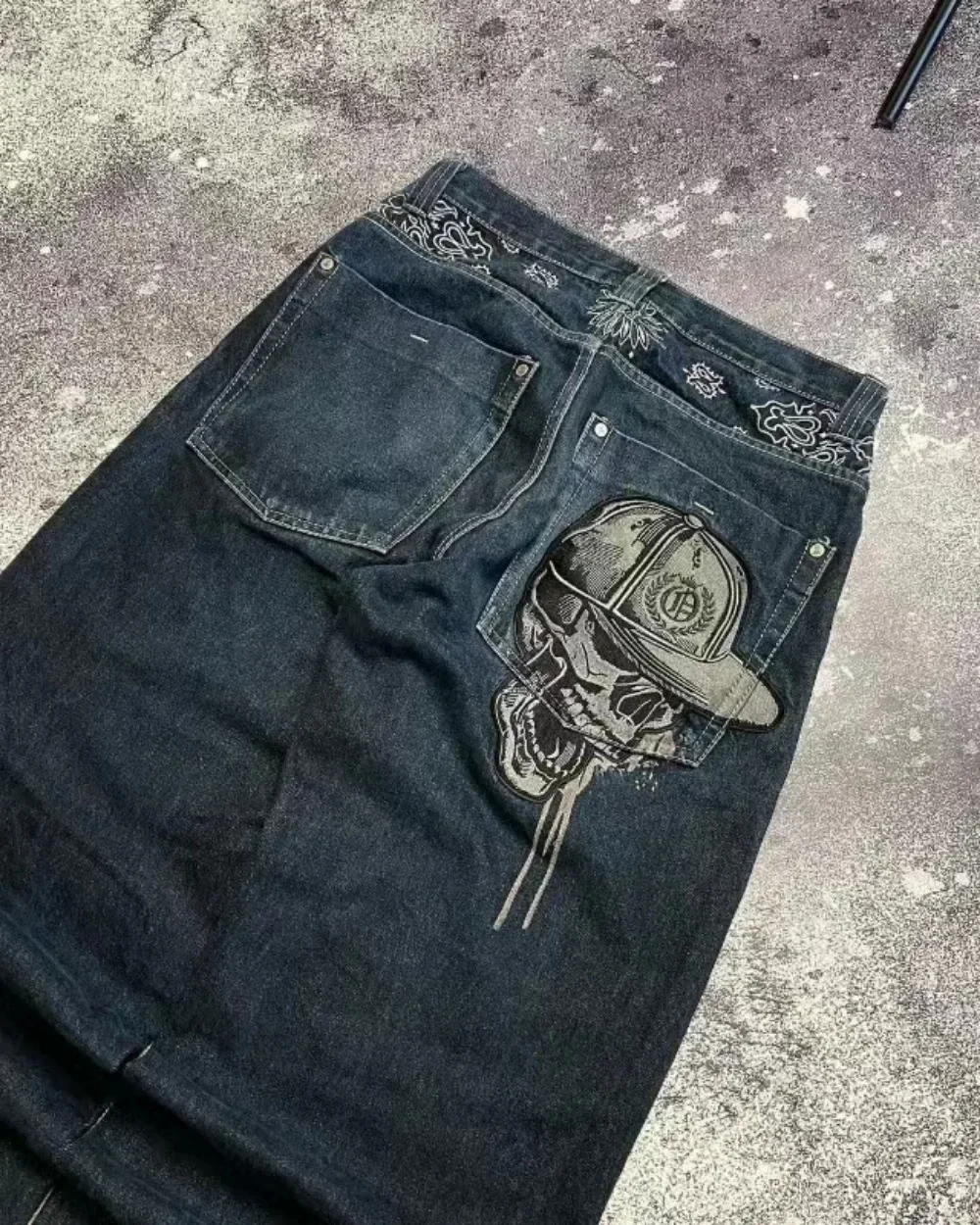 New Street Hip Hop Gothic Baseball Cap Jeans Harajuku Loose Straight Wide-Leg Pants Punk Rock Cowboy Pants For Men And Women