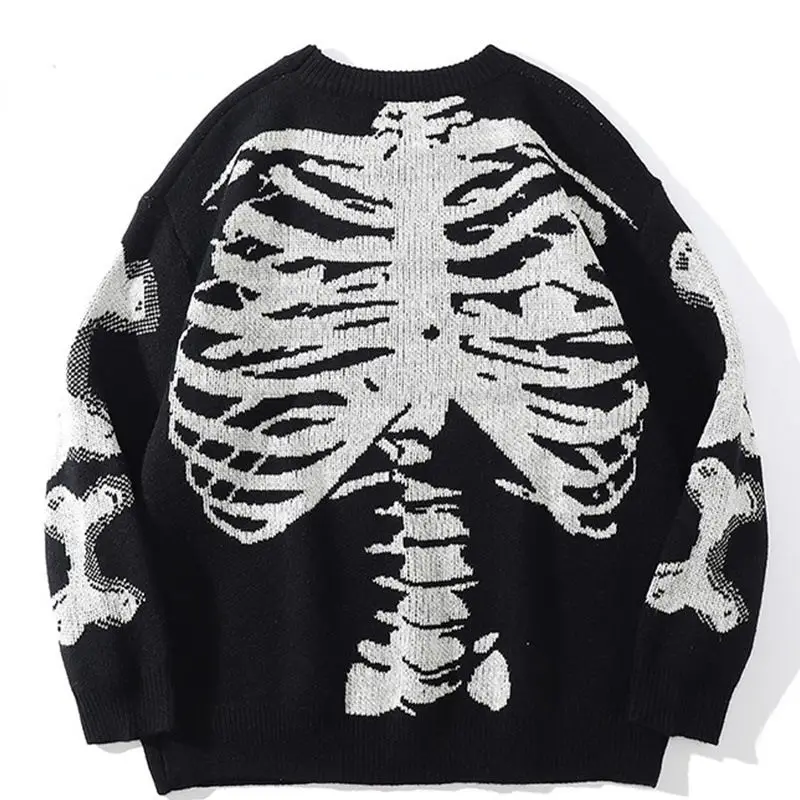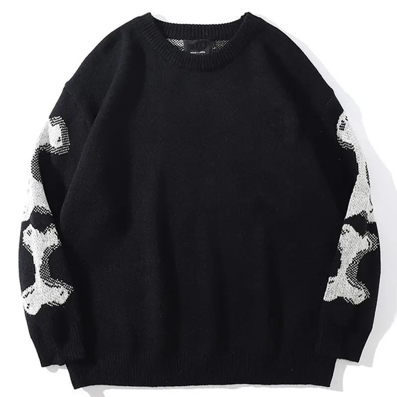 Advbridge New women autumn and winter sweater Harajuku skull round neck long-sleeved sweater couple loose pullover retro Y2K sweater