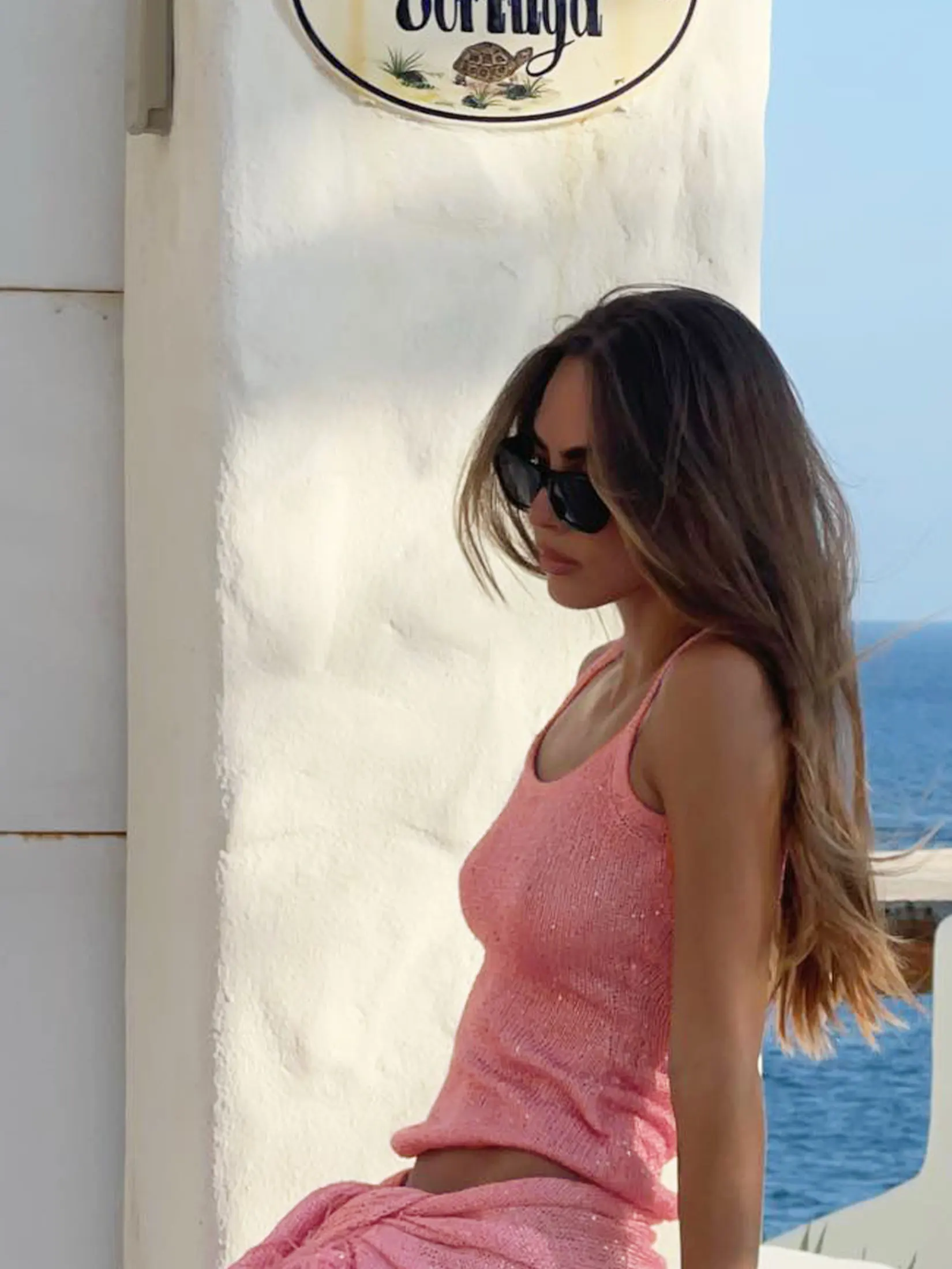 Advbridge Pink Sparkly Spaghetti Strap Camisole Top 2025 Summer Beachwear Sexy Women's Knit Casual Vacation Lady Tank Tops Clothing K31