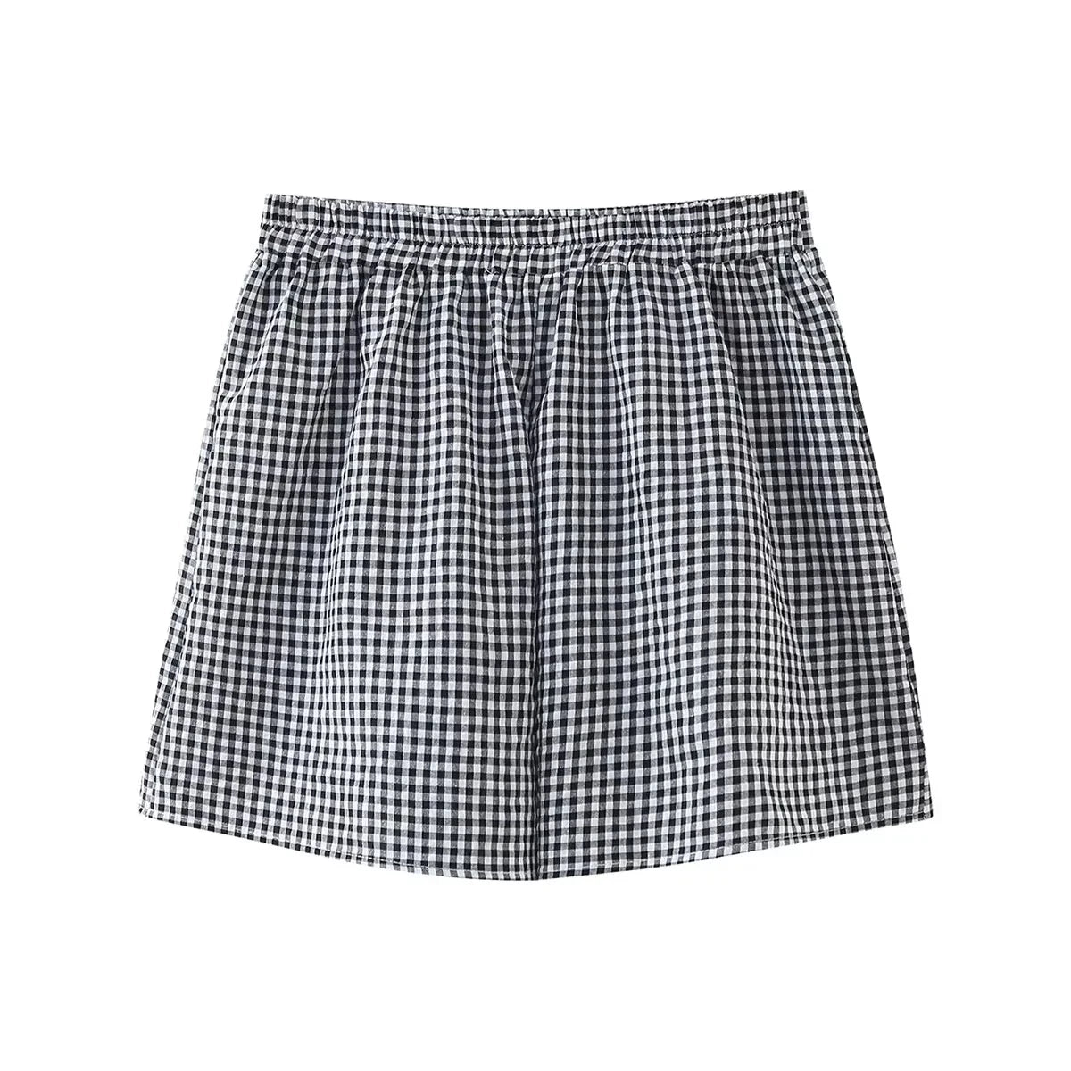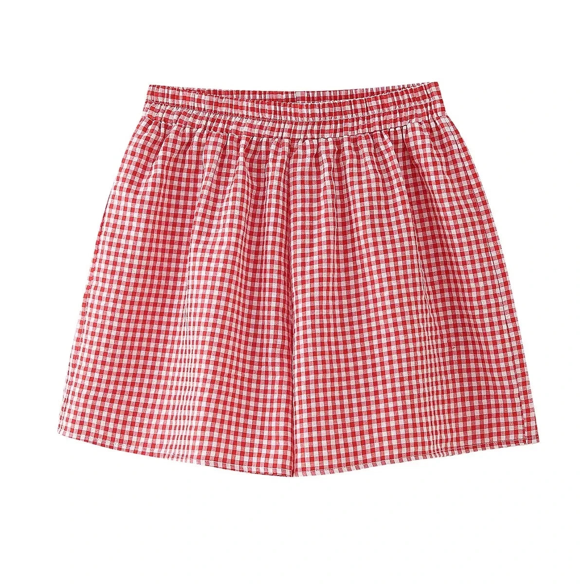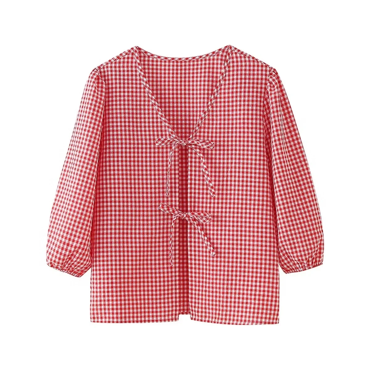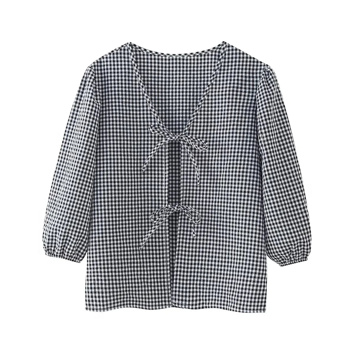 Advbridge Plaid Print Women Matching Set Summer Casual V Neck Bowknot Shorts Set 2 Pcs Outfits Blue Chic Spring Blouse+shorts Set