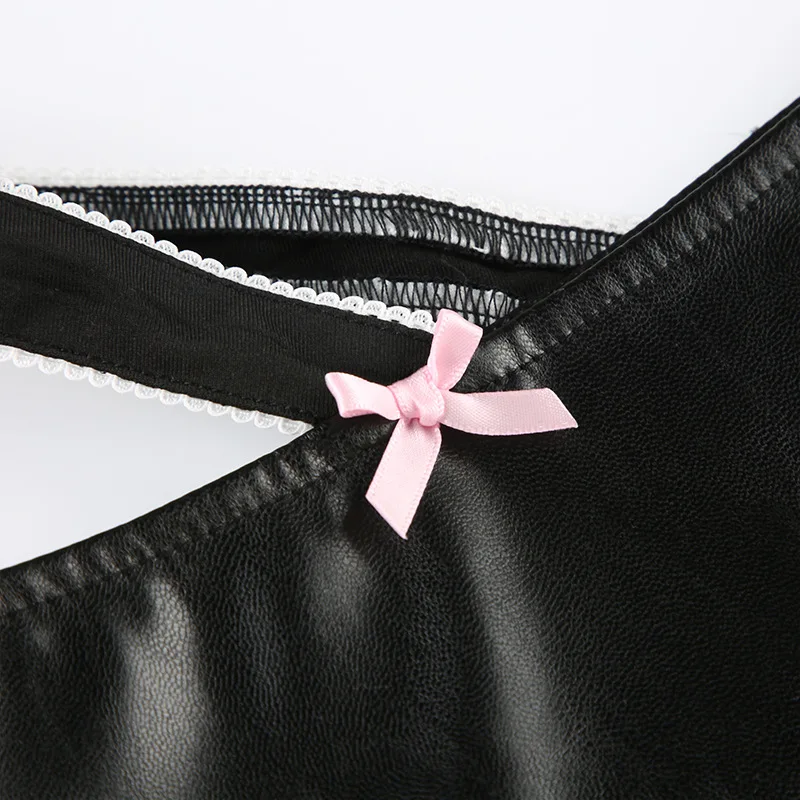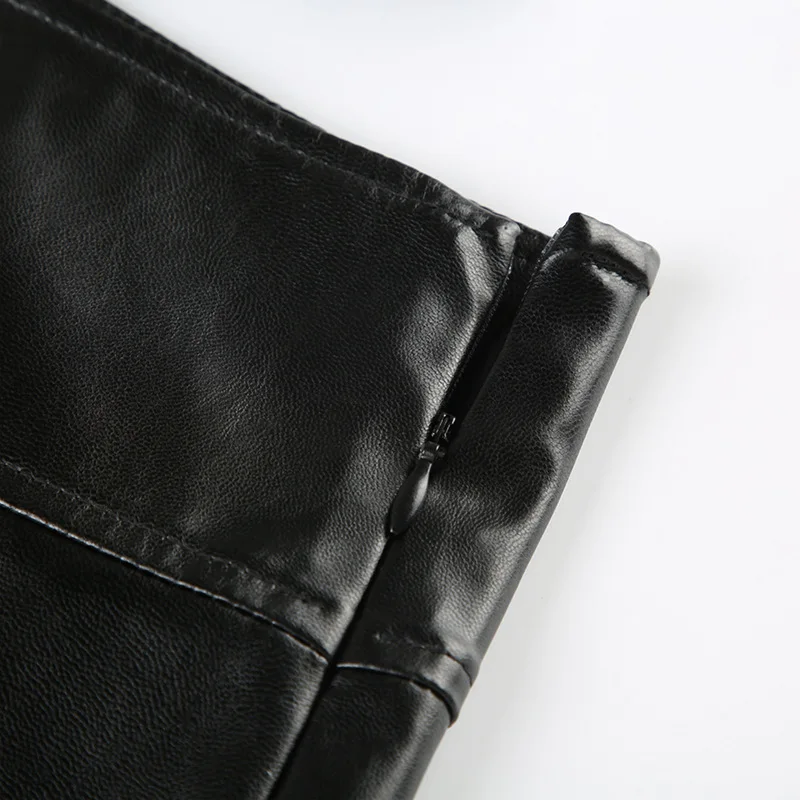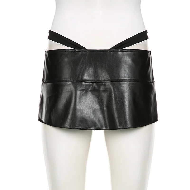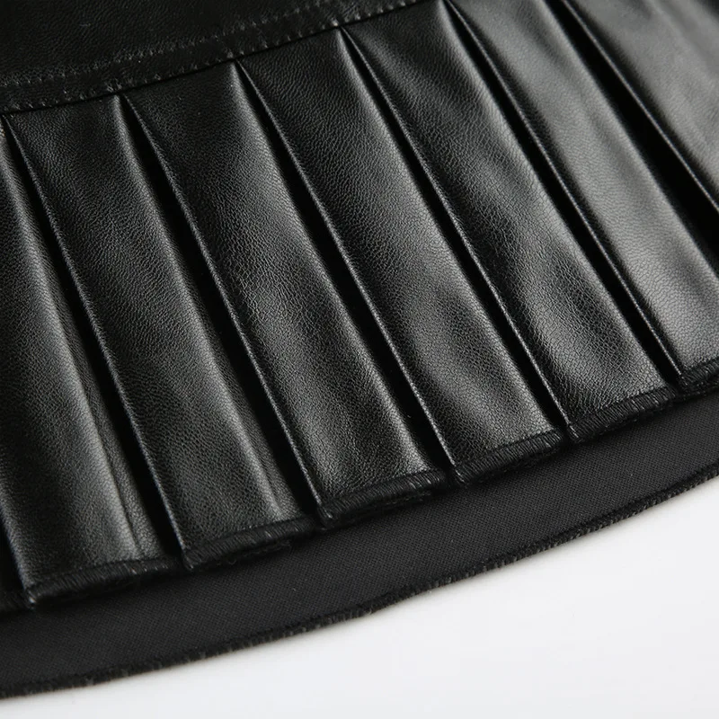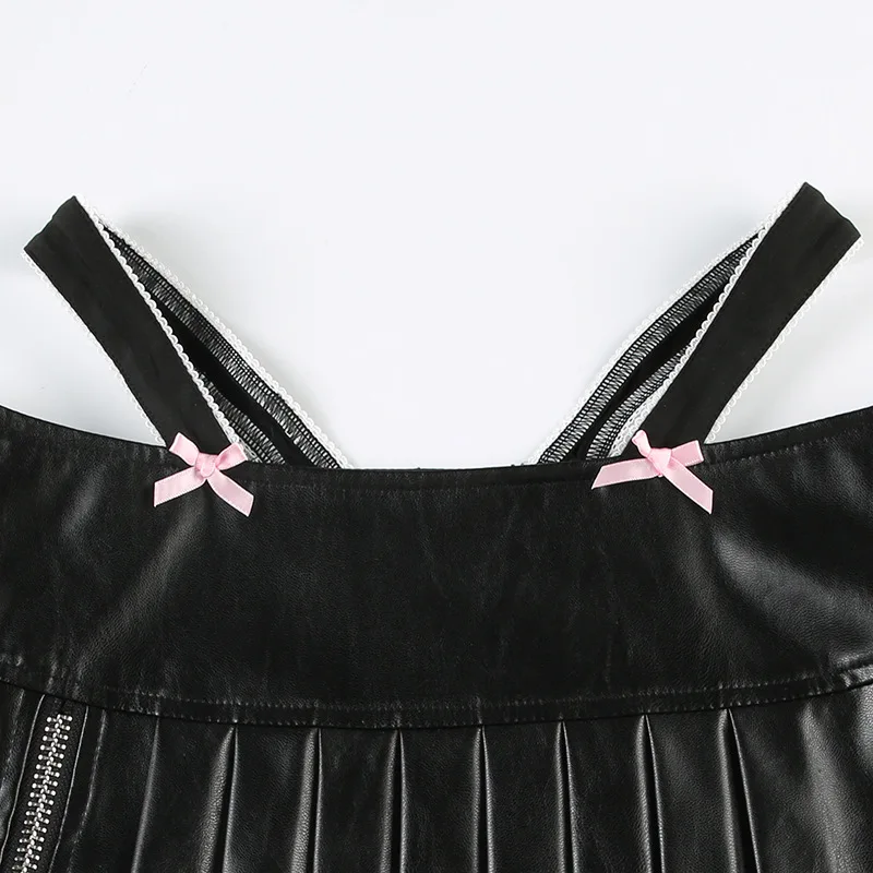Advbridge PU Leather Sexy Slim Bow Zipper Pleated A-Line Skirt Casual Low-Waisted Super Mini Slirts Women Summer Fashion Streetwear Lady