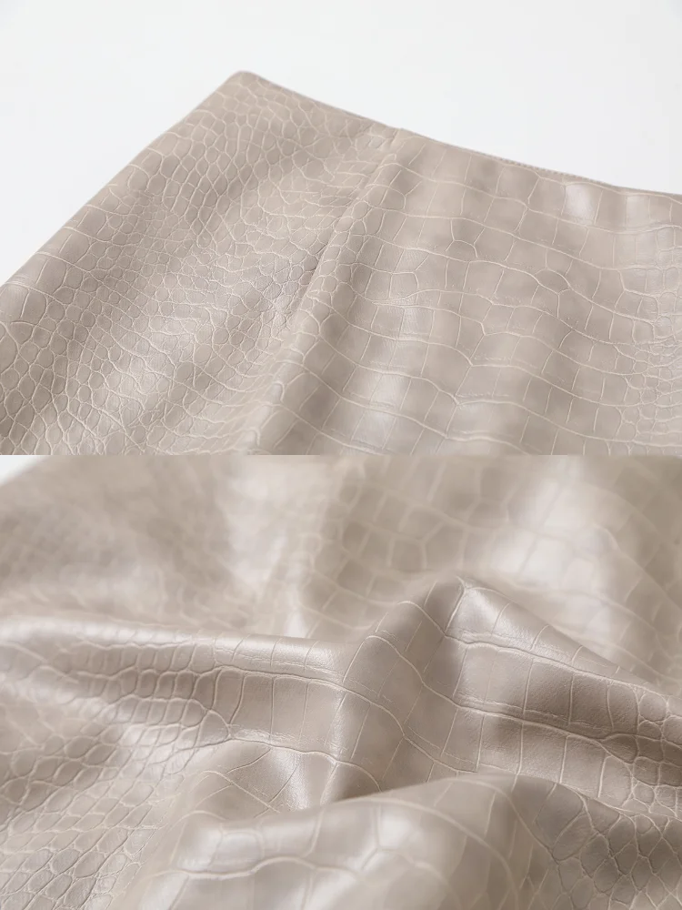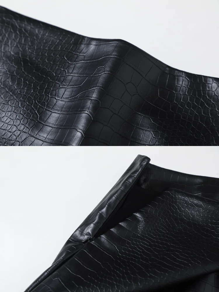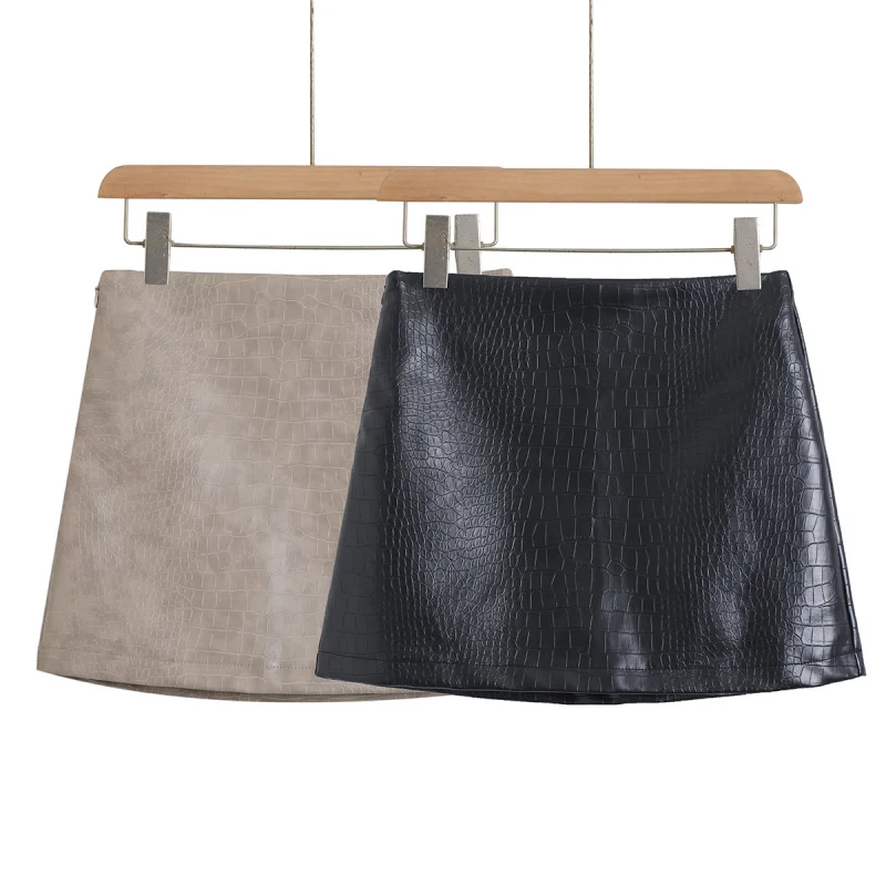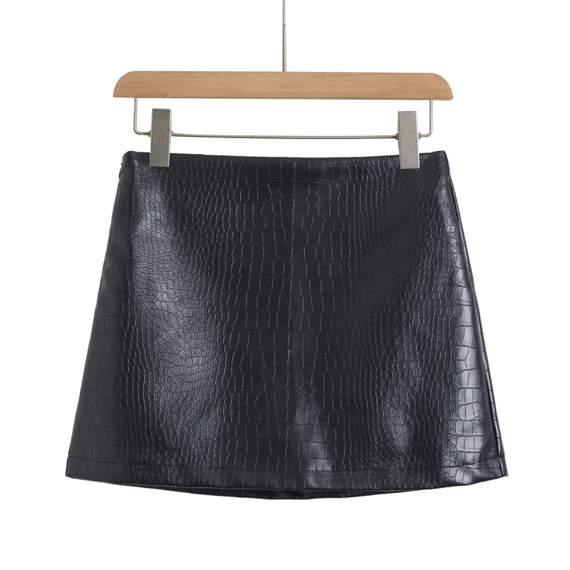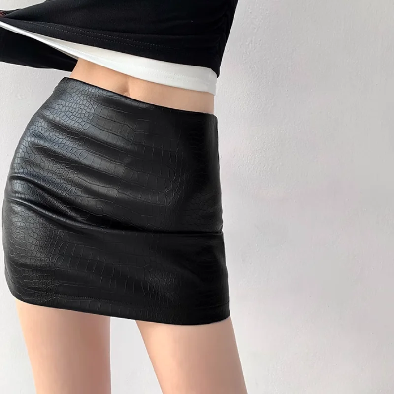 Advbridge PU Leather Skirt For Women High Waist Crocodile Pattern Black Office Lady Club Sexy Bodycon Mini A-line Skirts