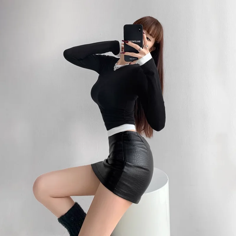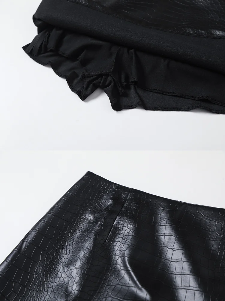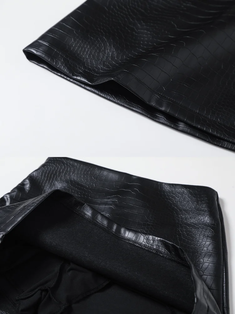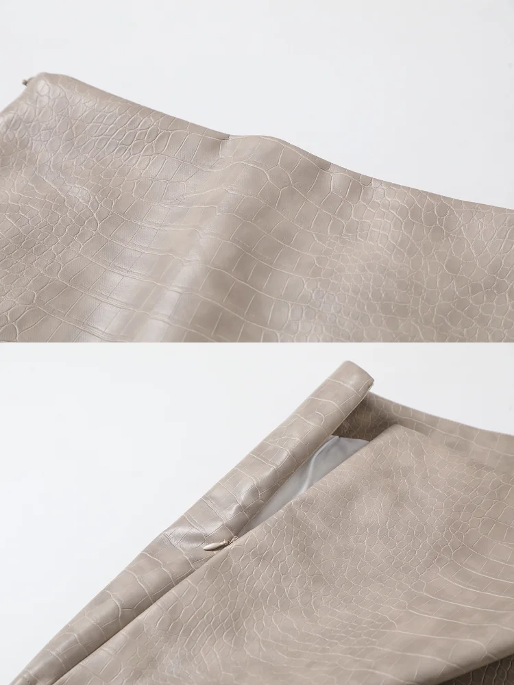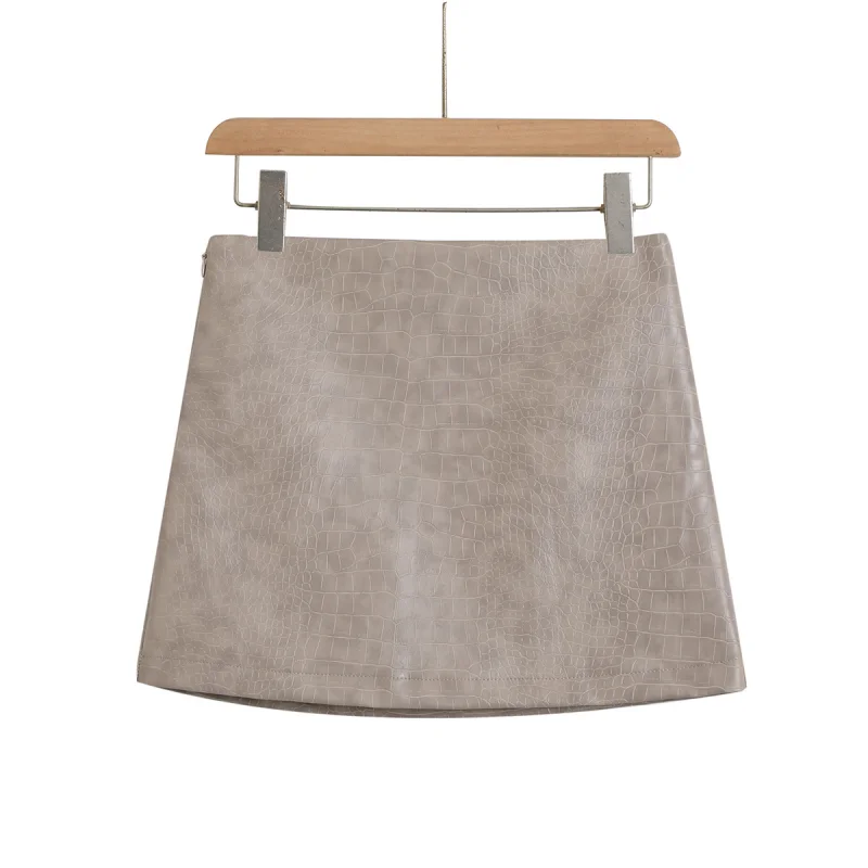 Advbridge PU Leather Skirt For Women High Waist Crocodile Pattern Black Office Lady Club Sexy Bodycon Mini A-line Skirts