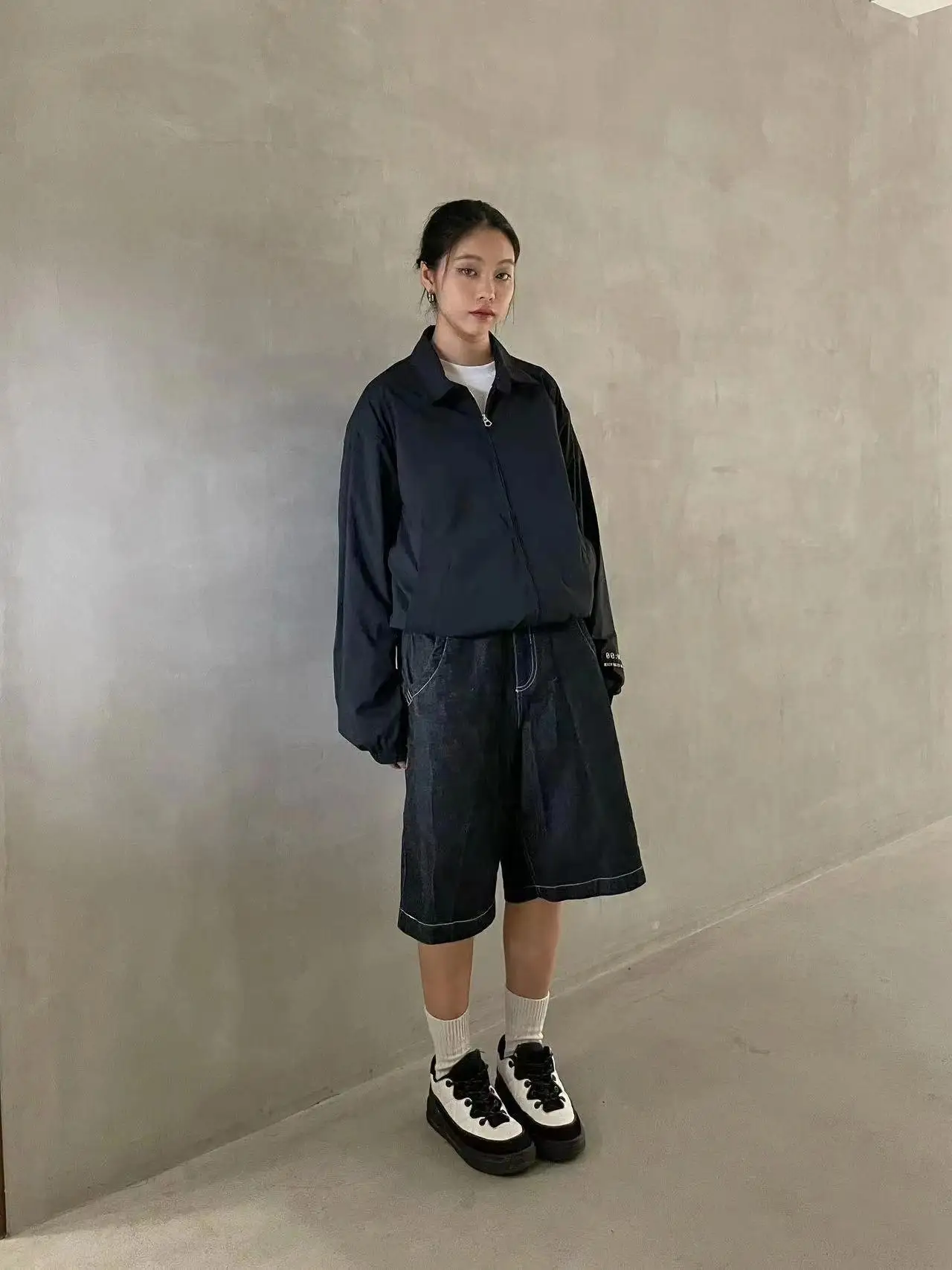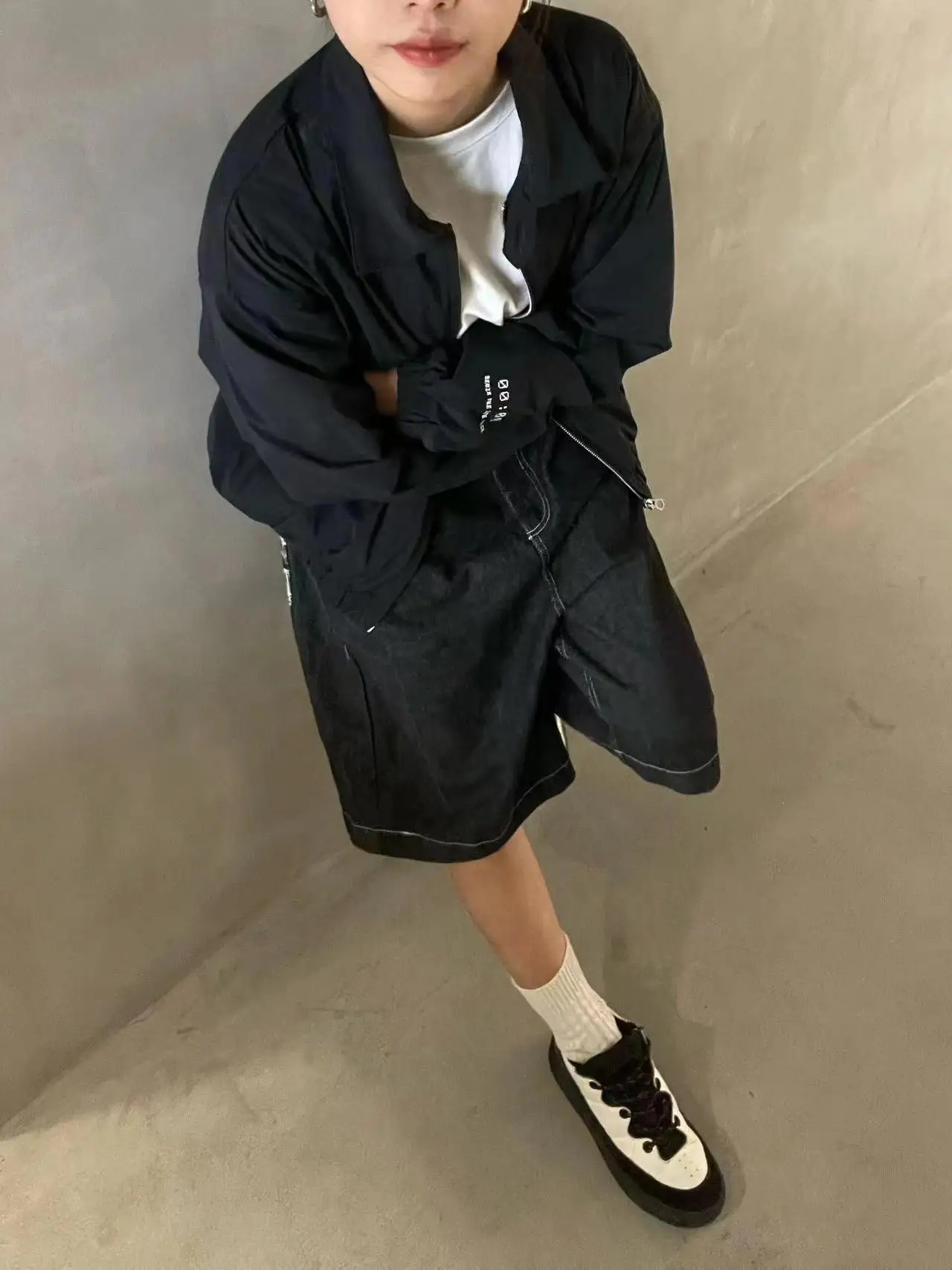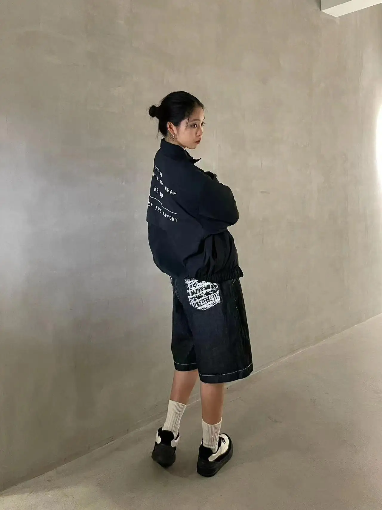 Advbridge Retro Harajuku embroidered denim shorts for women summer new American loose wide-leg hiphop hip-hop five-point pants y2k jeans