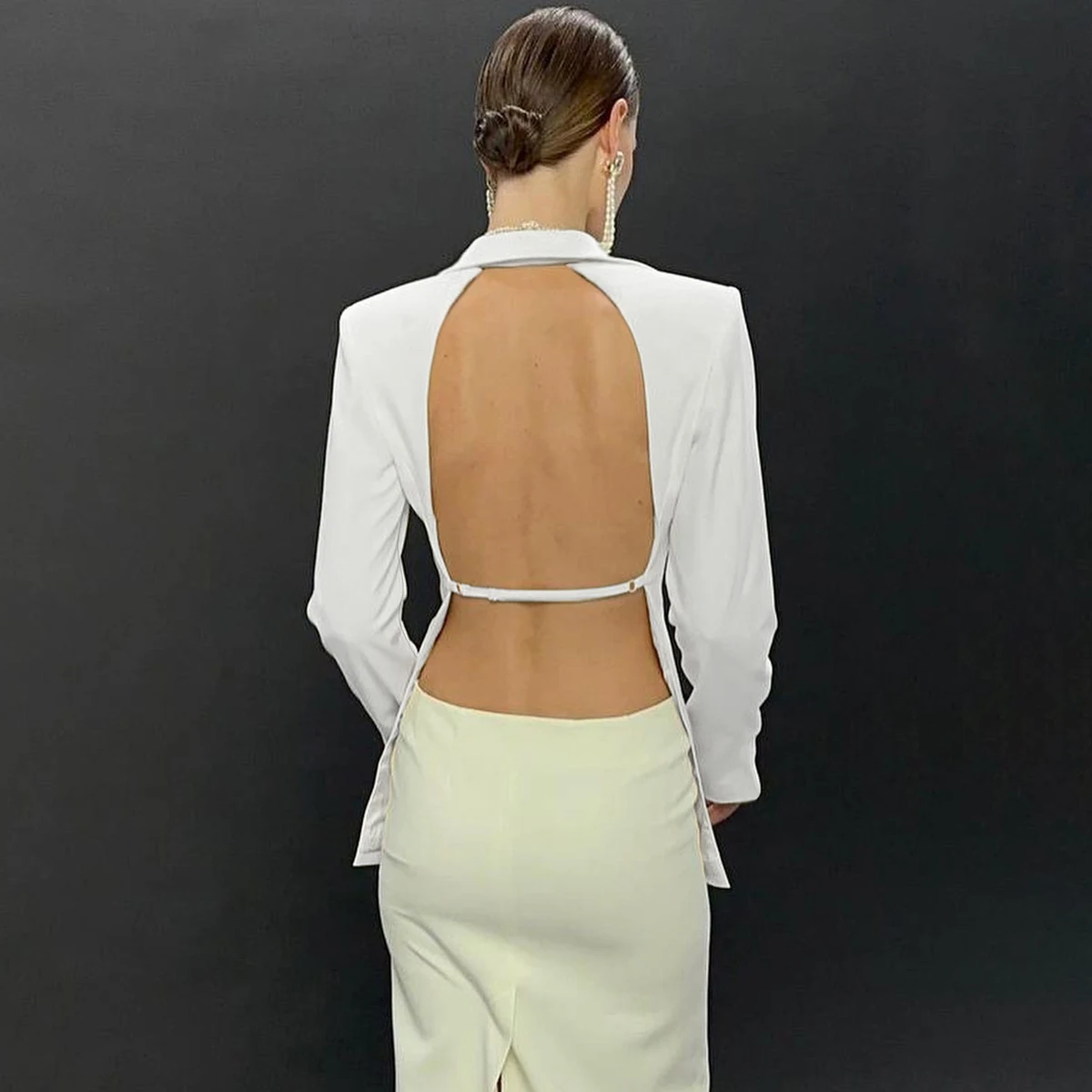 Advbridge Sexy Backless Strap Solid Blazer Coat Elegant Women Lapel Long Sleeves Slim Suit Jacket Fashion Lady Party High Street Outwears