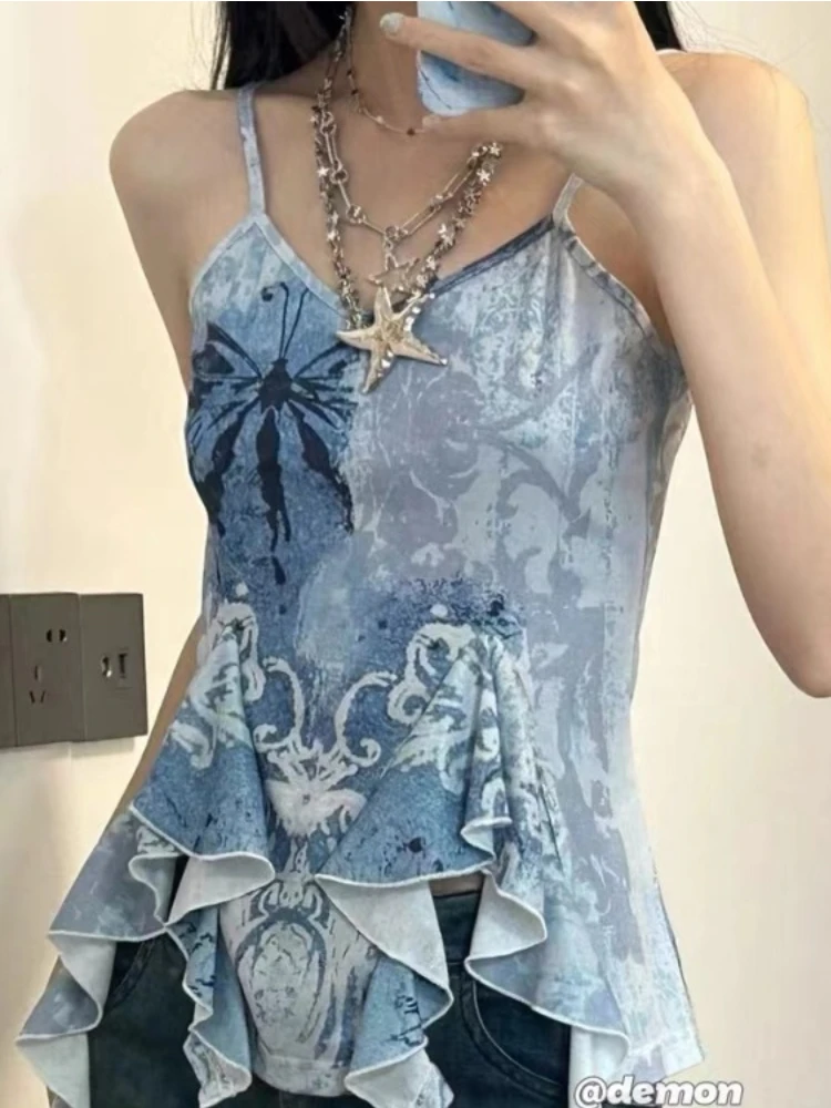 Advbridge Sexy Crop Tops Women's Clothing Fashion Summer Vest Floral Ruffles Tunic Backless Camis Korean Irregular Y2k Tanks Ropa Mujer