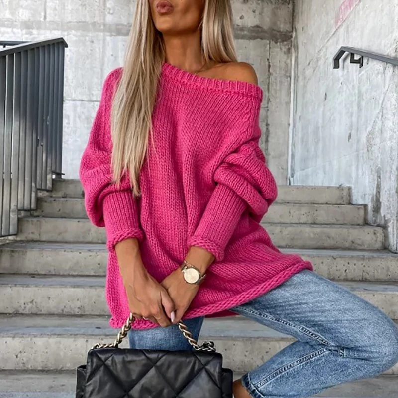 Advbridge Sexy Lady Off Shoulder Sweater Tops Winter Solid Office Knit Pullovers Harajuku Women Autumn Long Sleeve Slash Neck Jumper