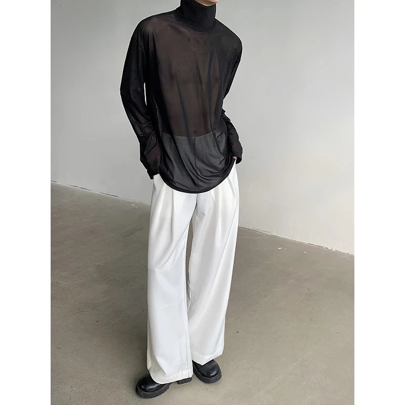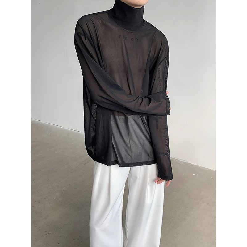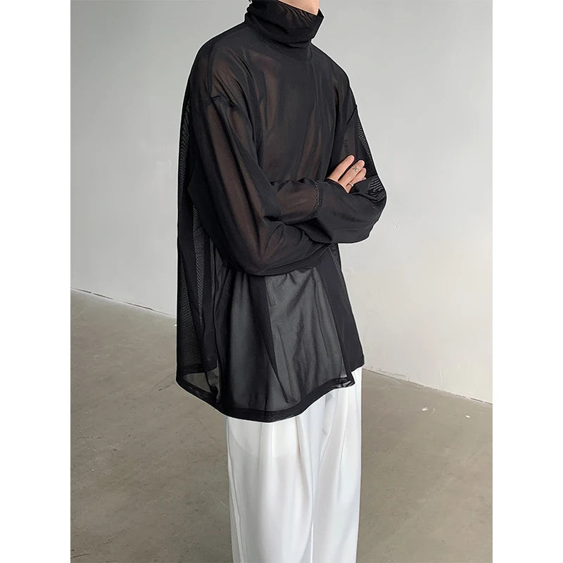 Advbridge Sexy Perspective High-neck Long Sleeve T Shirt Men Women Net Yarn Bottoming Shirt Spring Summer Transparent Black Tee Shirts