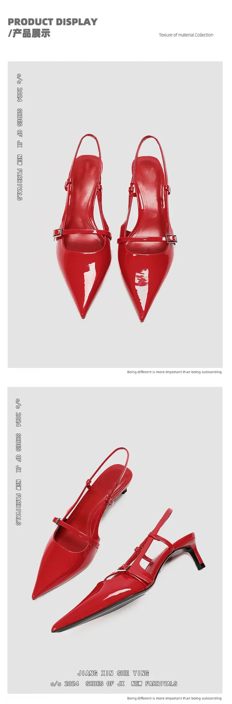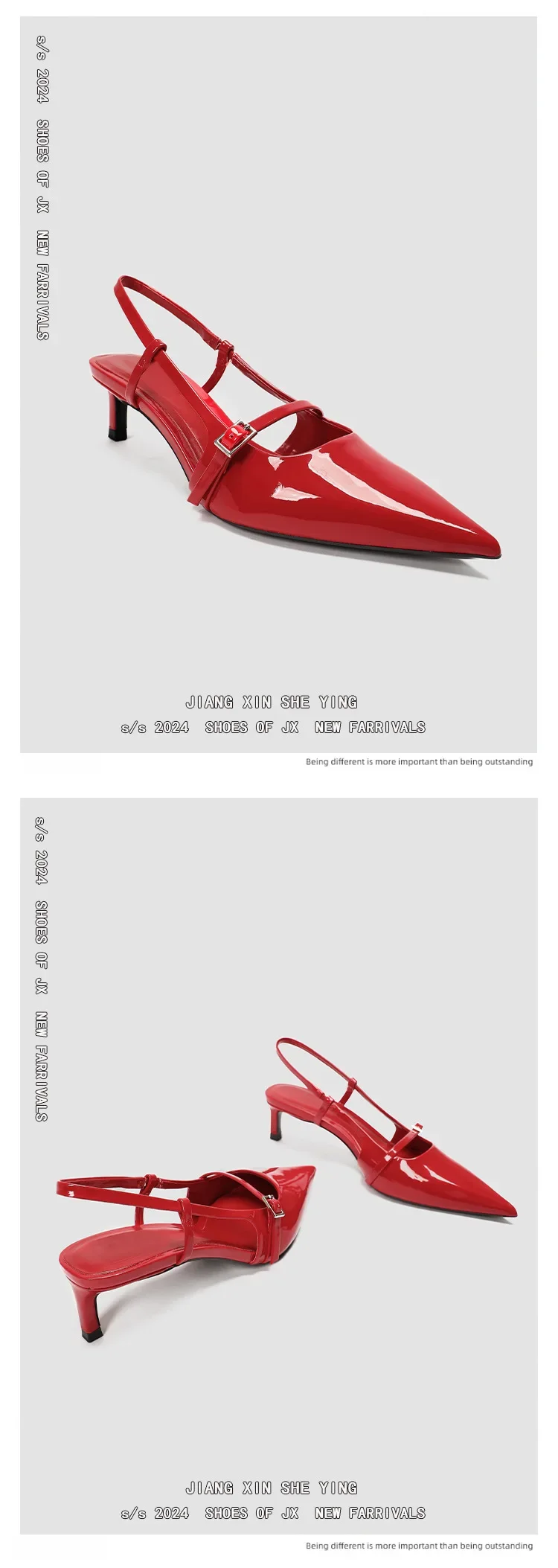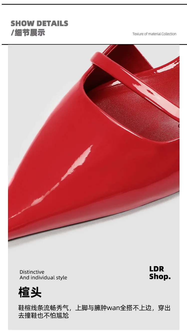 Advbridge Sexy Pointed Toe Sandals Women Summer Red Thin High Heels for Women Patent Leather Back Trip Strap Mules Wedding Women Pumps