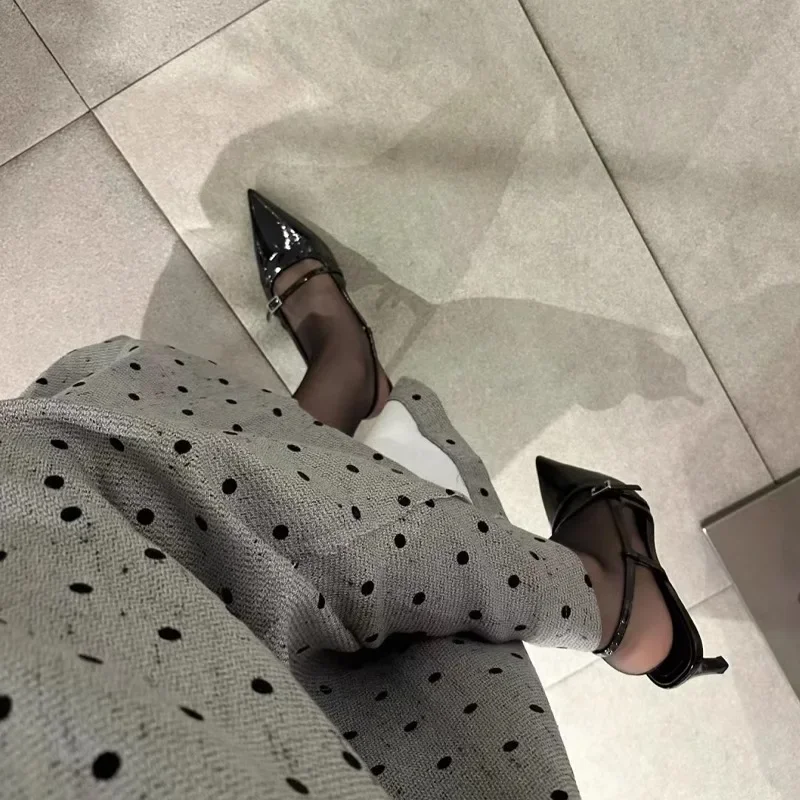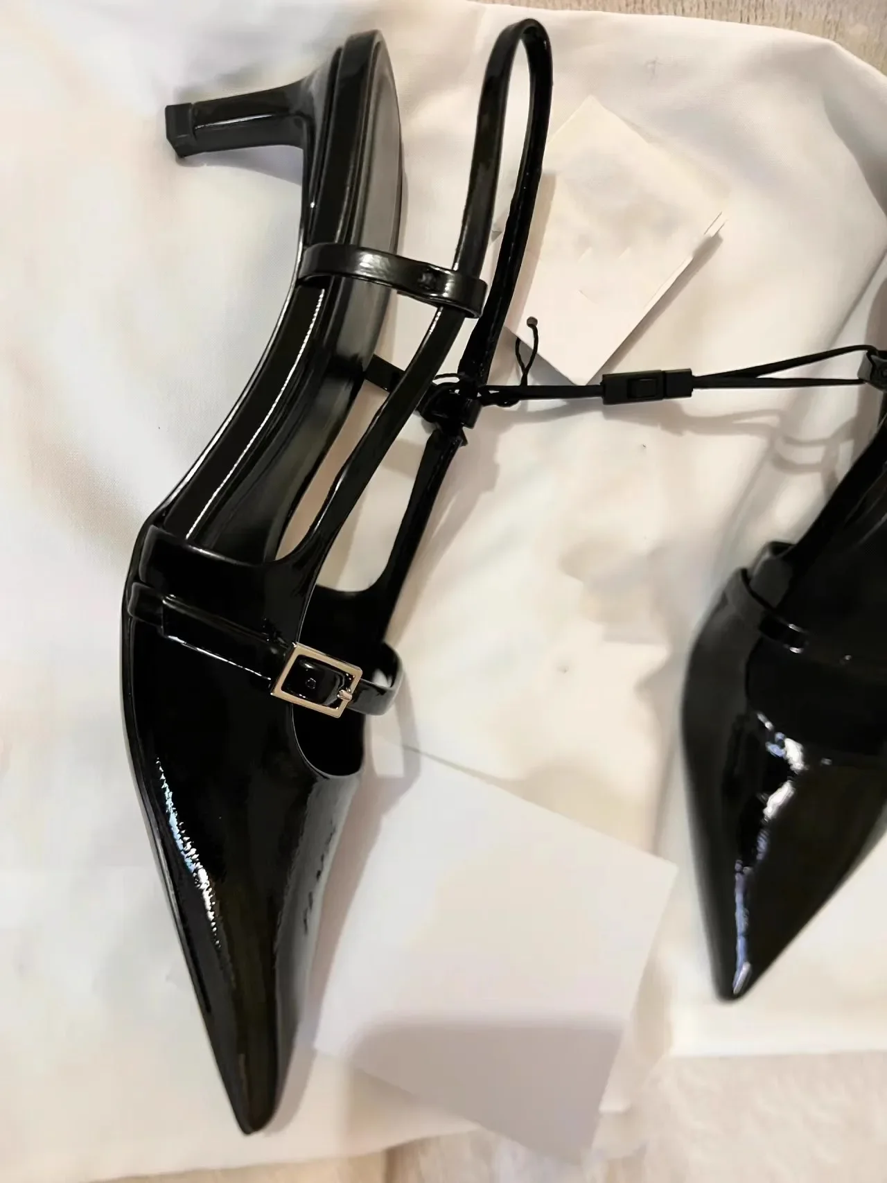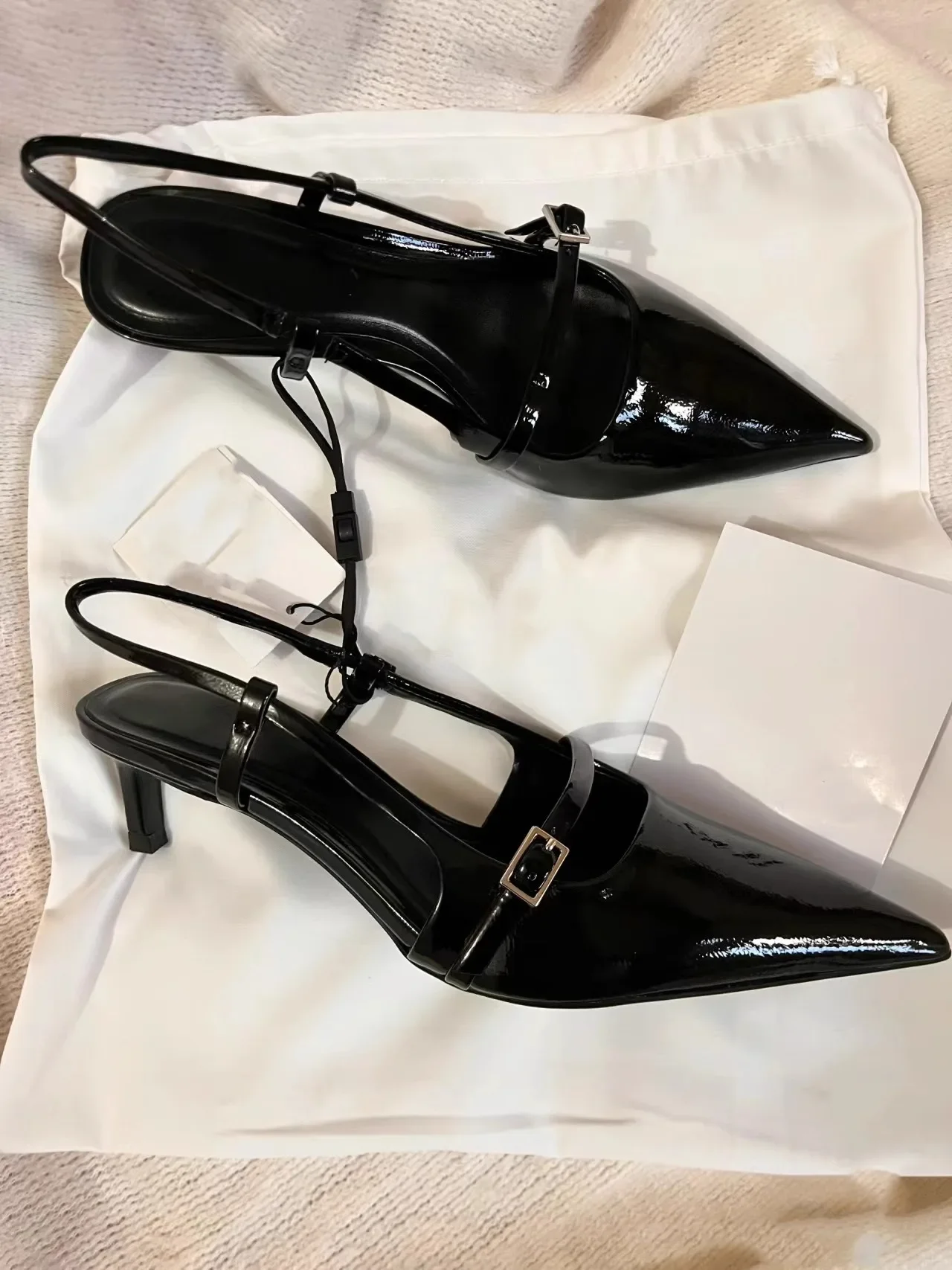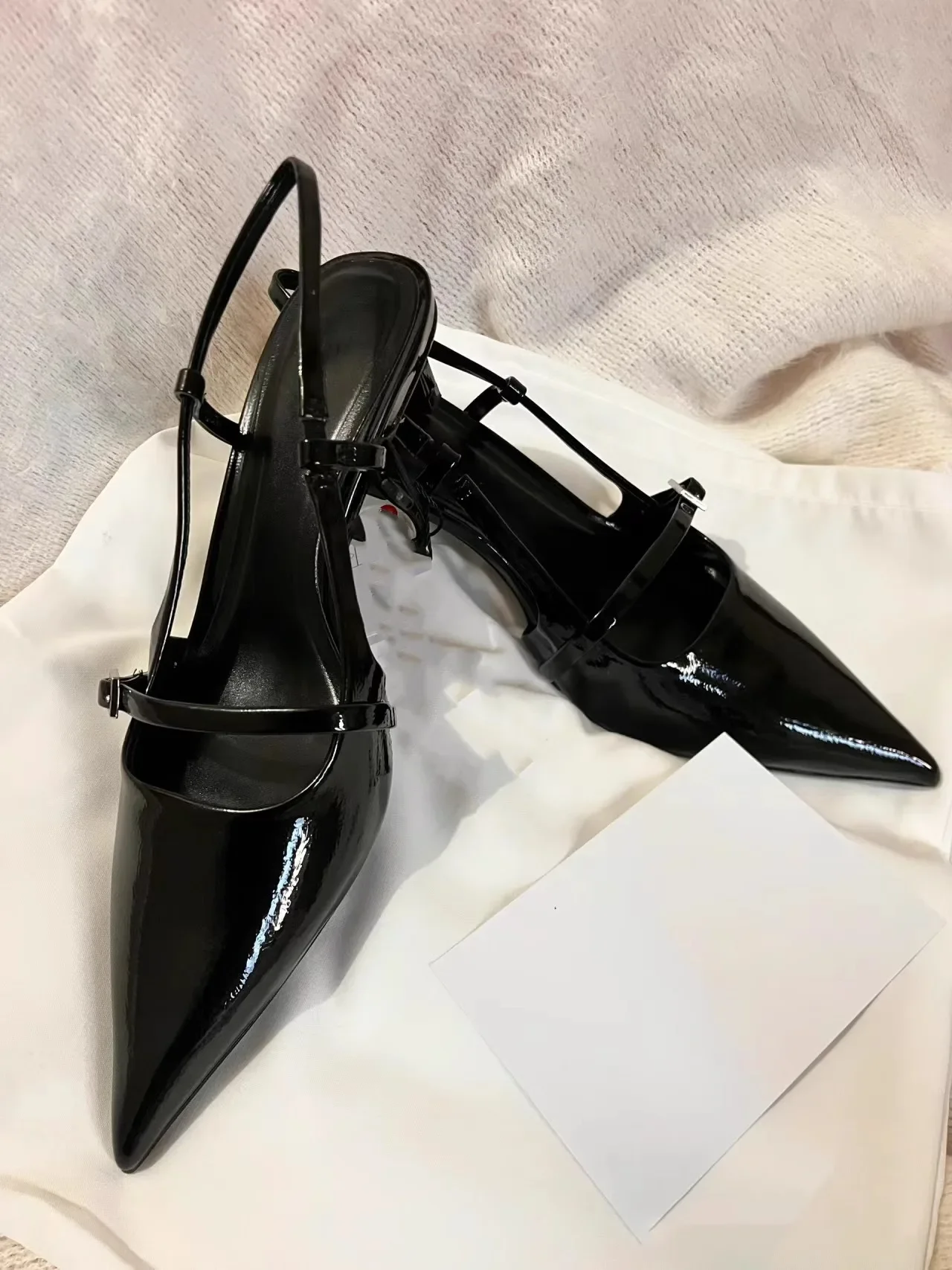Advbridge Sexy Pointed Toe Sandals Women Summer Red Thin High Heels for Women Patent Leather Back Trip Strap Mules Wedding Women Pumps